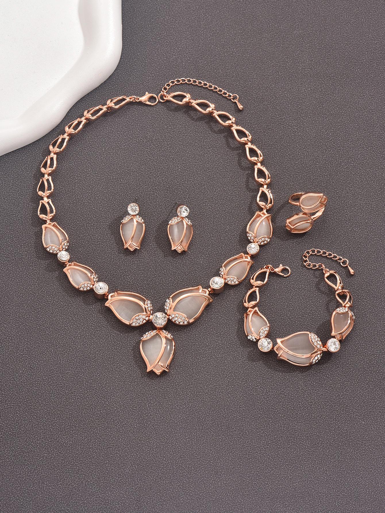 Rose gold necklace, Rose gold earrings, Rose Gold Bracelet, Rose Gold suit