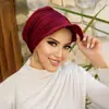 Amazon Transfronterizo Nuevo de Venta Caliente Color Sólido Gorra de Cáñamo de Cristal para Mujer Moda Diaria Gorro Pulóver Sombrero Musulmán