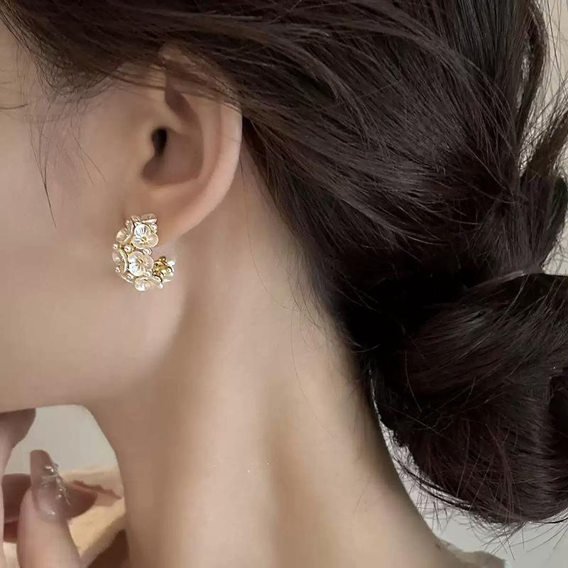 C-ring flower ear clip (comes with silicone pad), C circle flower earrings