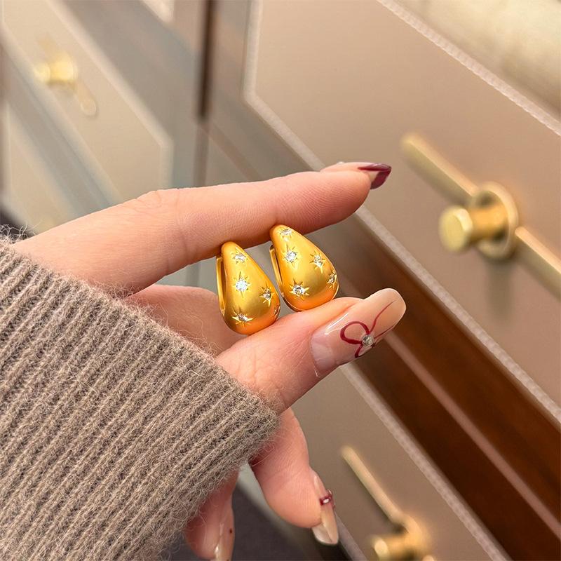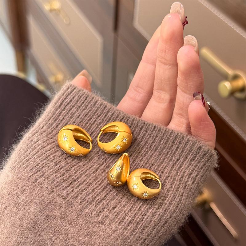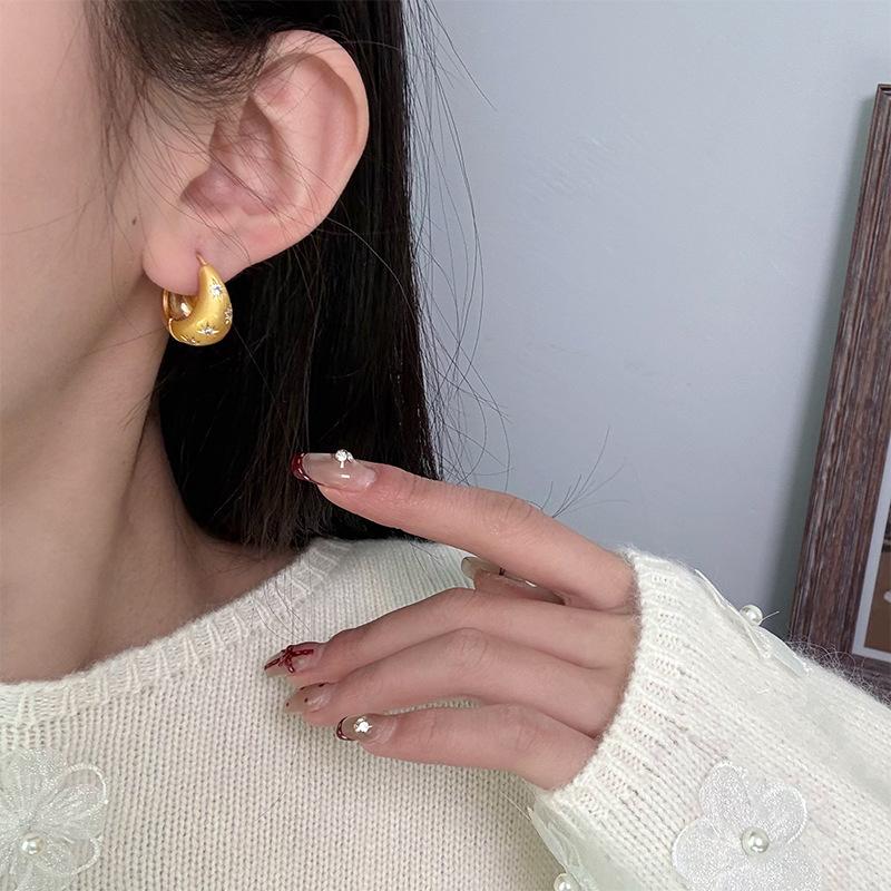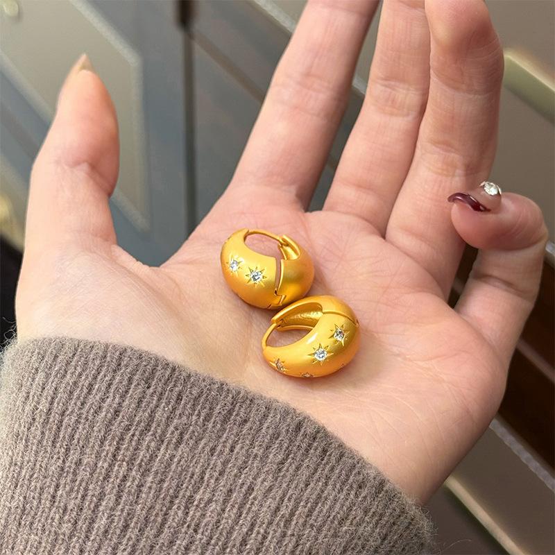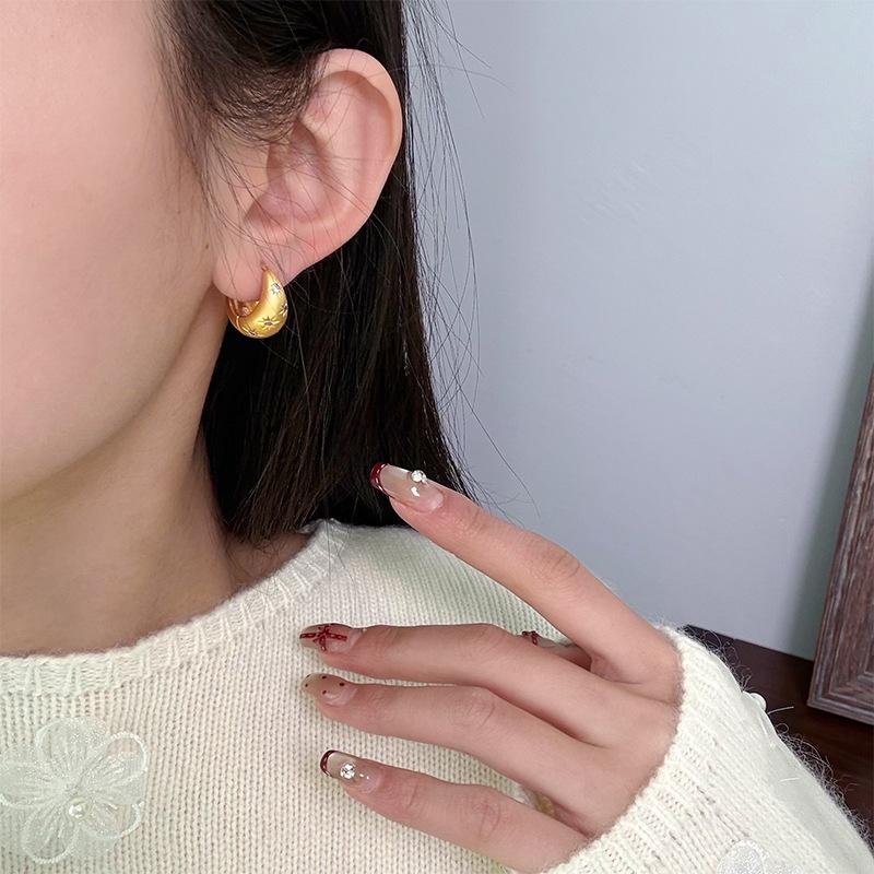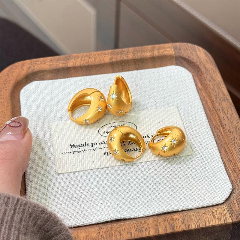Aretes Europeos y Americanos de Moda Simple Circonita Mang Estrella Hebilla de Oreja para Mujer Retro Lujo Ligero Combinable Elegantes Aretes Nicho Sentido de Alta Gama