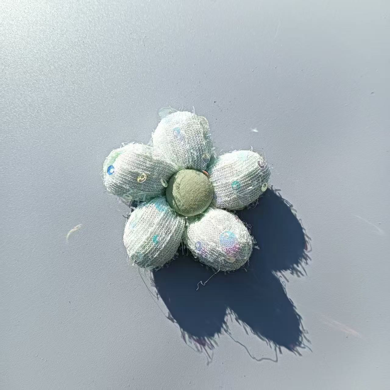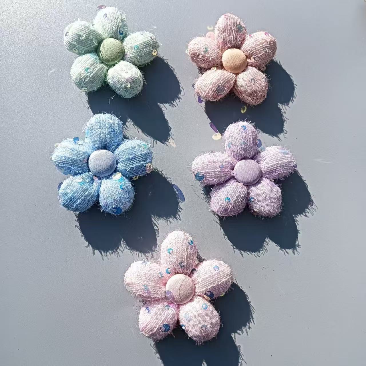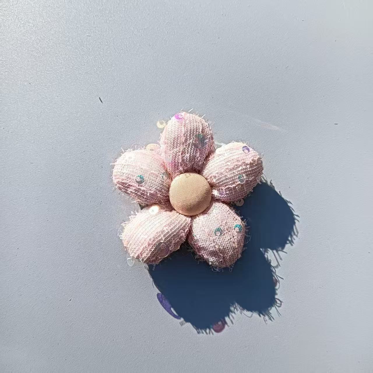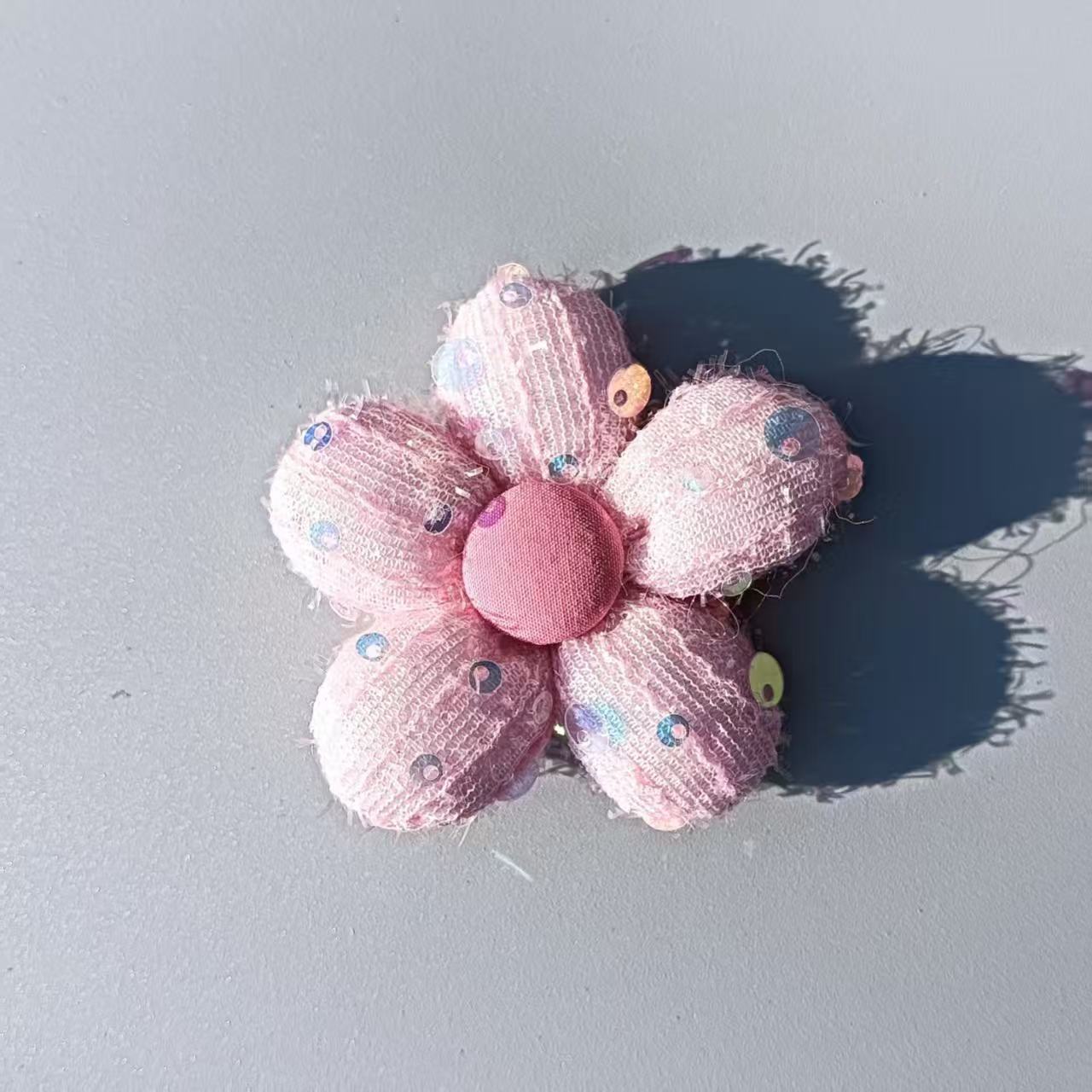 Broche de flor de cinco pétalos de algodón relleno de lentejuelas de tela accesorios decoración de tocado horquilla DIY accesorios a juego pin
