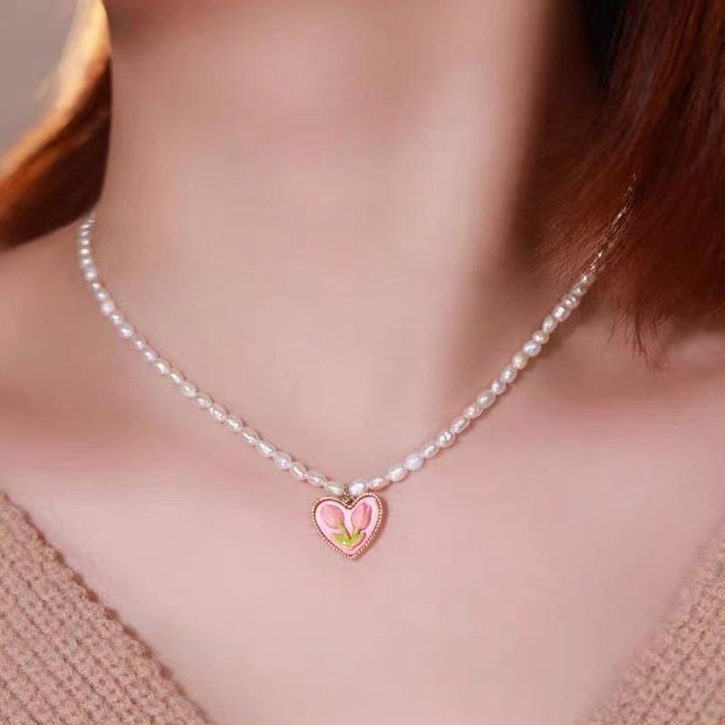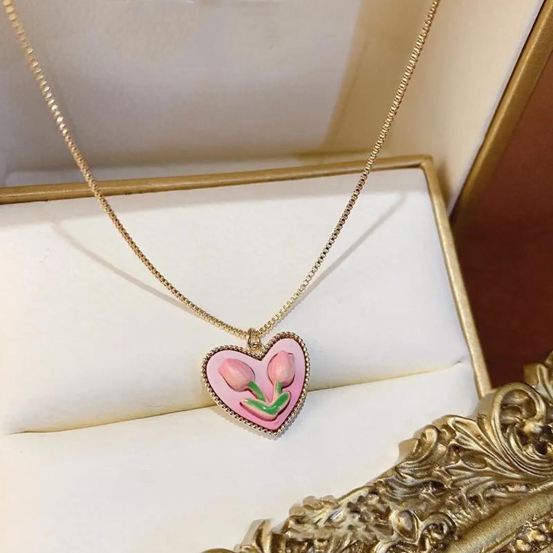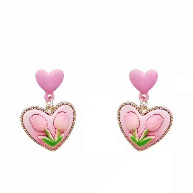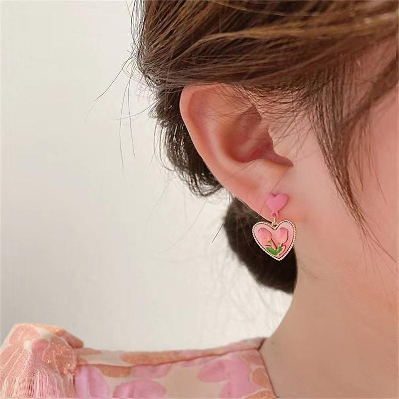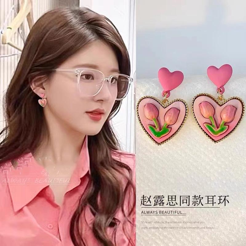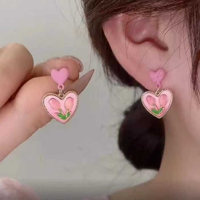 Aretes de Tulipán de Diseño Nicho Coreano con Aguja de Plata S925 Collar de Tulipán de Amor Aretes Elegantes