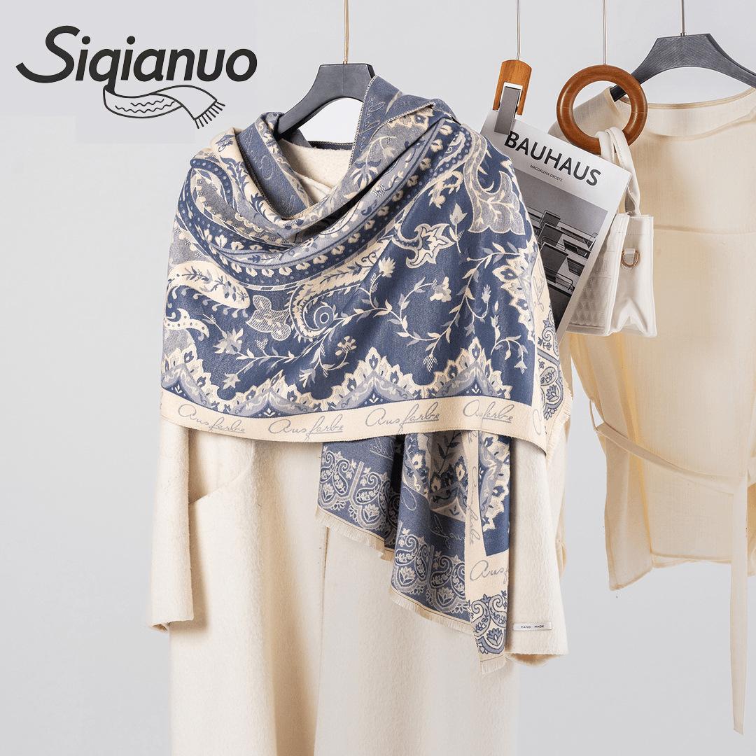 Bufanda Gruesa Caliente de Otoño e Invierno Transfronteriza Nueva Estilo Coreano Versátil Chal Largo de Doble Cara Calentador de Cuello Cálido de Cachemira de Doble Uso