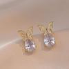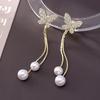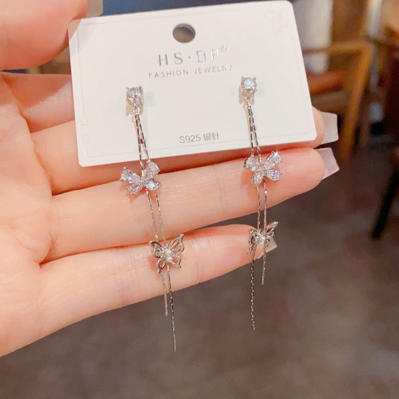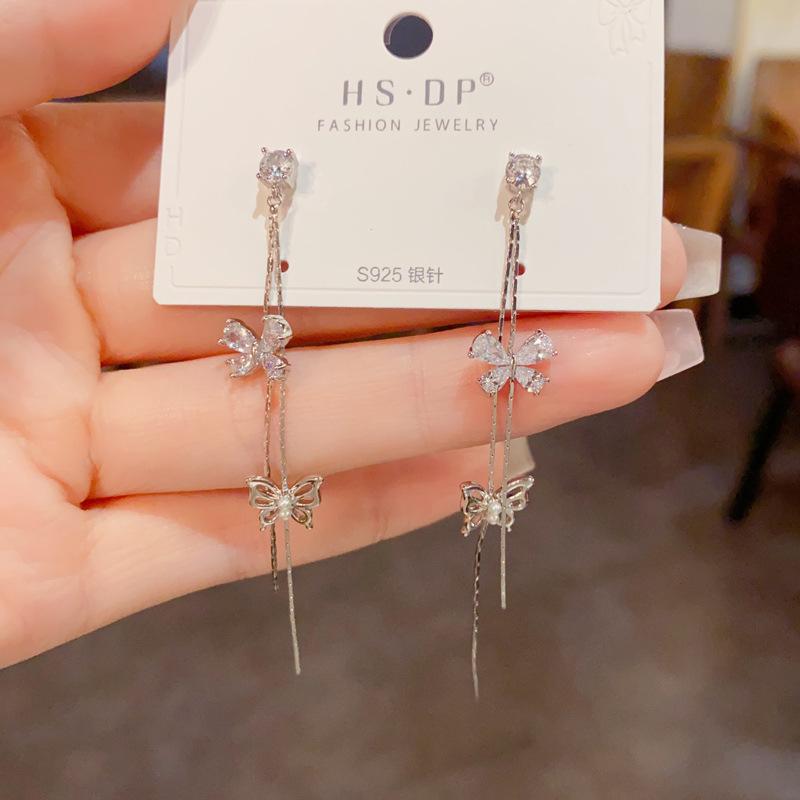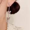 Aretes de Borla Larga de Mariposa de Zircón de Estilo Coreano Modernos, Dulces y Versátiles Exquisitos Aretes de Diseño de Lujo Ligero para Mujer