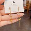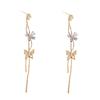 Gold-zircon butterfly long tassel earrings (thick real gold plating)