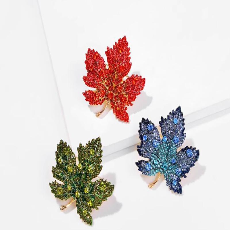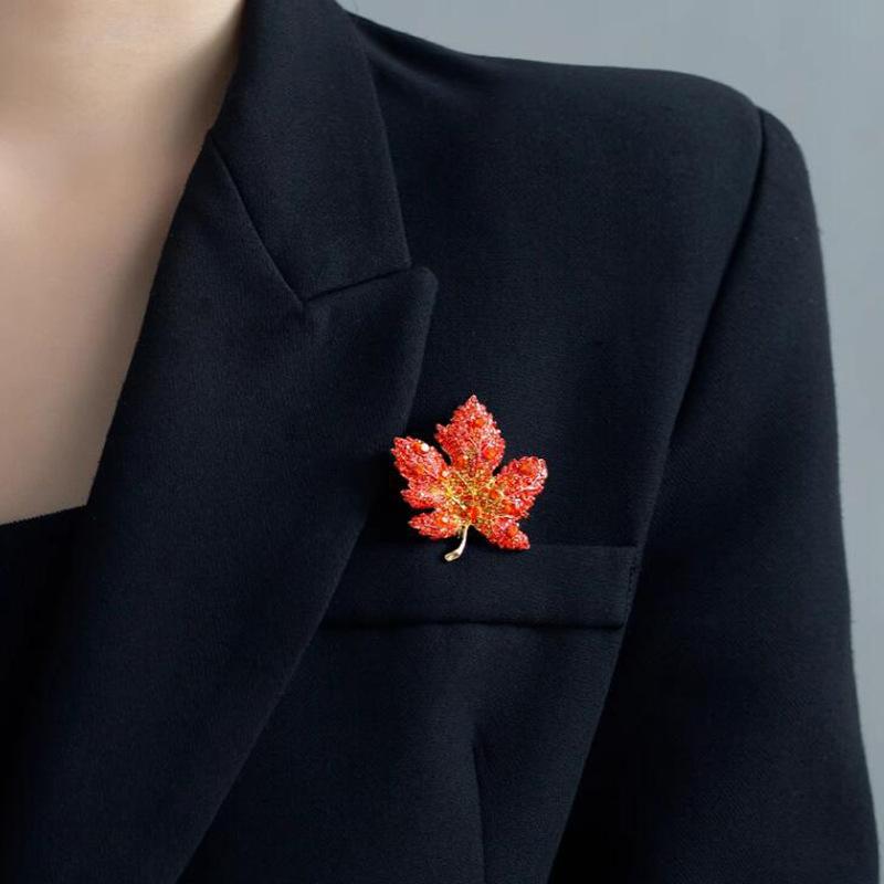 Corsage Broche Hoja de Arce Roja Pin Fino para Mujer de Alta Gama Lujo Elegante Traje Accesorios de Bienvenida de Alta Gama