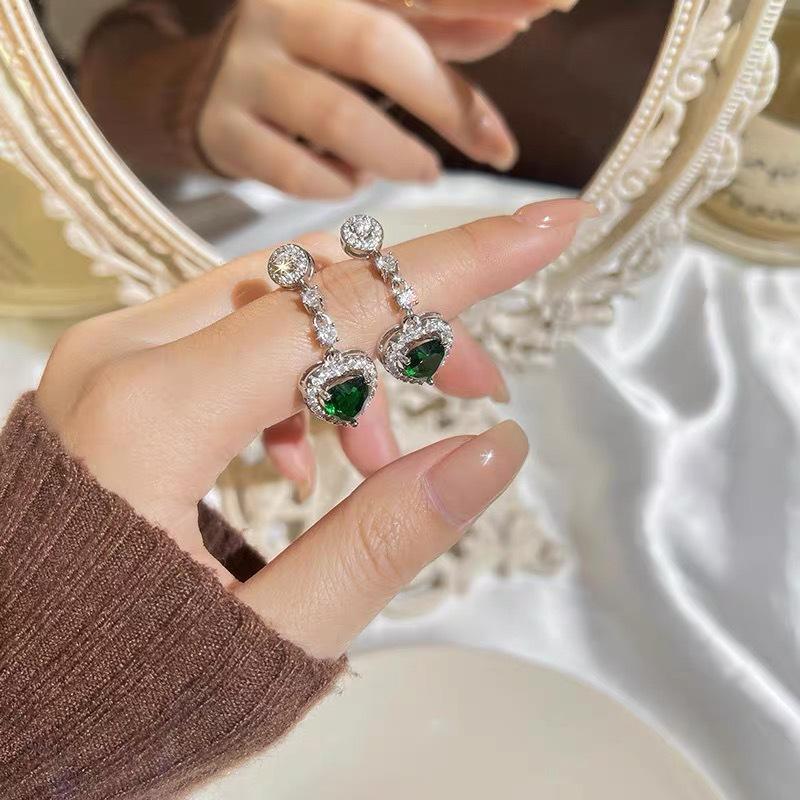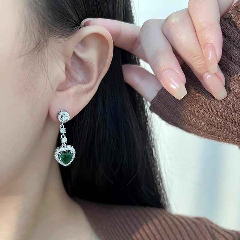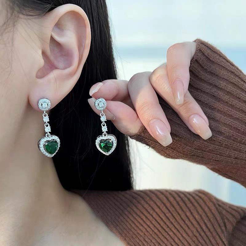 Aretes de Corazón de Circonita Micro-Pavimentada para Mujer, Forma Larga de Gota de Agua, Modernos, Ligeros y Lujosos, Aretes Versátiles de Celebridad de Internet con Forma de Corazón