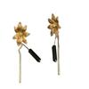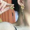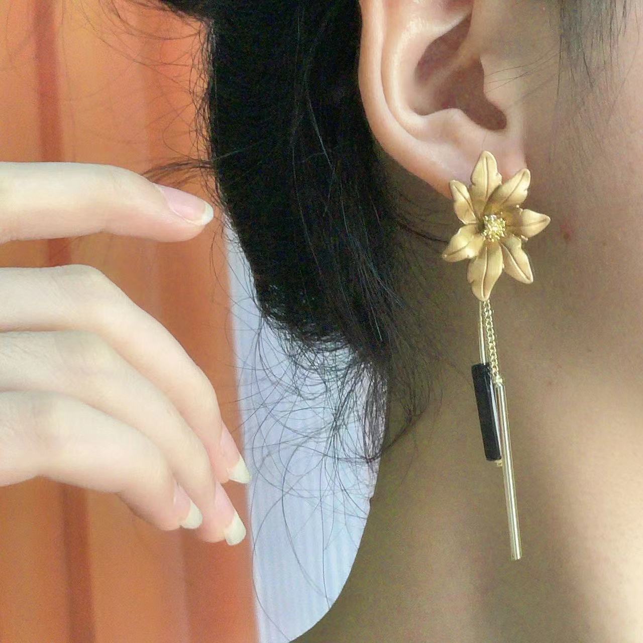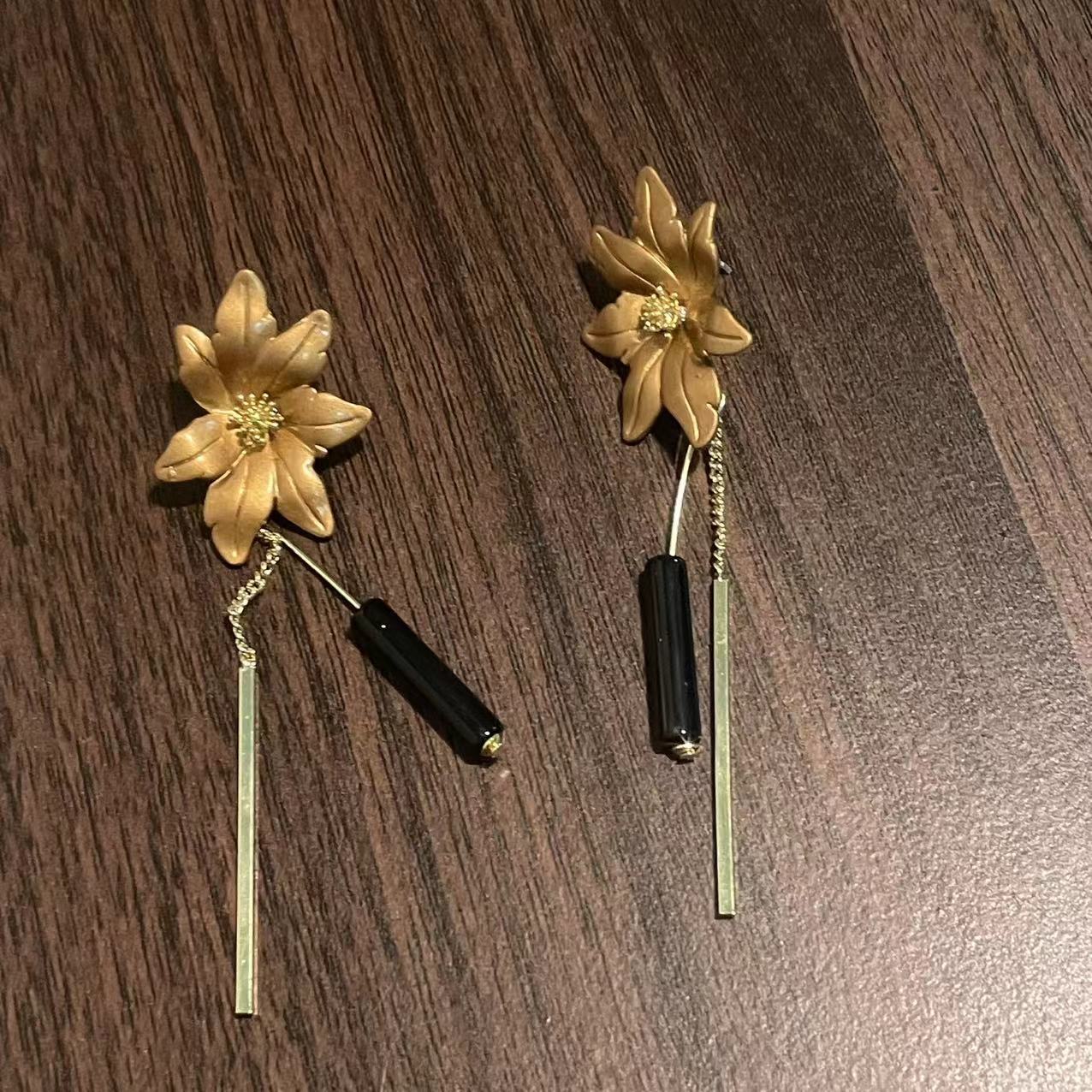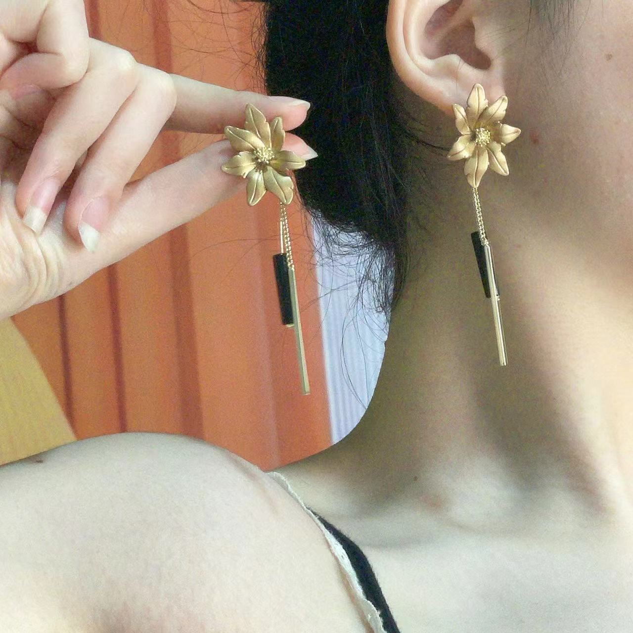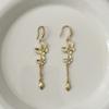 Aretes Retro Franceses Dorados Artísticos de Flor con Borla Larga Diseño Nicho de Lujo Ligero Aretes de Temperamento