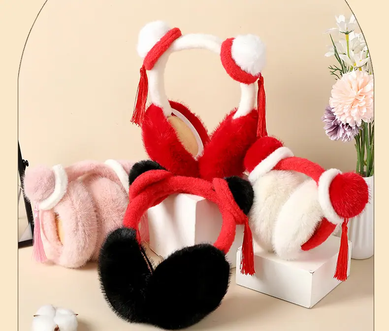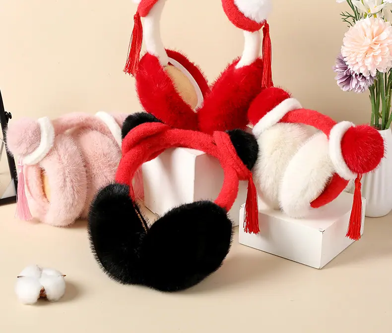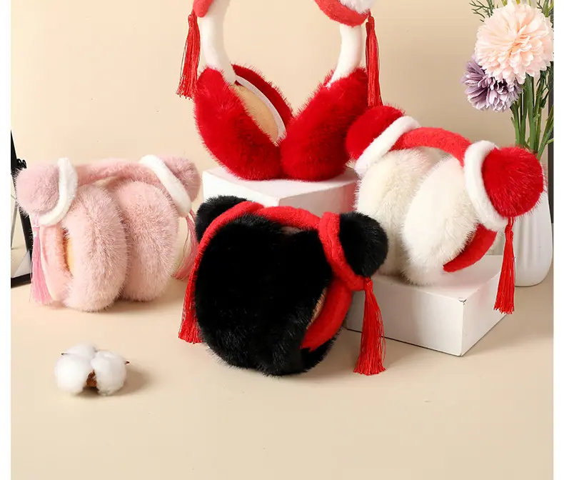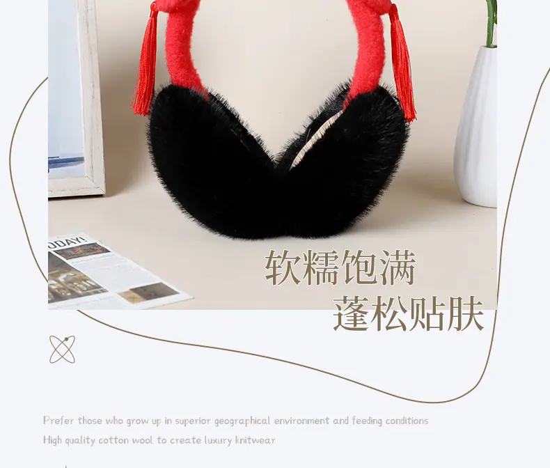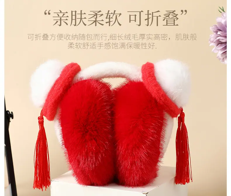 Chinese style foldable earmuffs [white+red], Chinese style foldable earmuffs [black+red], Chinese Style Foldab...