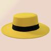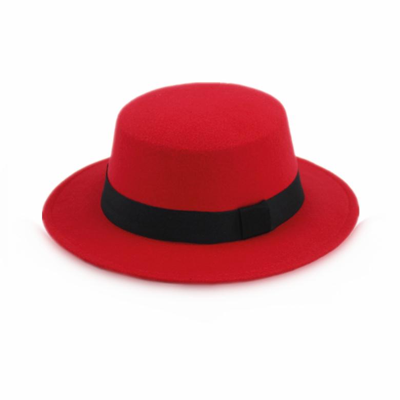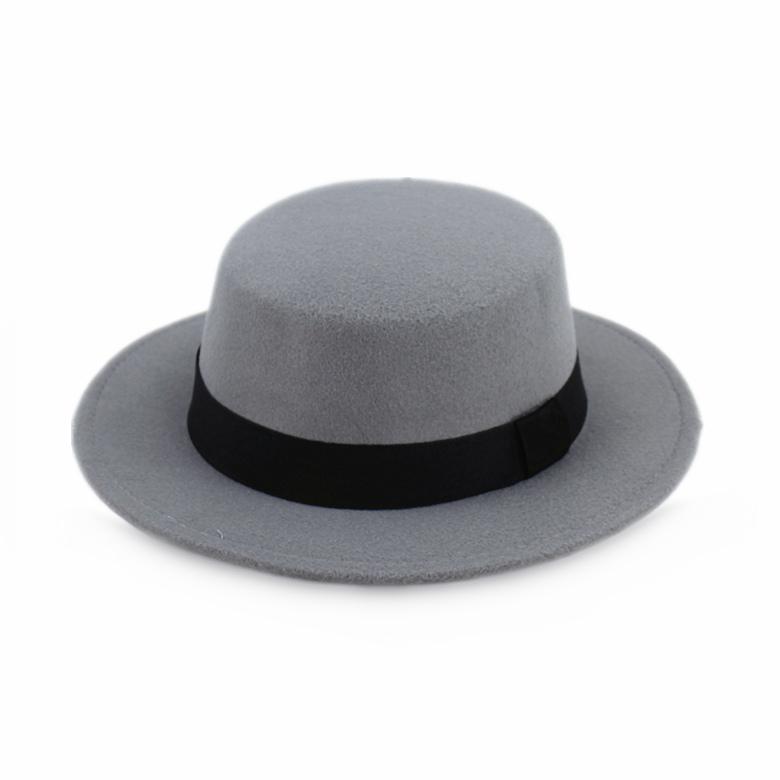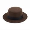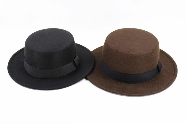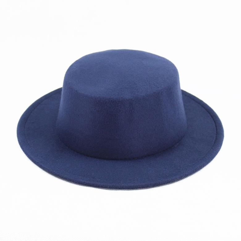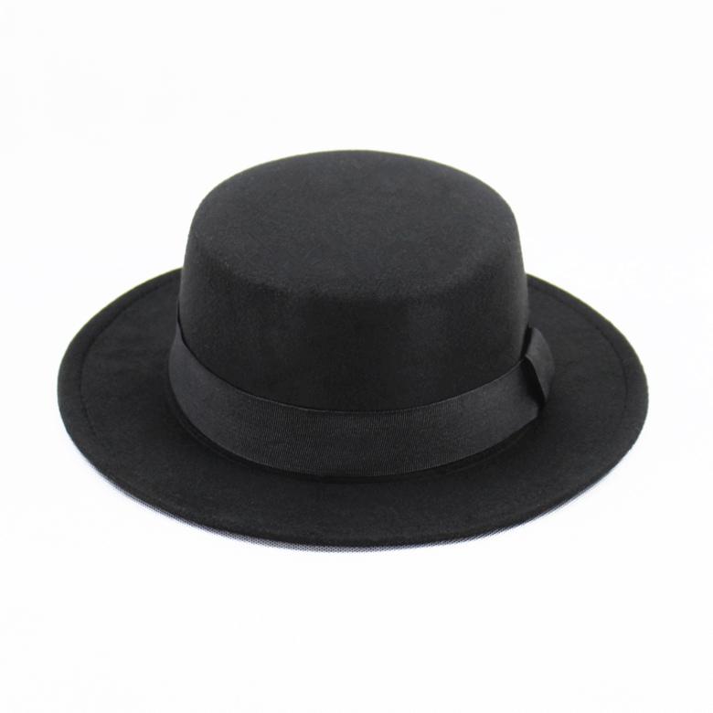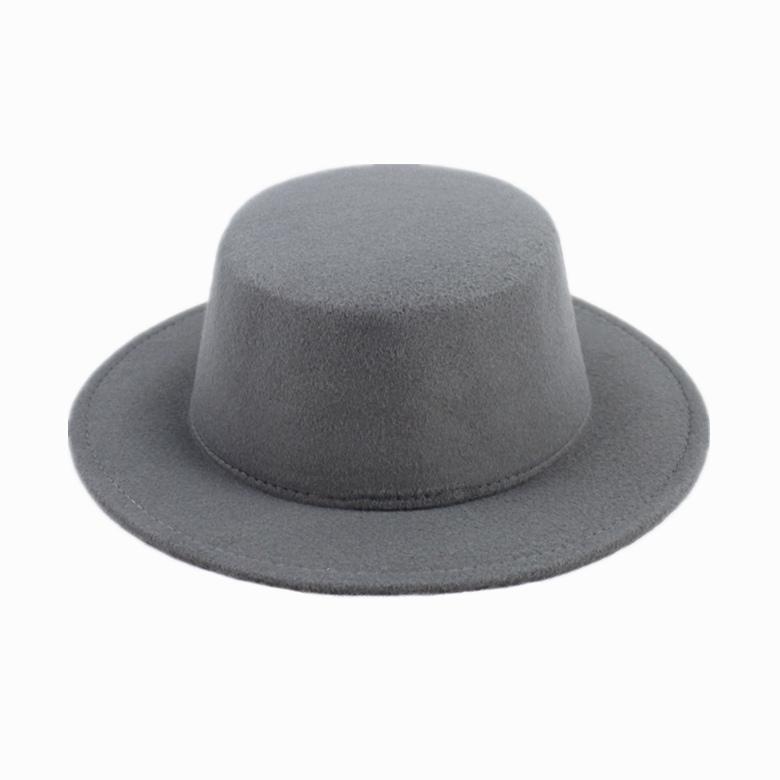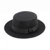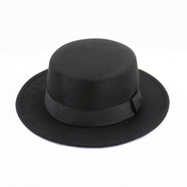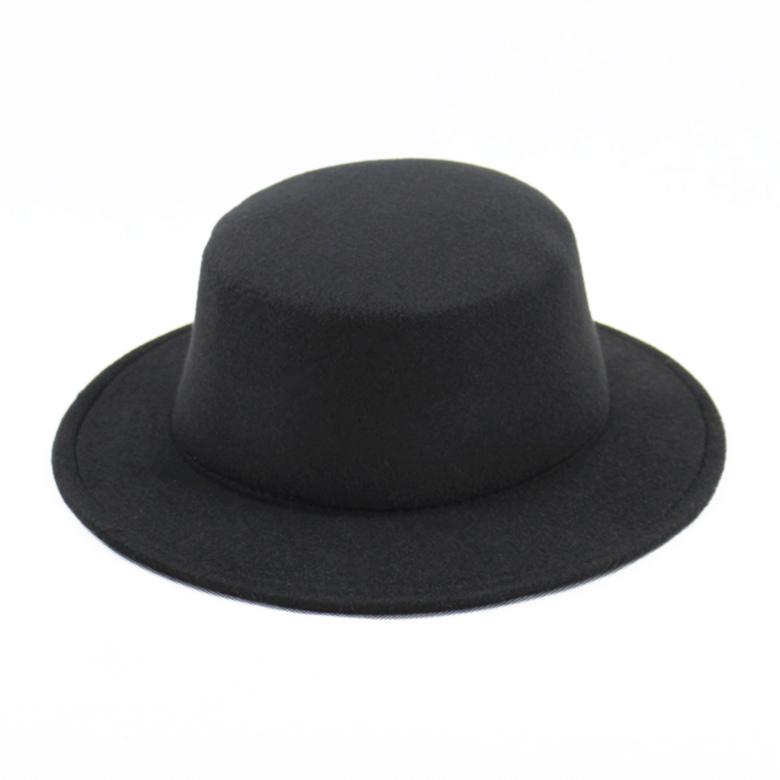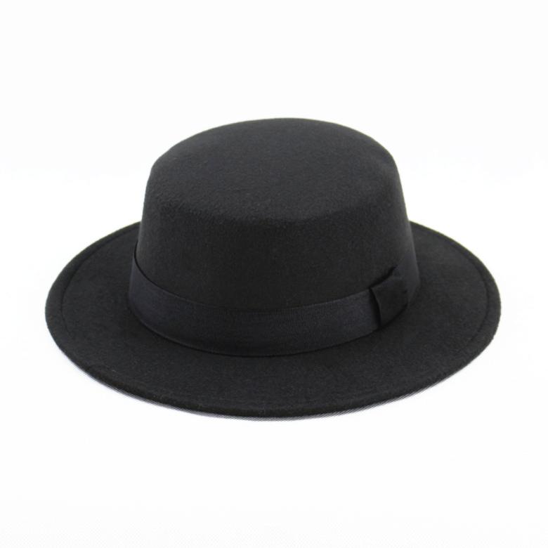 Sombrero de copa de otoño e invierno Británico Negro Sombrero de copa de copa plana Coreano Hepburn Caballero Sombrero de jazz Ala plana Lana Ala ancha Sombrero para hombre y mujer