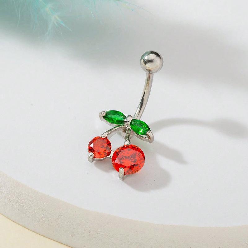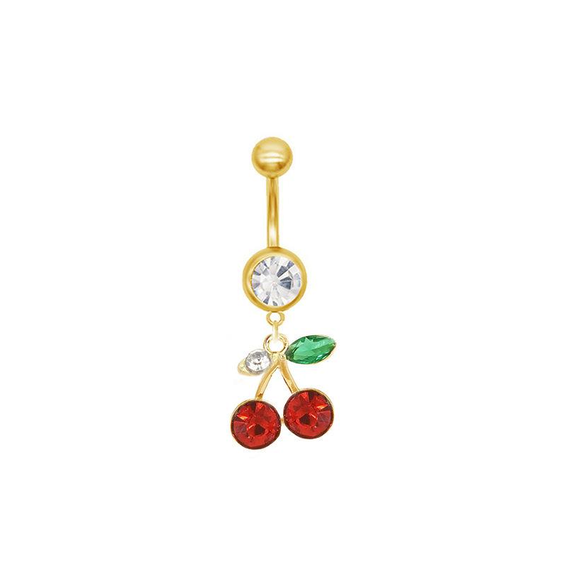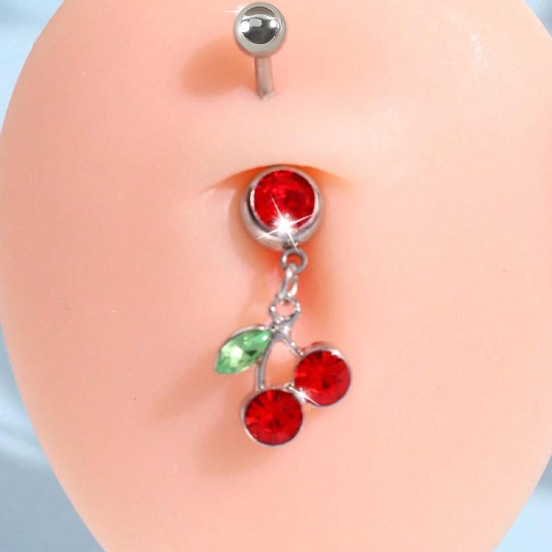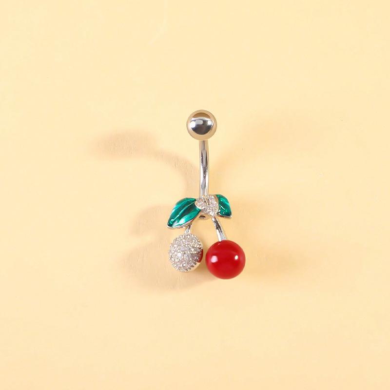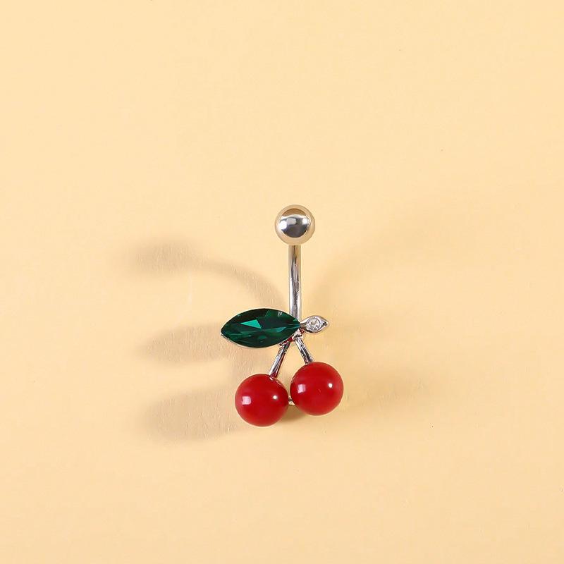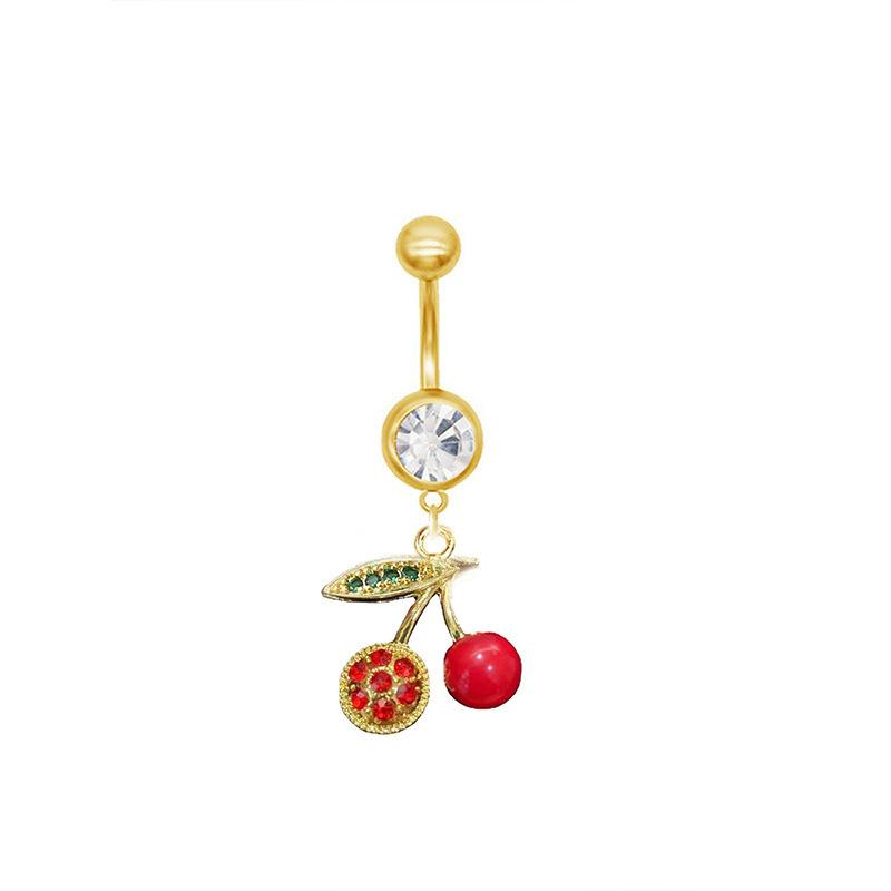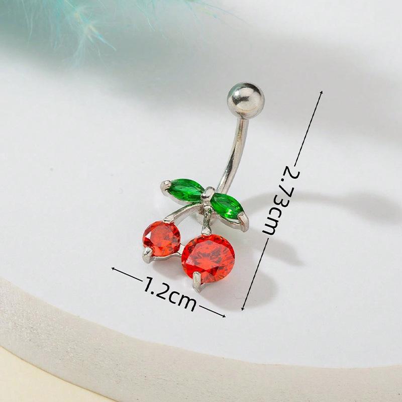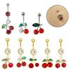 Anillo para ombligo transfronterizo de acero inoxidable con forma de cereza, multicolor, estilo cool, temperamento, joyería para piercing de ombligo al por mayor, entrega inmediata