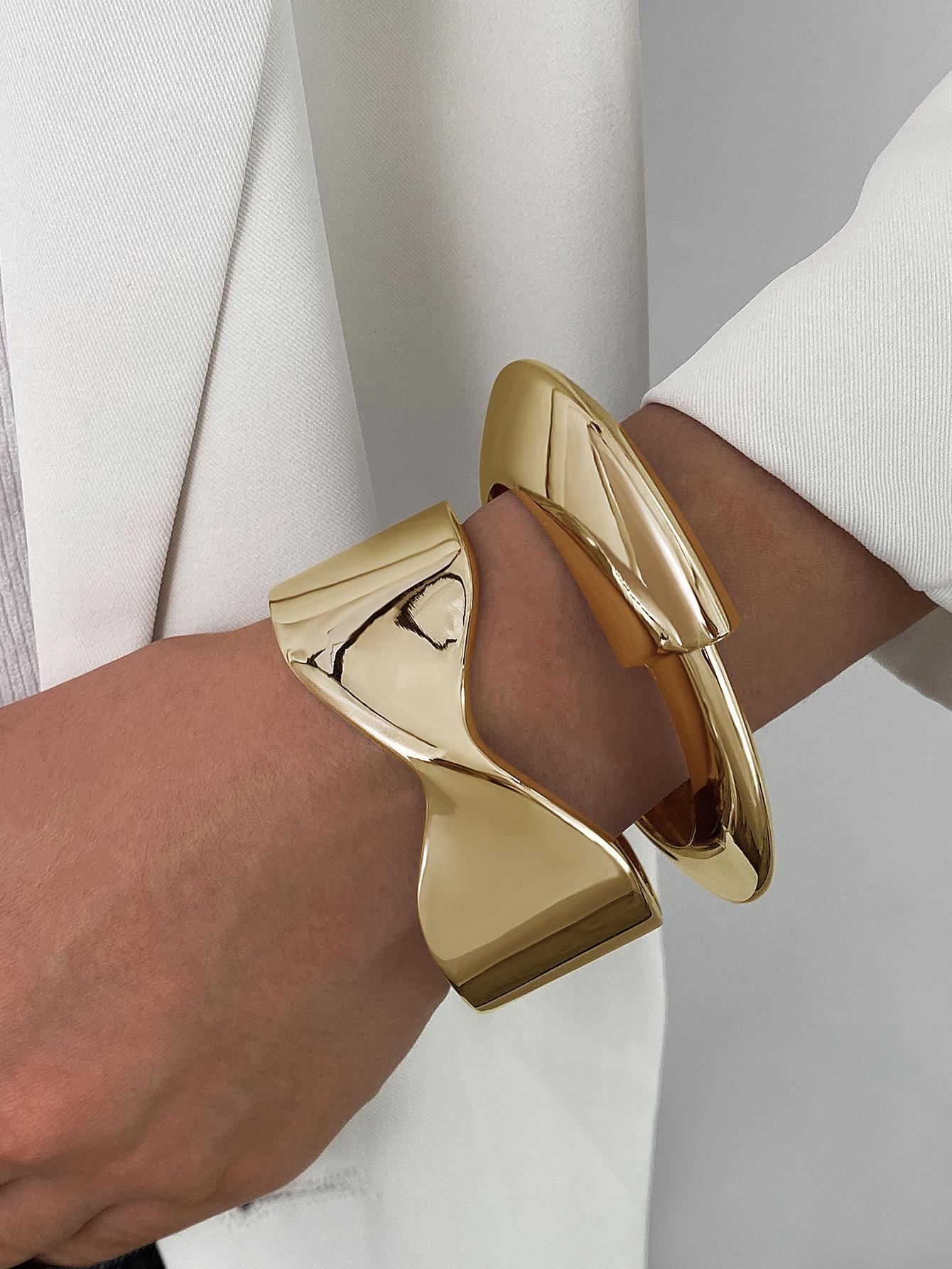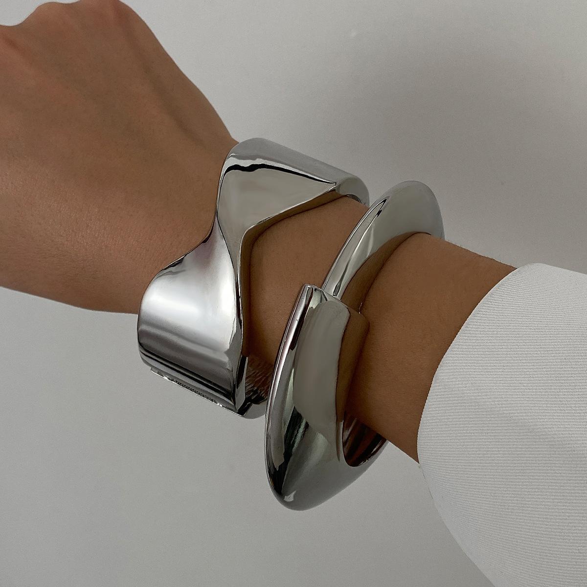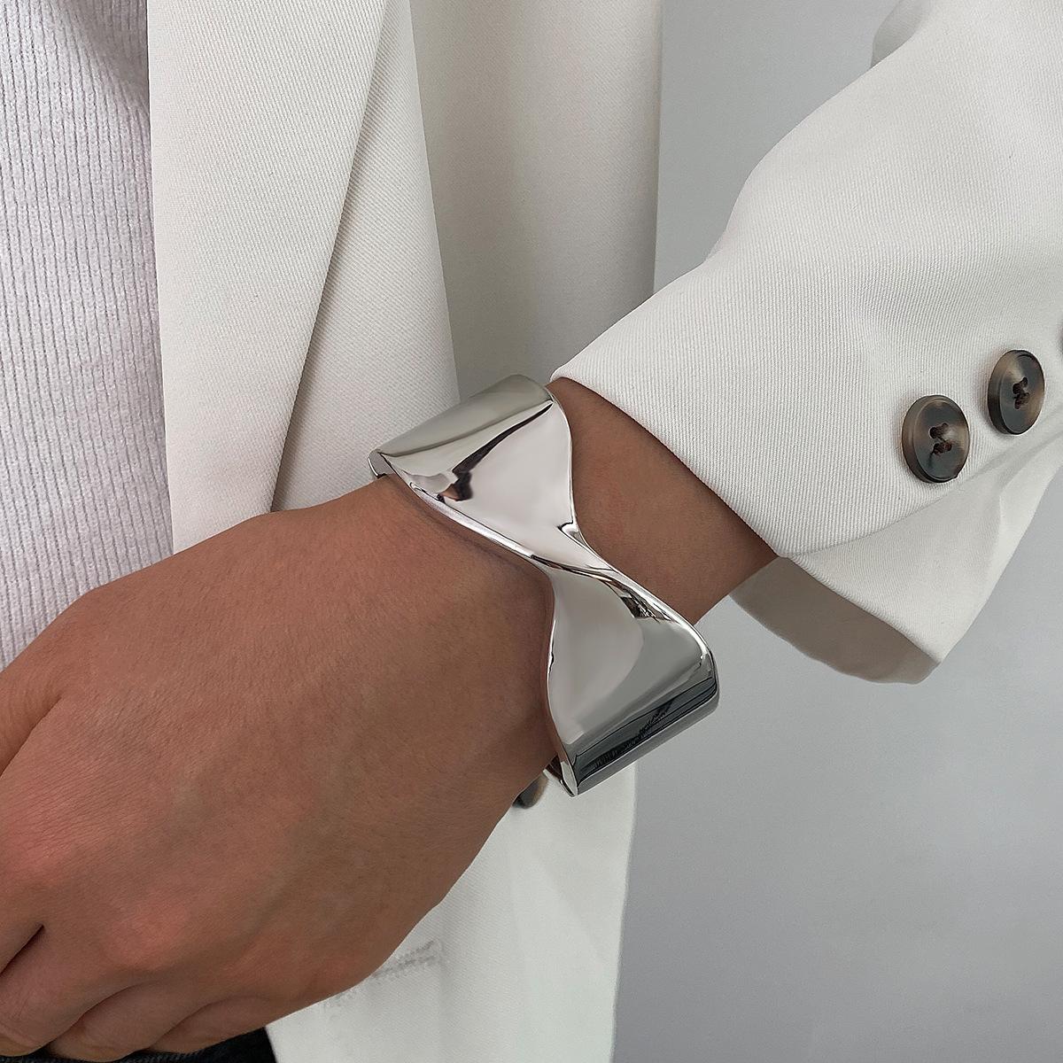 Joyería Retro Transfronteriza Europea y Americana Brazalete Liso Irregular Plisado Juego de Pulseras Abiertas de Aleación de Alta Gama