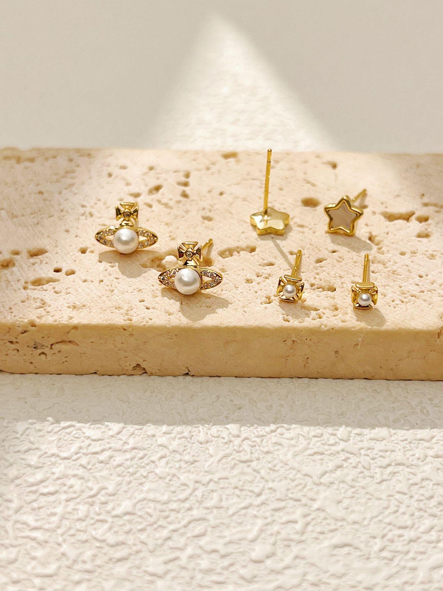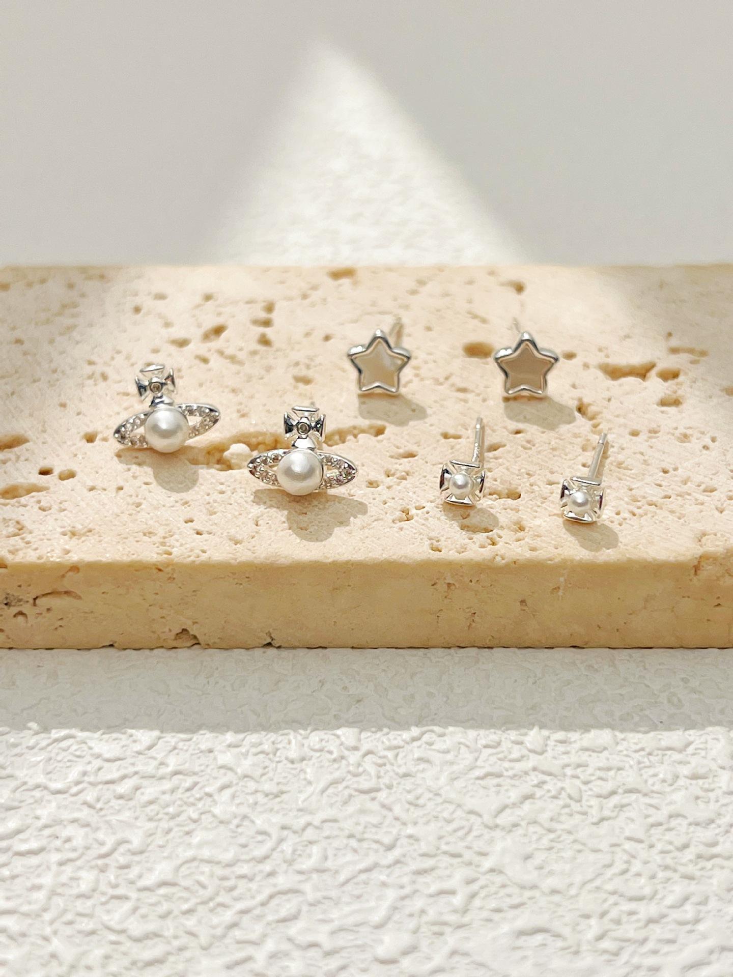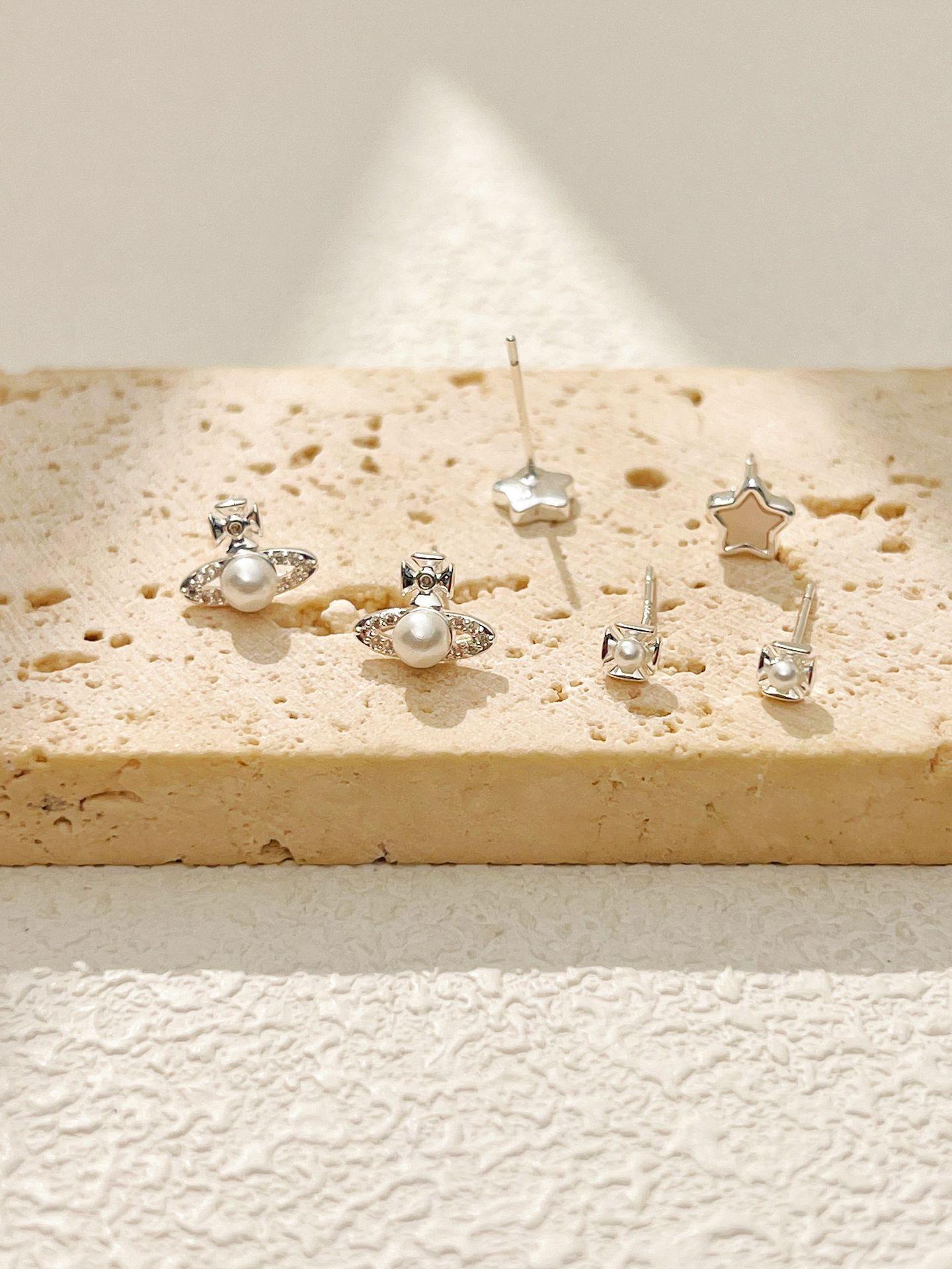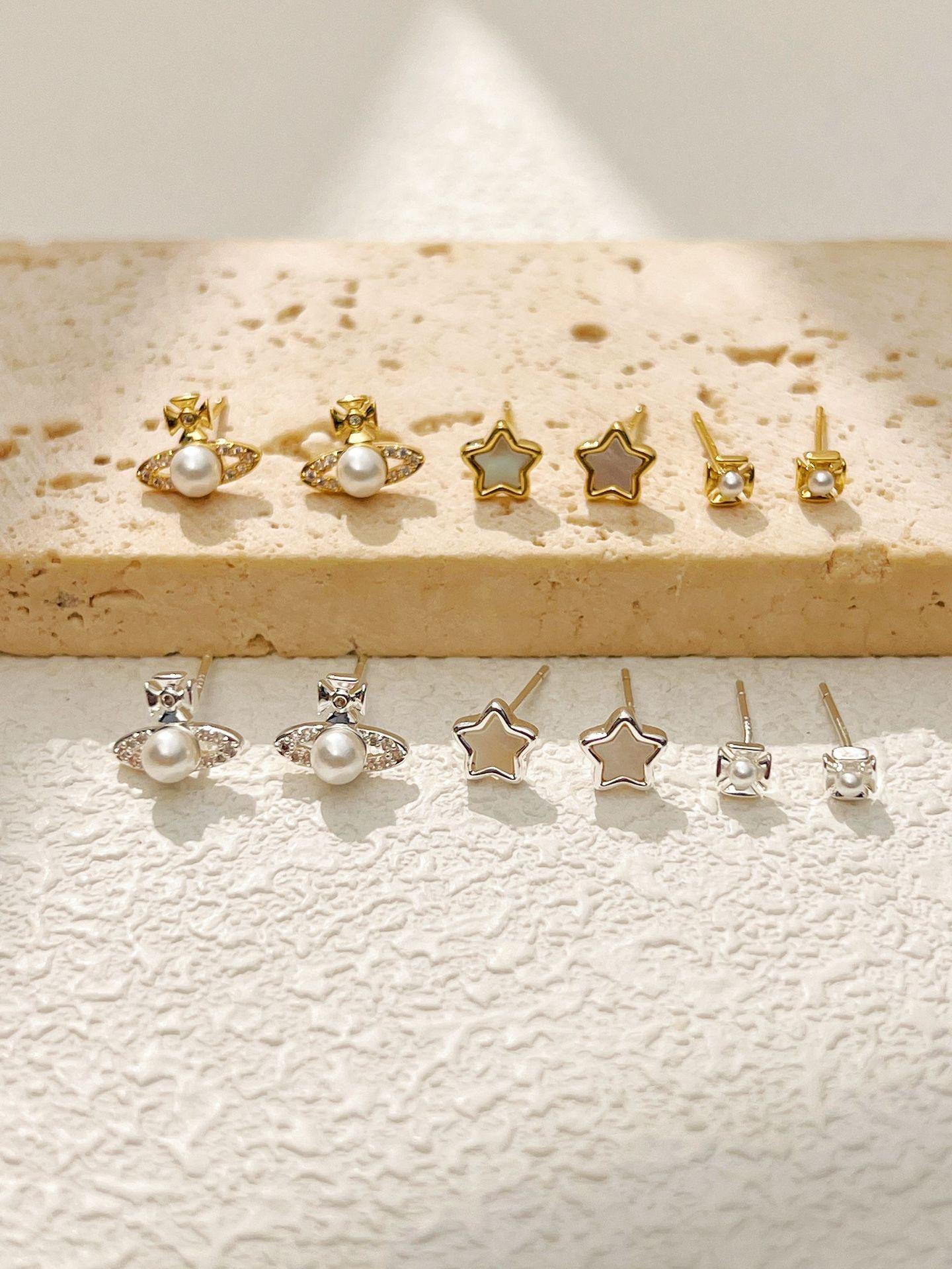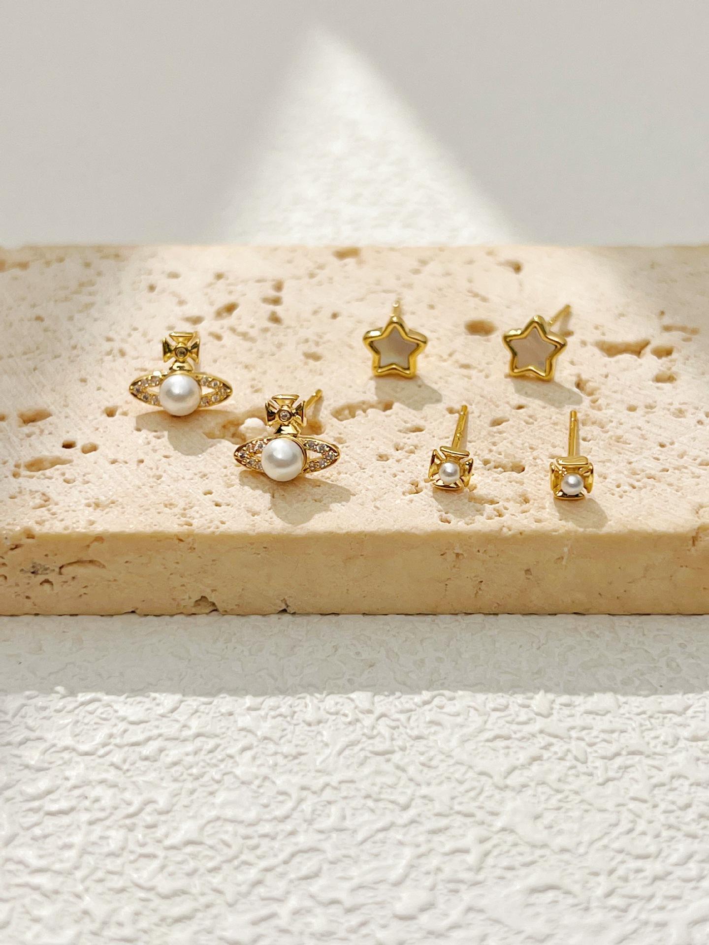 Set de Aretes de Tres Piezas Planeta Simple y Compacto, Aretes Modernos y Versátiles para Mujer, Aretes Estilo Lujo Ligero