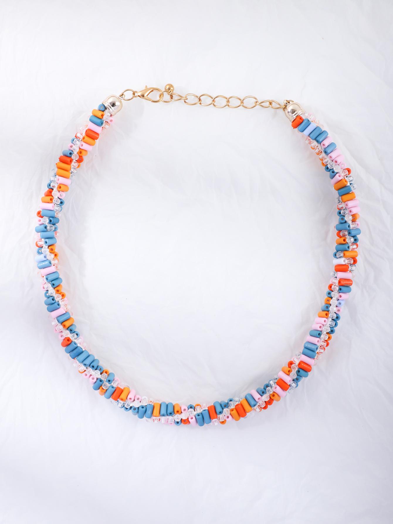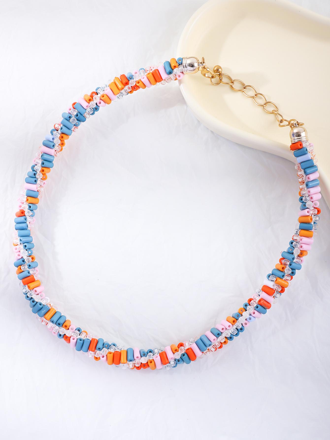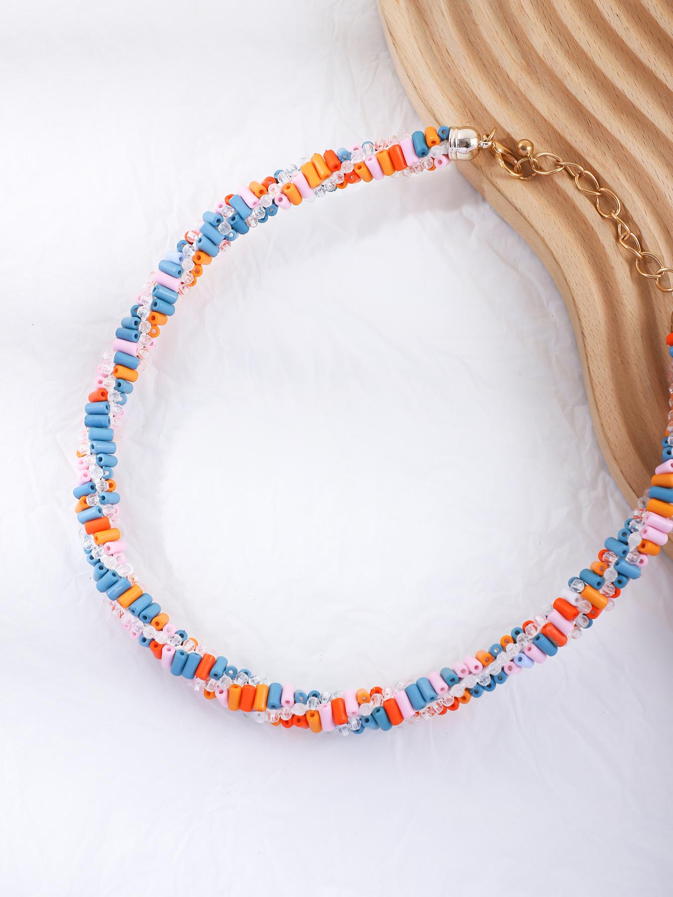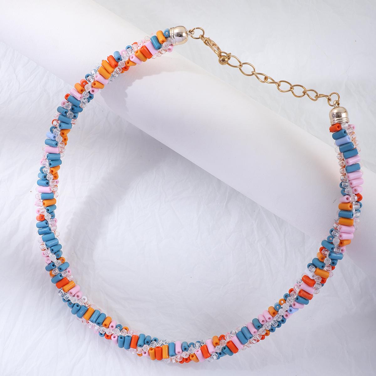 Cadena de clavícula con cuentas de color europeo y americano Nuevo collar hecho a mano de personalidad nicho para mujer