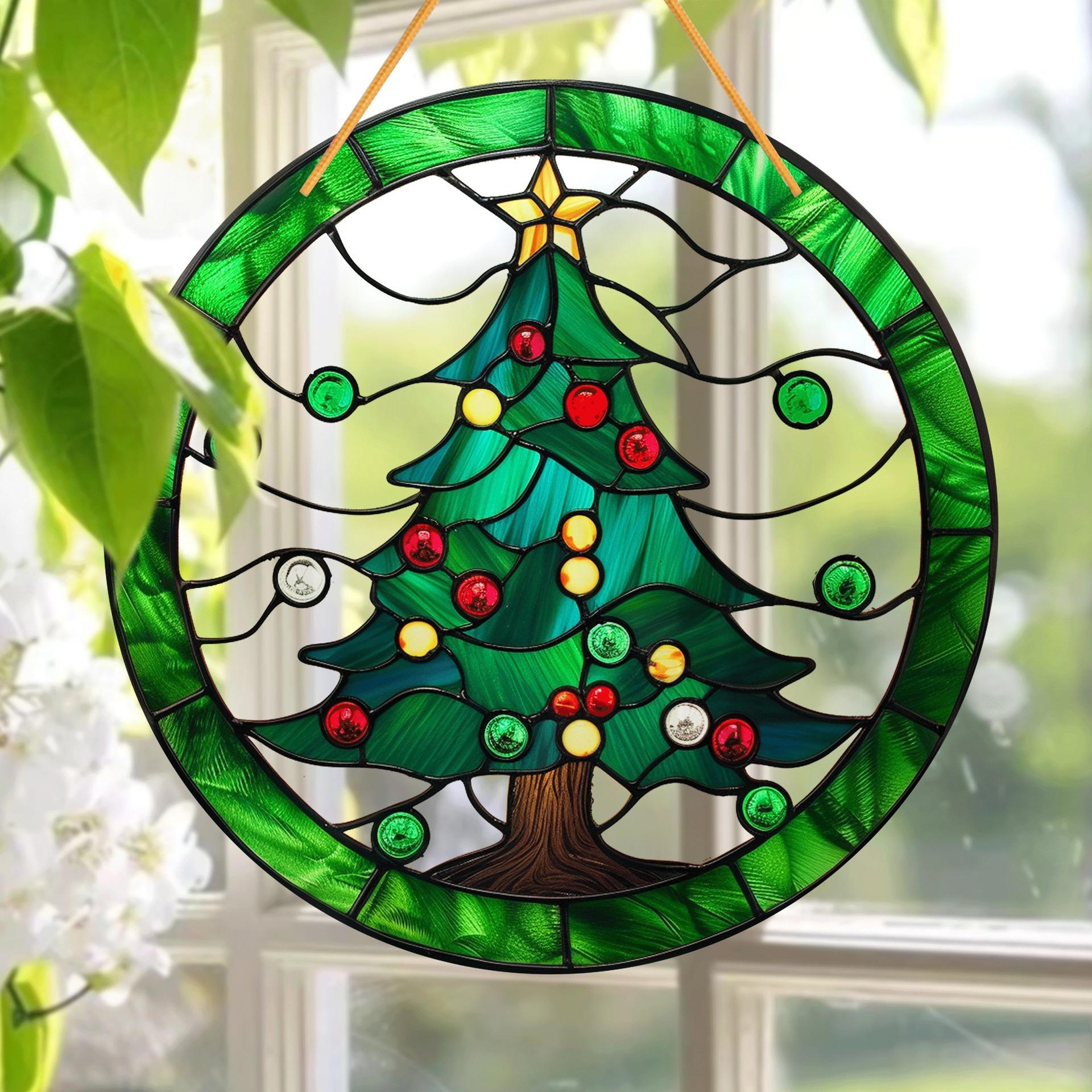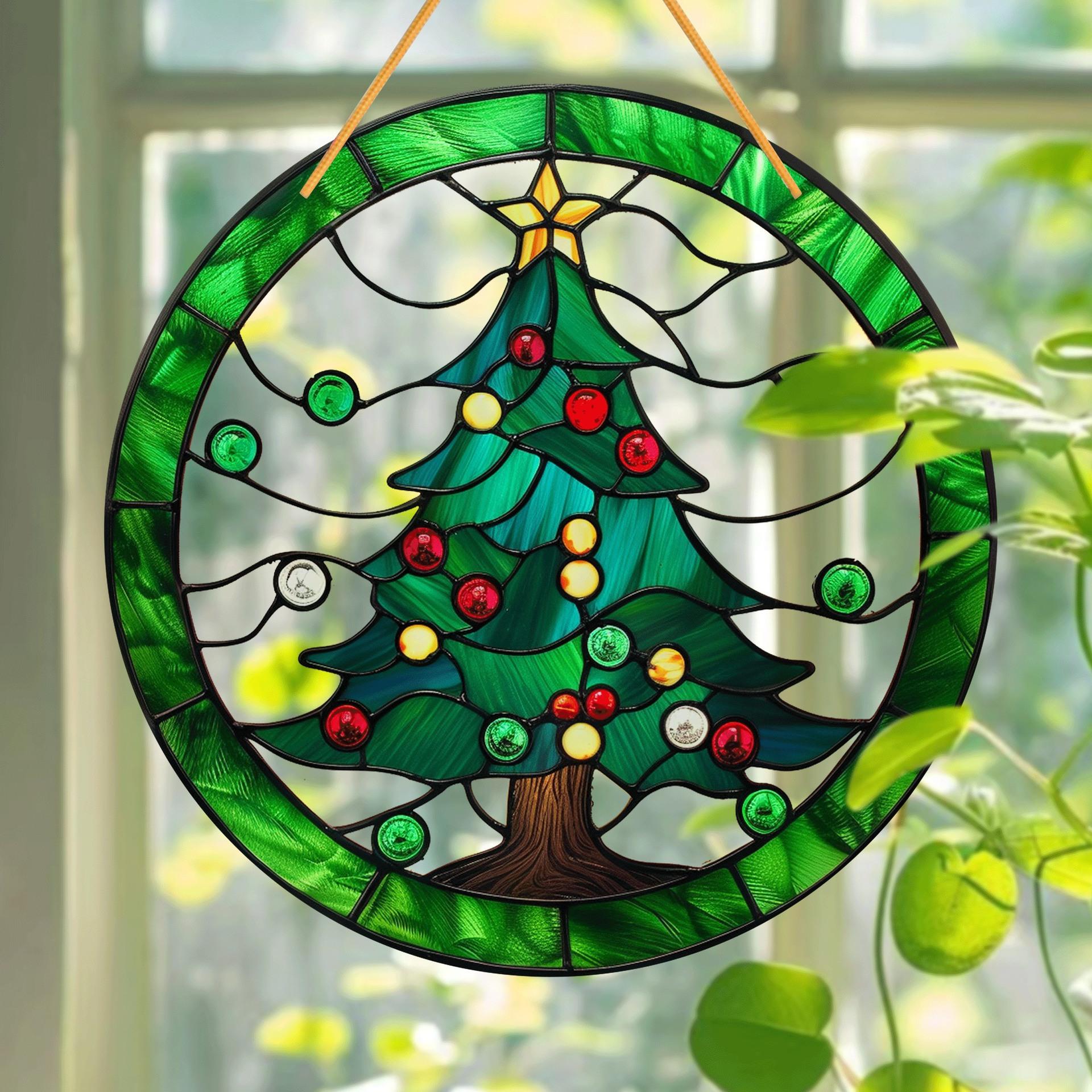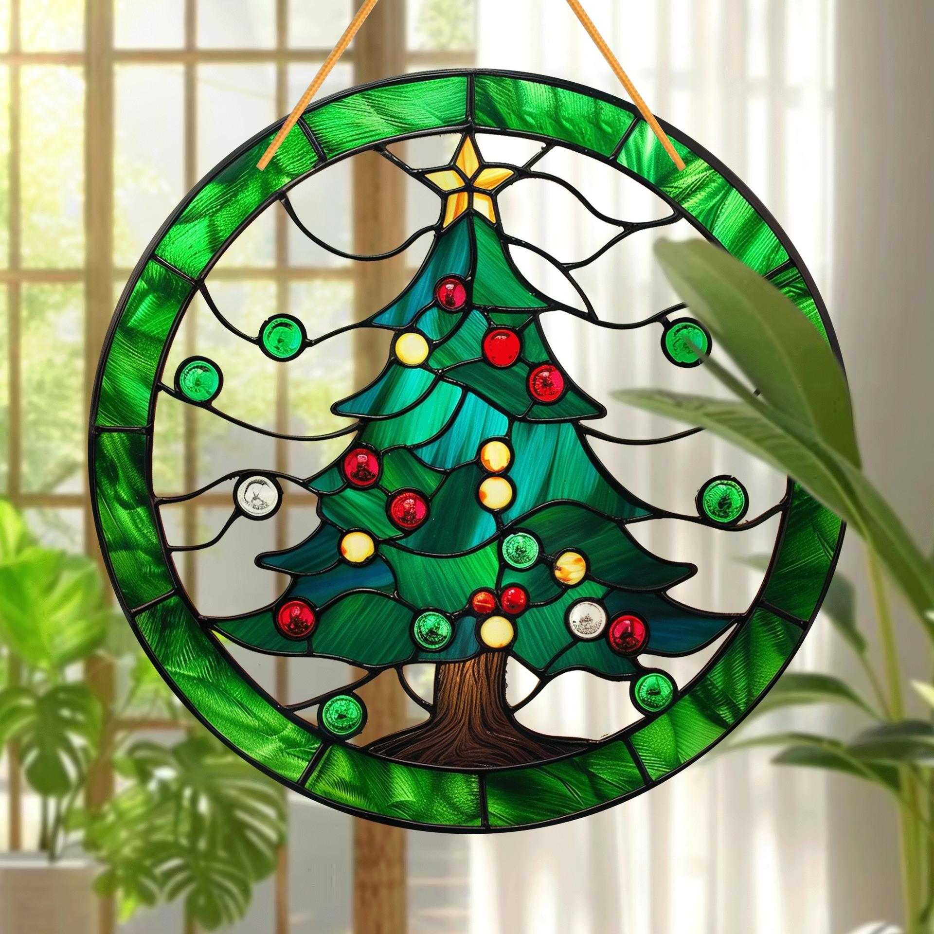 Atrapasol de Árbol de Navidad Colorido Disco Acrílico Adorno Pintado Decoración para Ventana Porche con Cadena para Colgar en Casa
