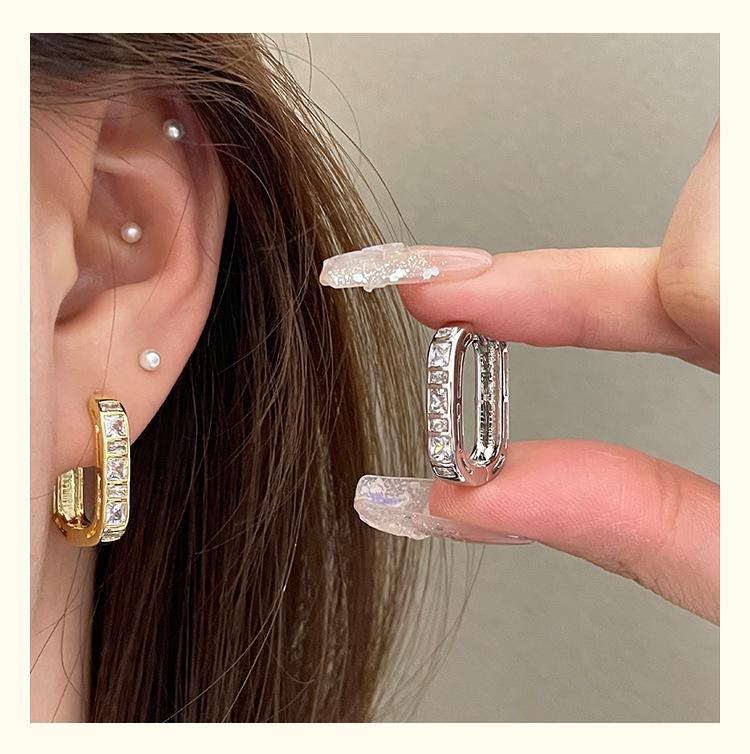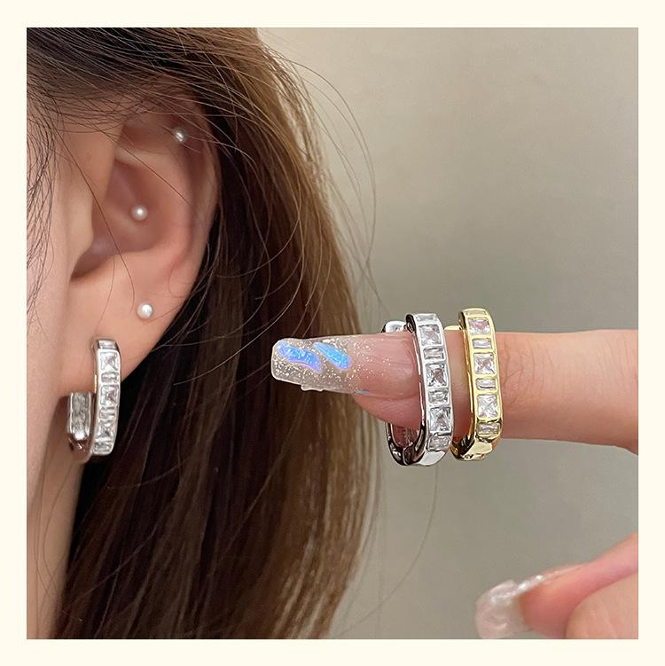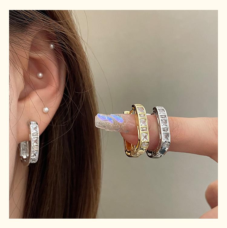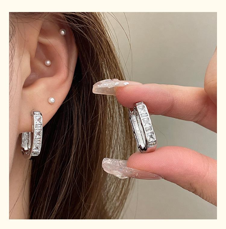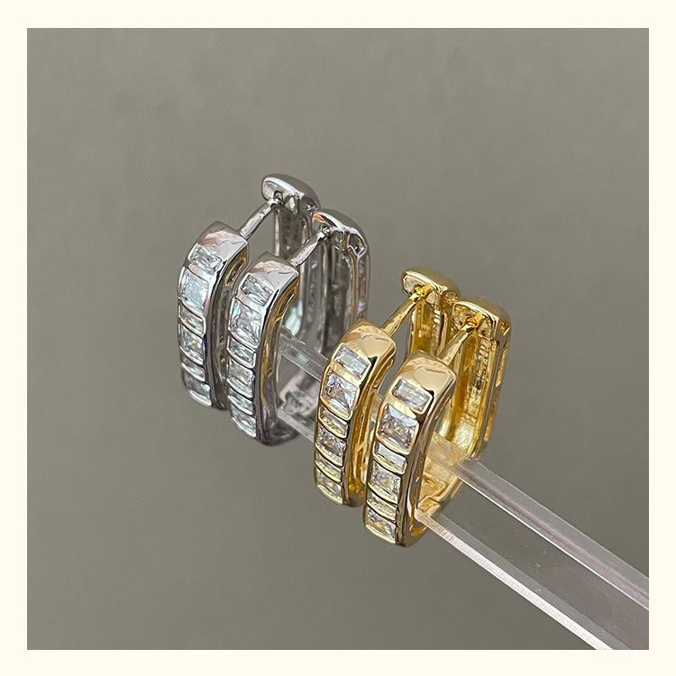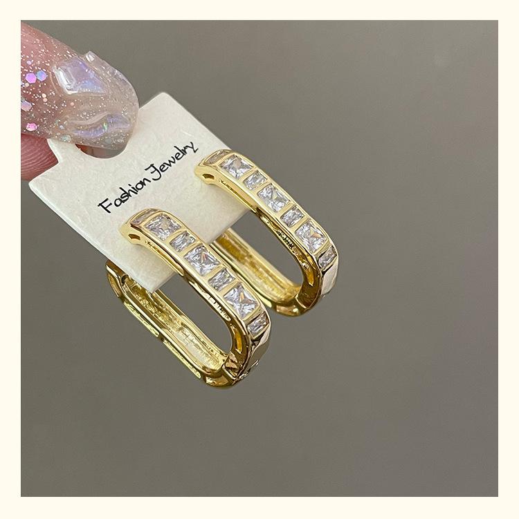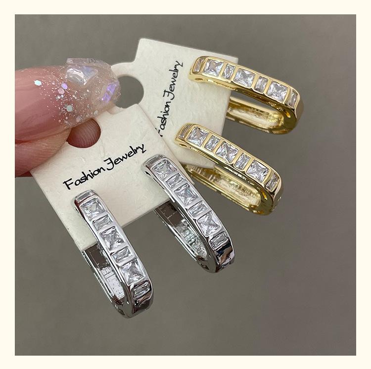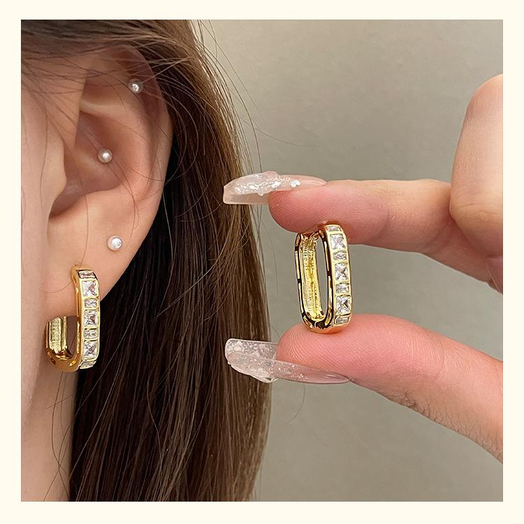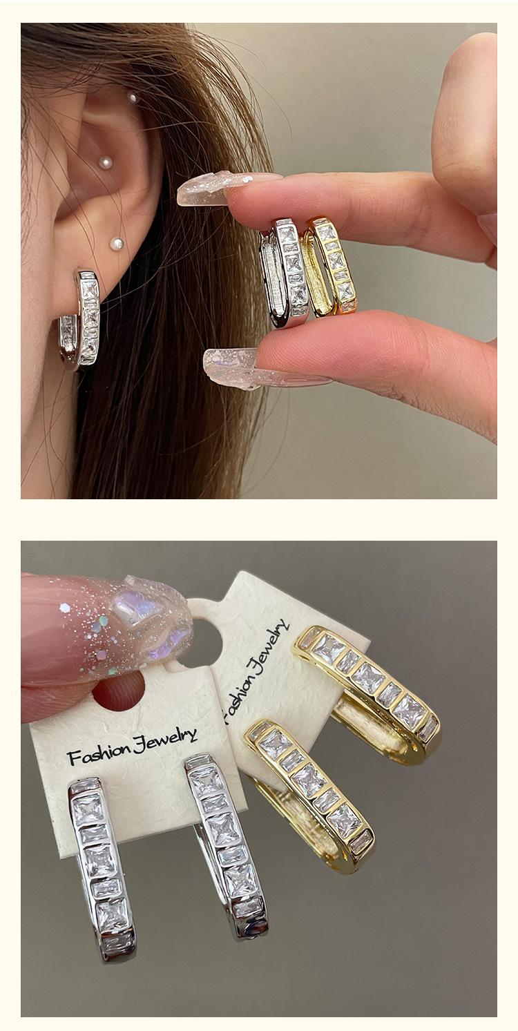 Exquisitos y Compactos Aretes de Circonita en Forma de U para Mujer, Nuevo Estilo Francés, Aretes Simples y Frescos, Aretes Modernos y Versátiles