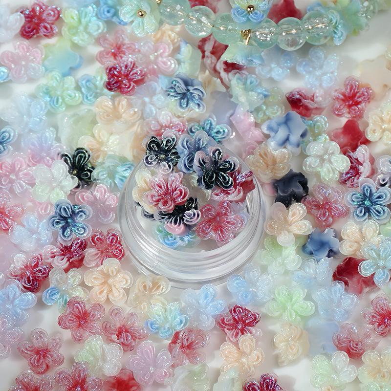 Flor Suave de Cinco Pétalos de 8mm Flor Tallada de un Lado con Brillo Fino No Poroso Material para Carcasa de Teléfono para Arte de Uñas con Cuentas Hecho a Mano DIY
