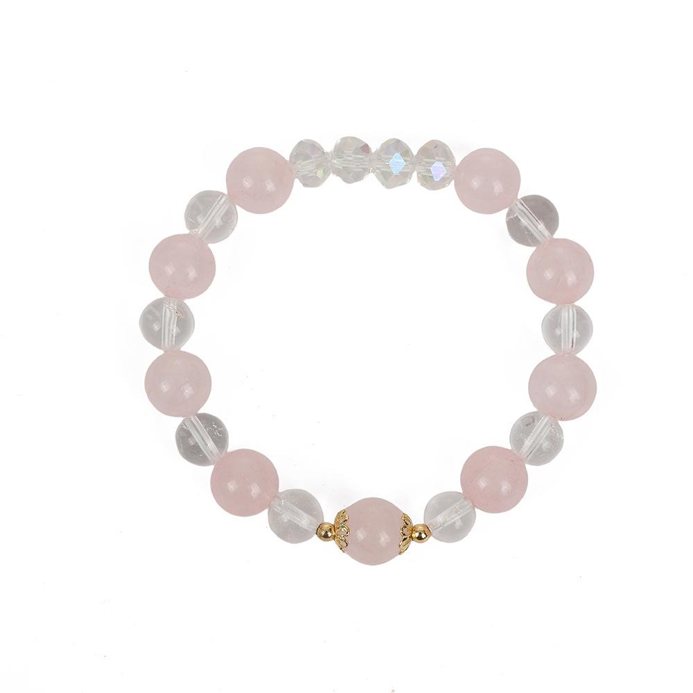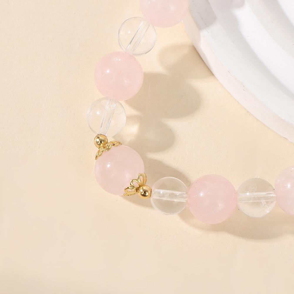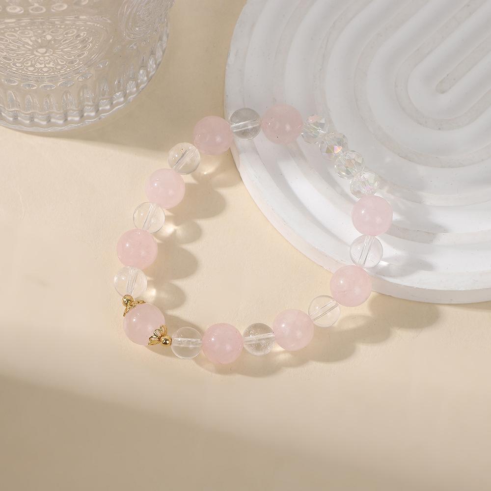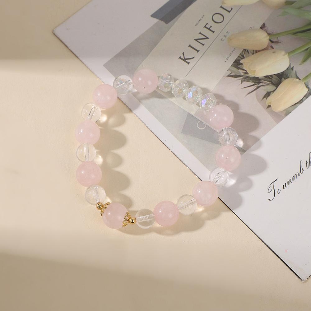 Diseño Original Cristal Rosa Toronja Natural Mezcla Cristal Blanco Pulsera Moda Mujer Simple Dulce Versátil Pulsera de Cuentas Mujer