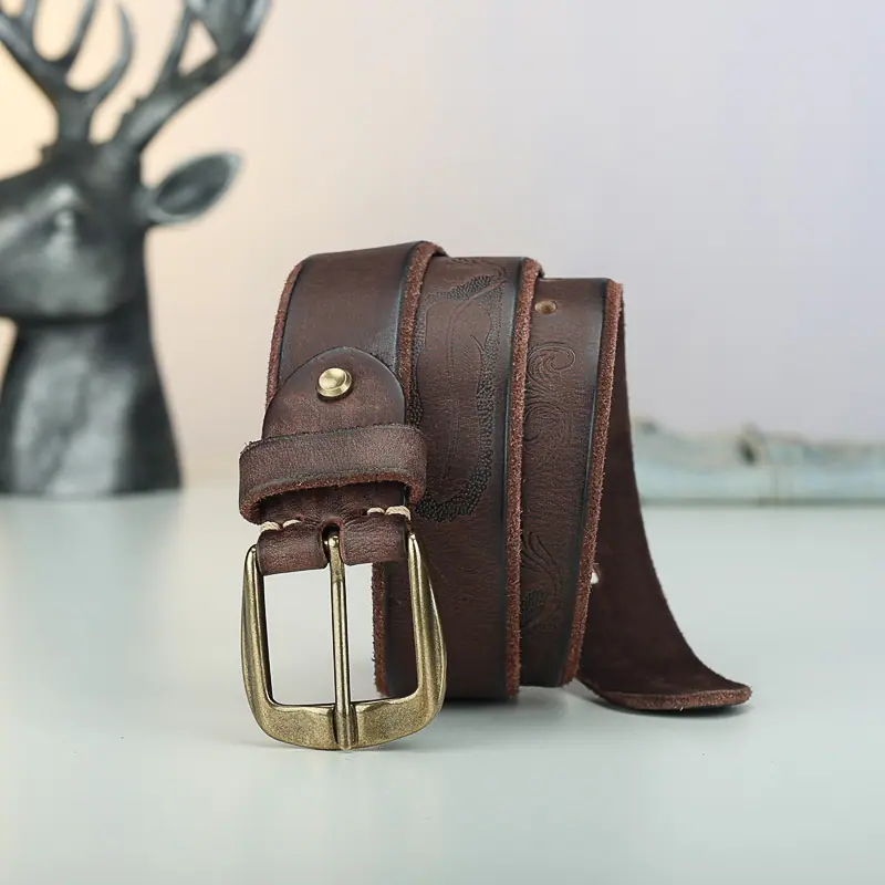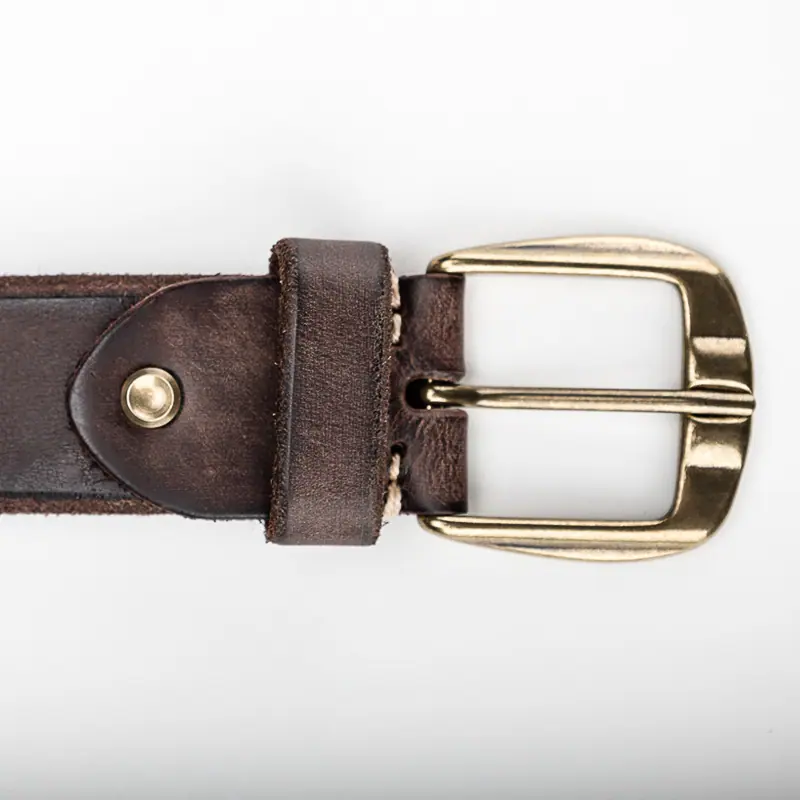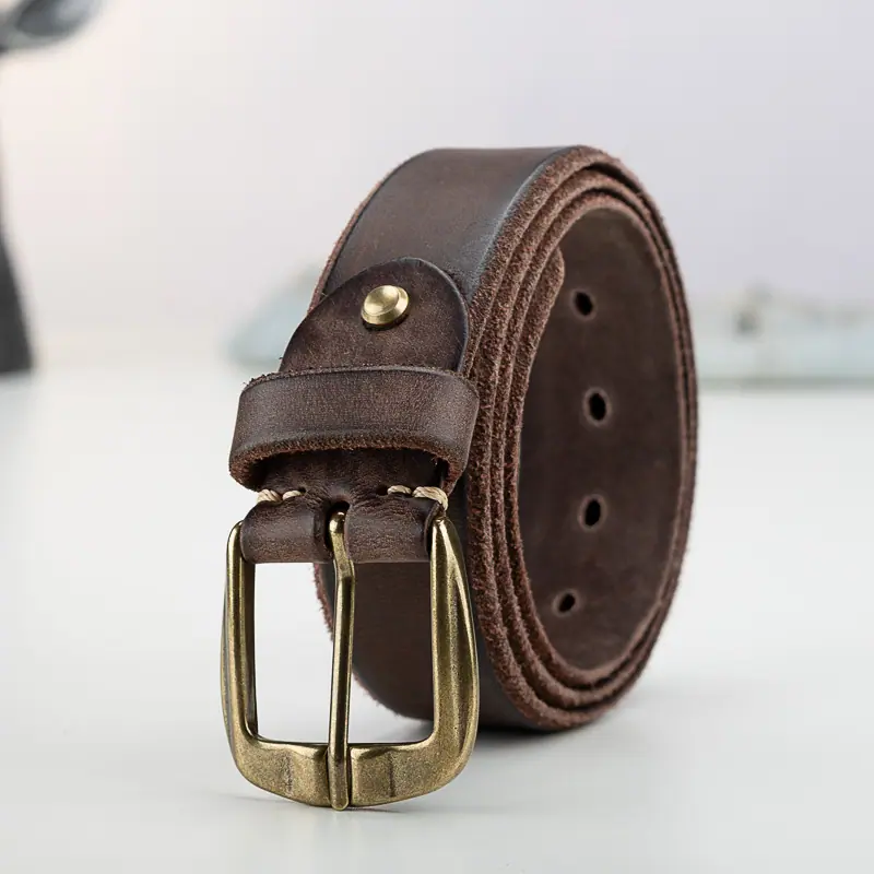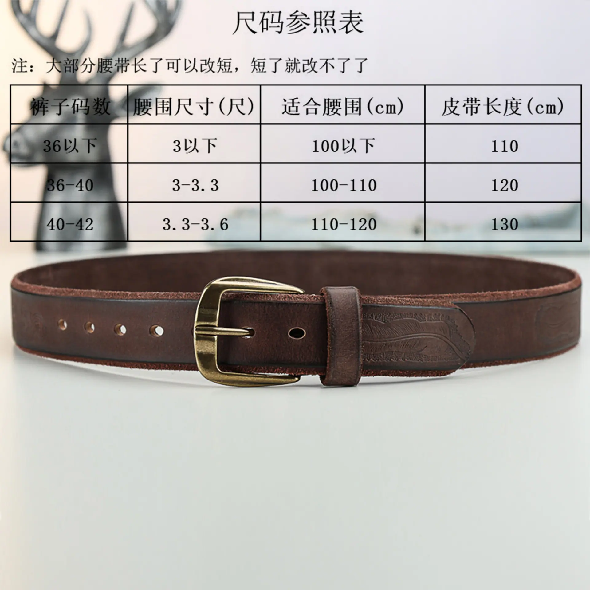 Cinturón de Cuero Genuino para Hombre Vintage Desgastado, Cuero de Vaca de Primera Capa con Hebilla de Latón, Textura Rugosa, Accesorio de Alta Gama, Cinturón de Cintura