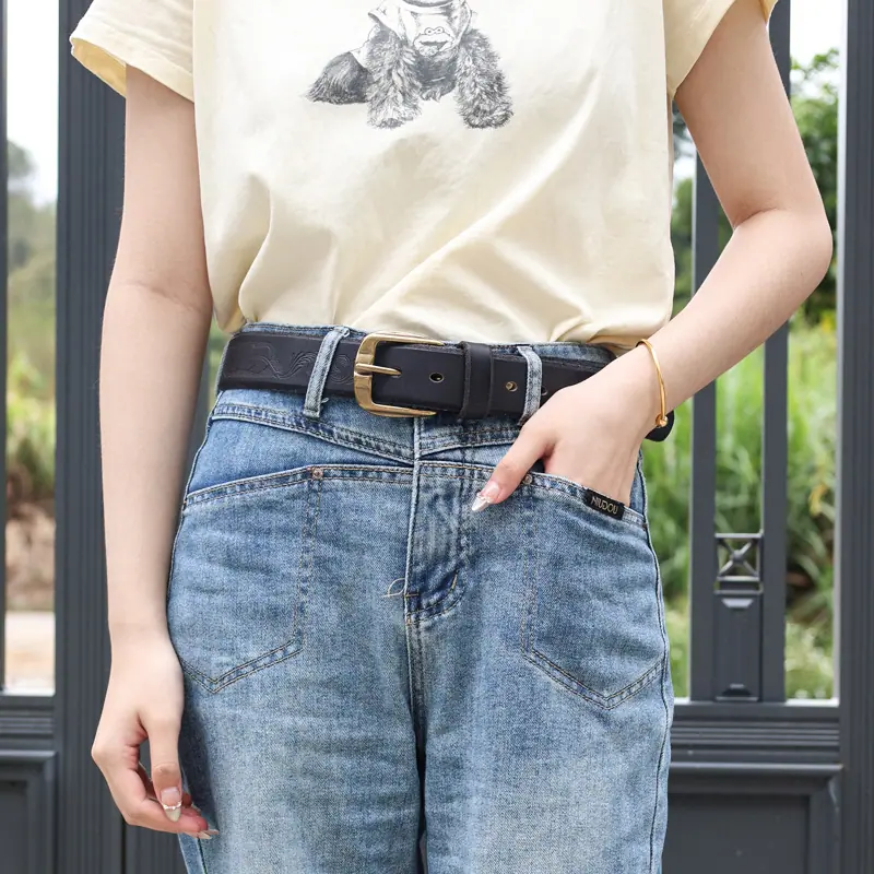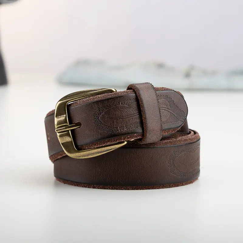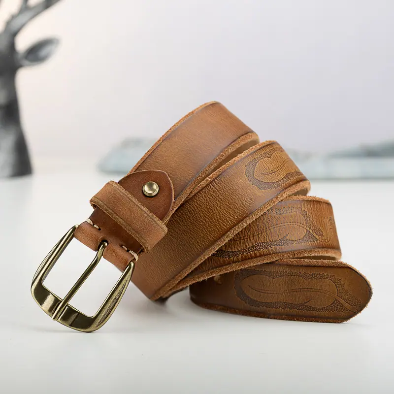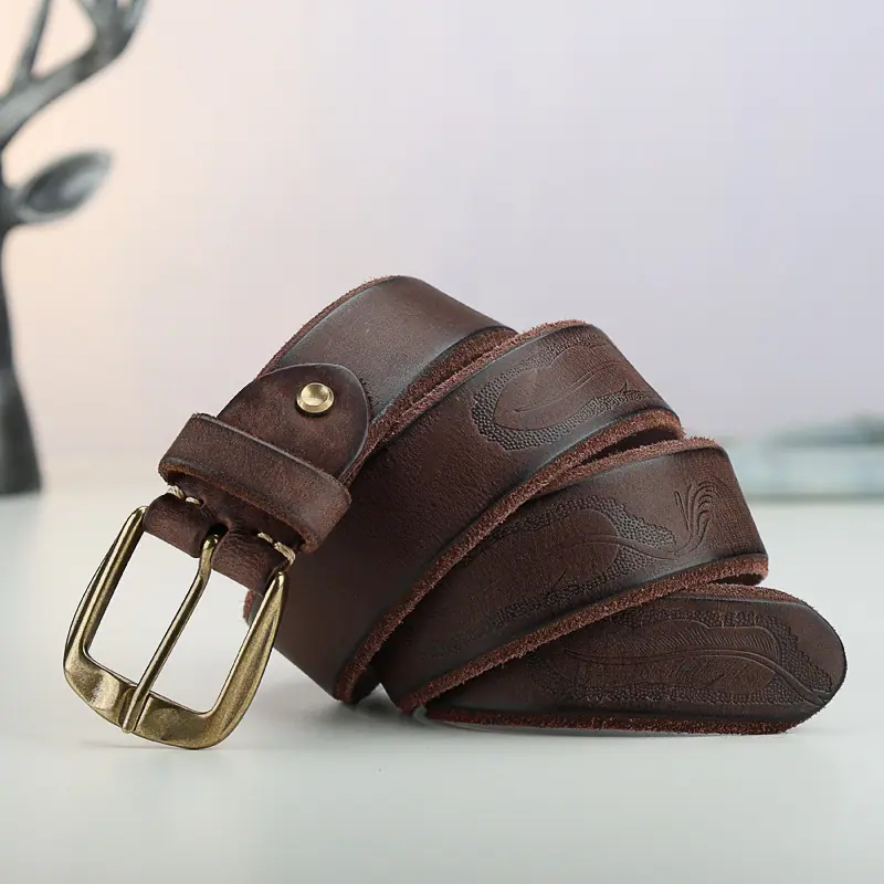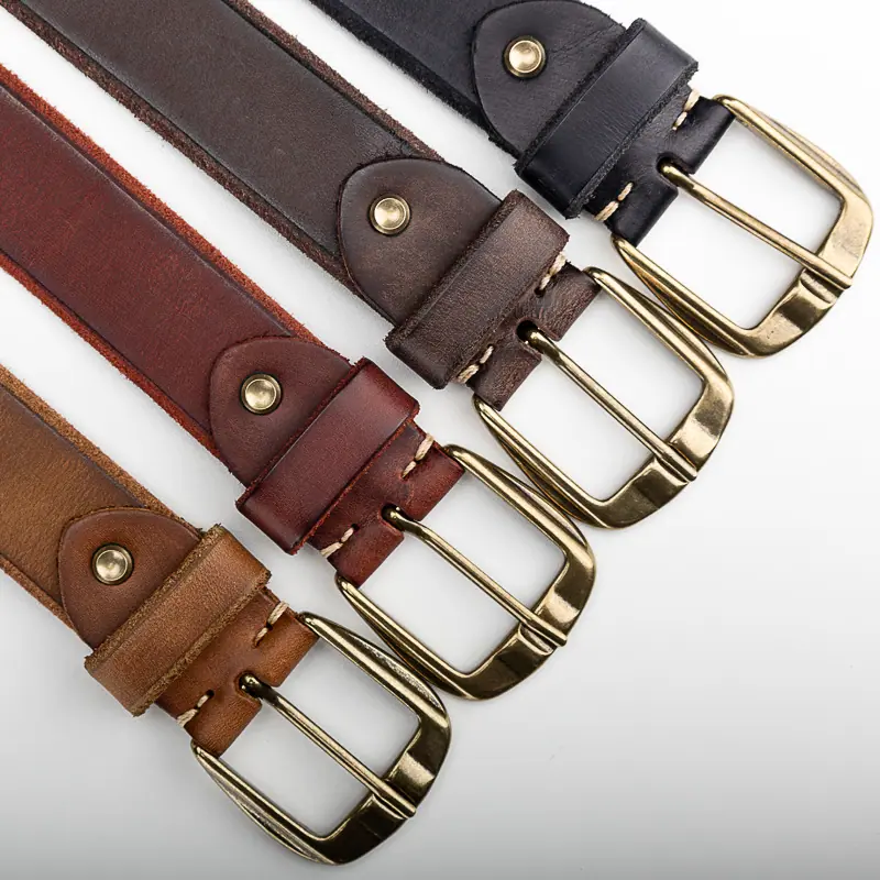 Cinturón de Cuero Genuino para Hombre Vintage Desgastado, Cuero de Vaca de Primera Capa con Hebilla de Latón, Textura Rugosa, Accesorio de Alta Gama, Cinturón de Cintura