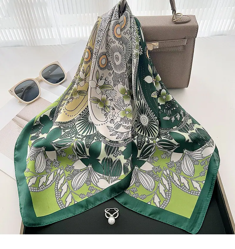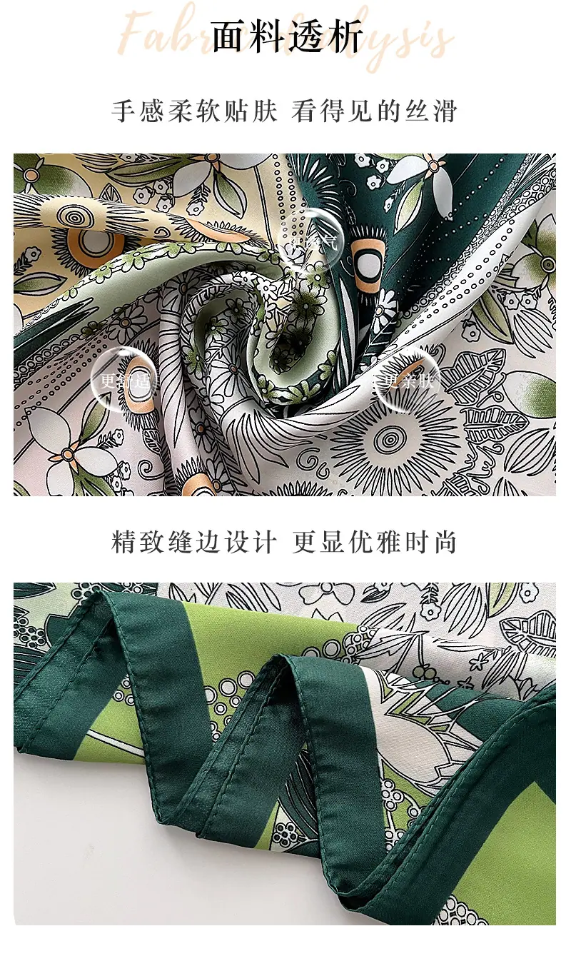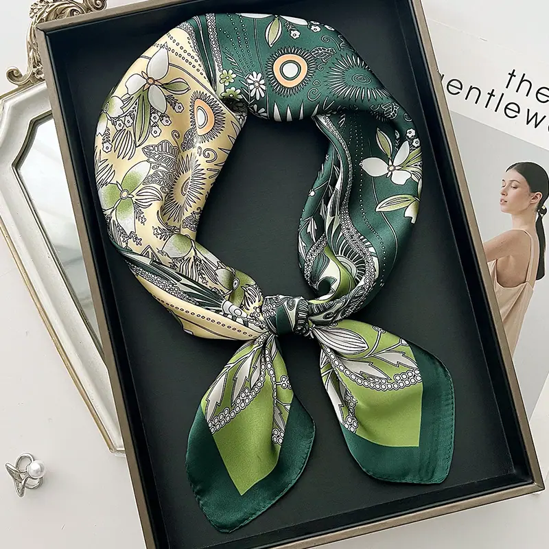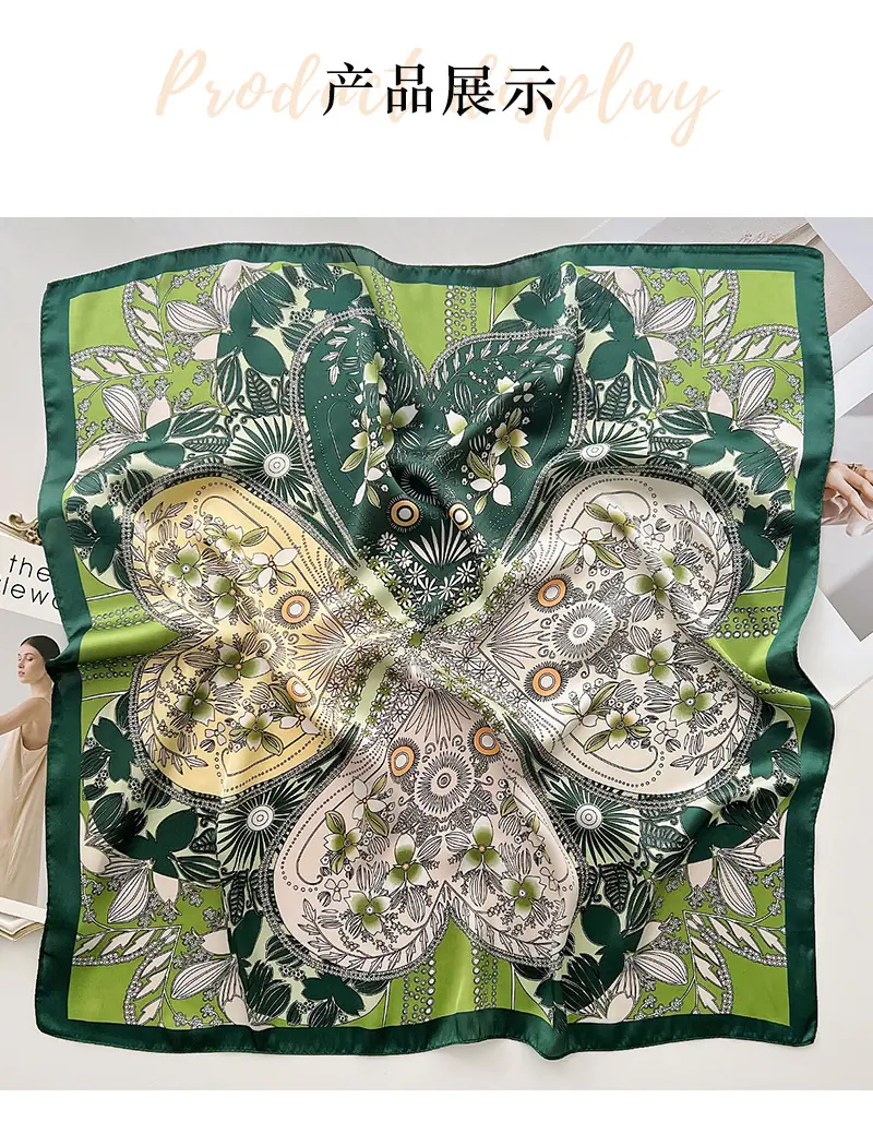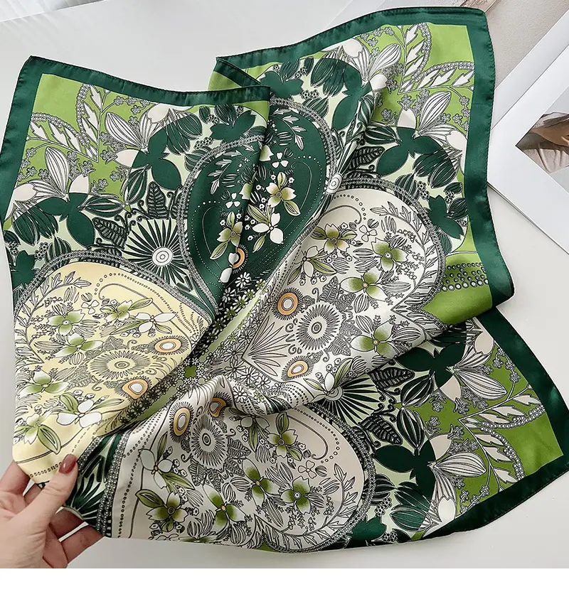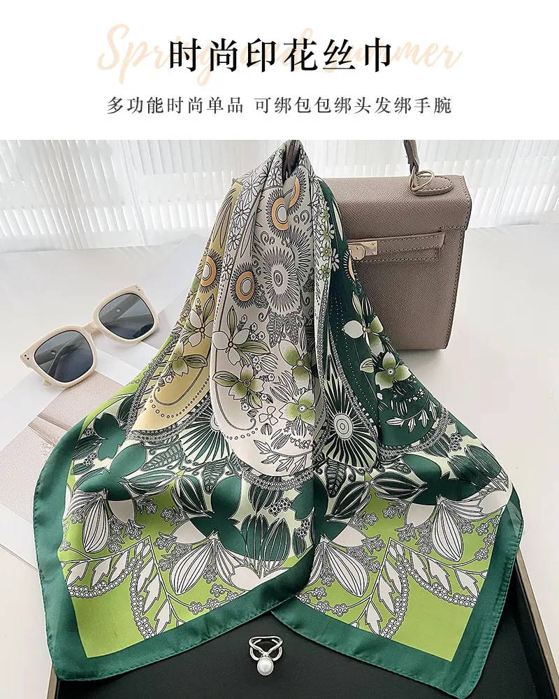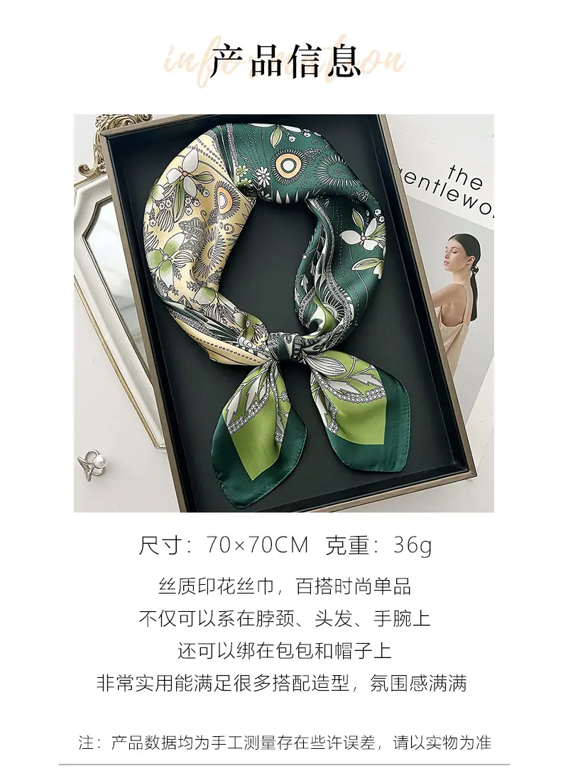 Primavera y Verano Nueva Moda Combinable Verde Pañuelo de Seda Pequeño Pañuelo Cuadrado Pequeño para Mujer Estilo Coreano Estilo Ins Decorativo Pañuelo Delgado Pañuelo