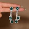 Pendientes de Gota con Borla de Zirconia Cúbica Artificial Diamante Esmeralda Manchado Pendientes Estilo Palacio Pendientes Franceses de Alta Gama para Mujer