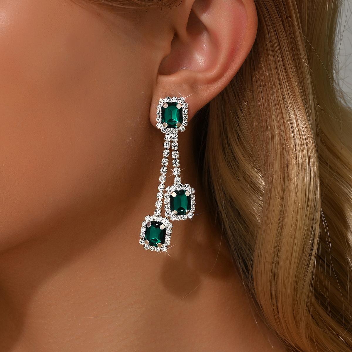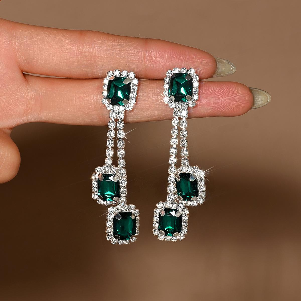 Compra Pendientes de Gota con Borla de Zirconia Cúbica Artificial Diamante Esmeralda Manchado Pendientes Estilo Palacio Pendientes Franceses de Alta Gama para Mujer al por mayor en Joom.pro
