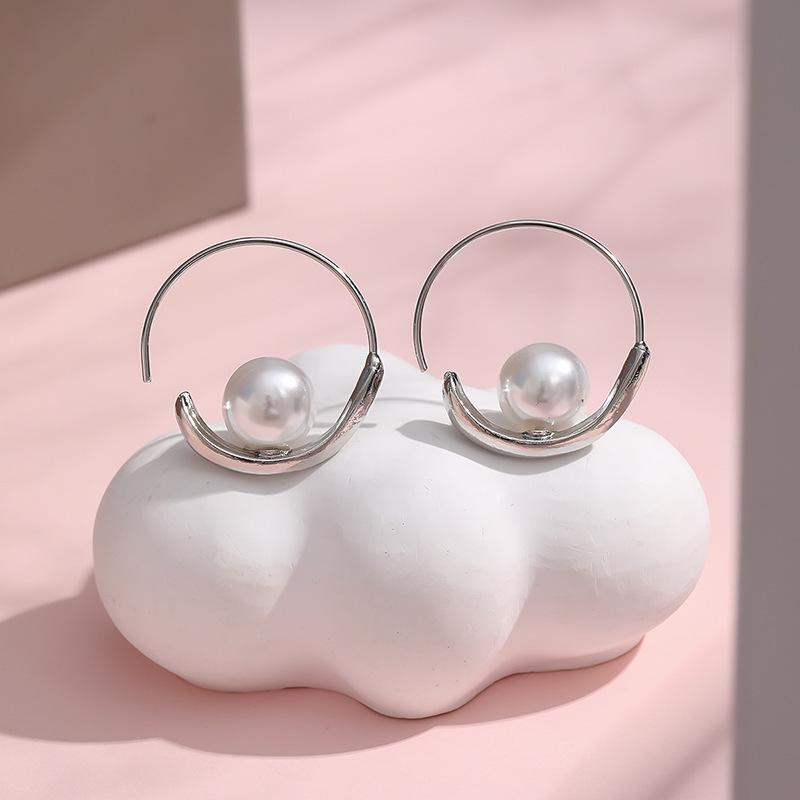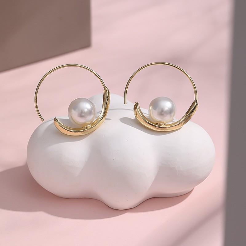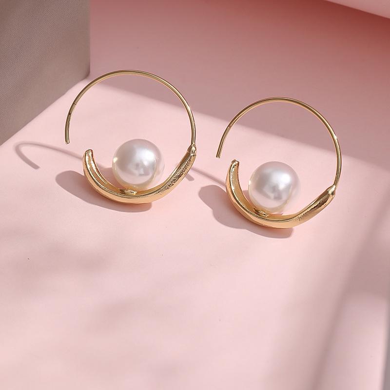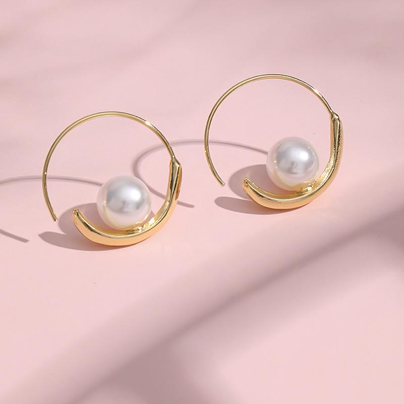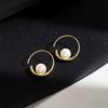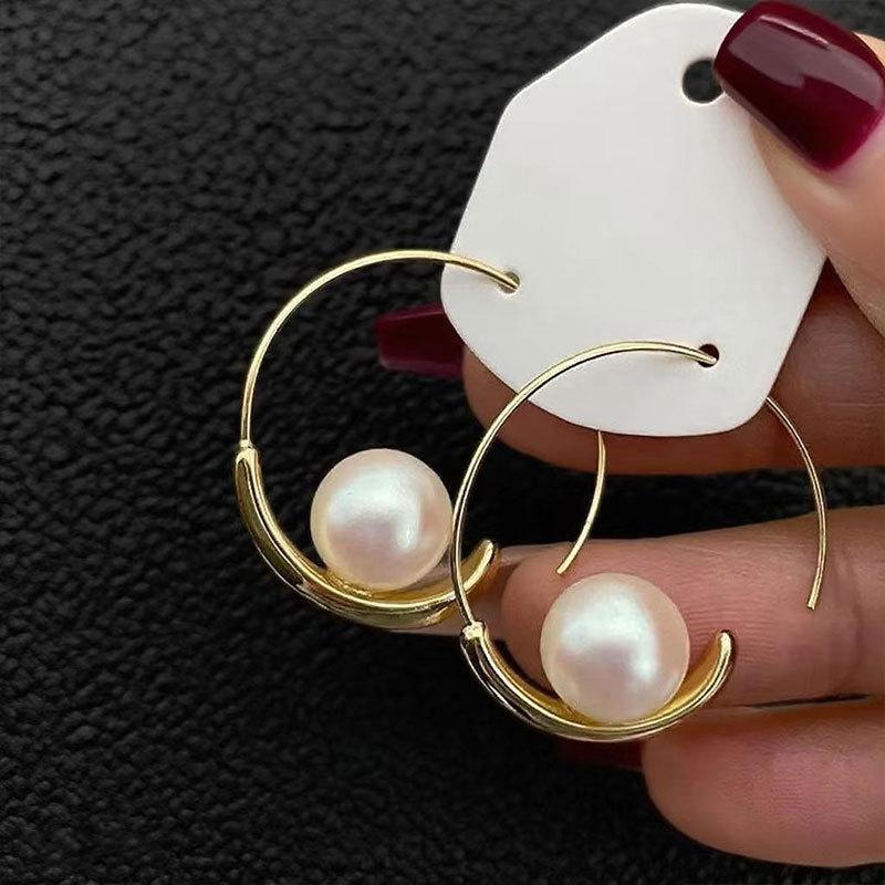 Aretes de Círculo Dorado con Perlas de Diseño Nicho Simples Elegantes Temperamento Sentido de Alta Gama Aros para la Oreja Lujo Ligero Versátiles Aretes Joyería Fuente al por Mayor