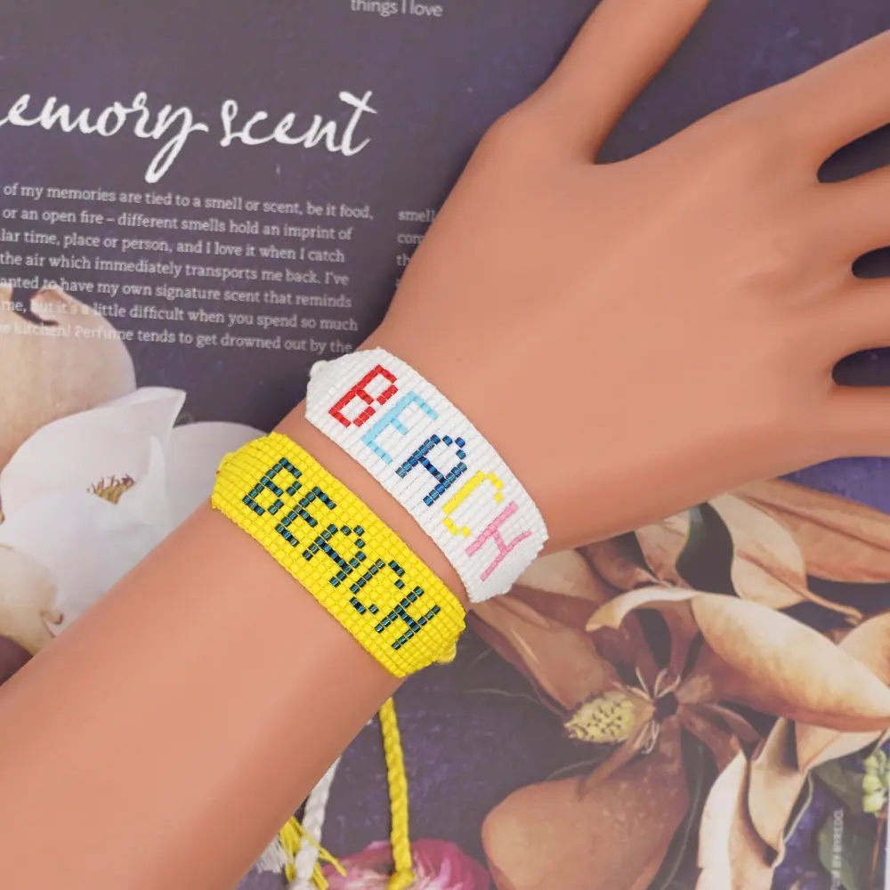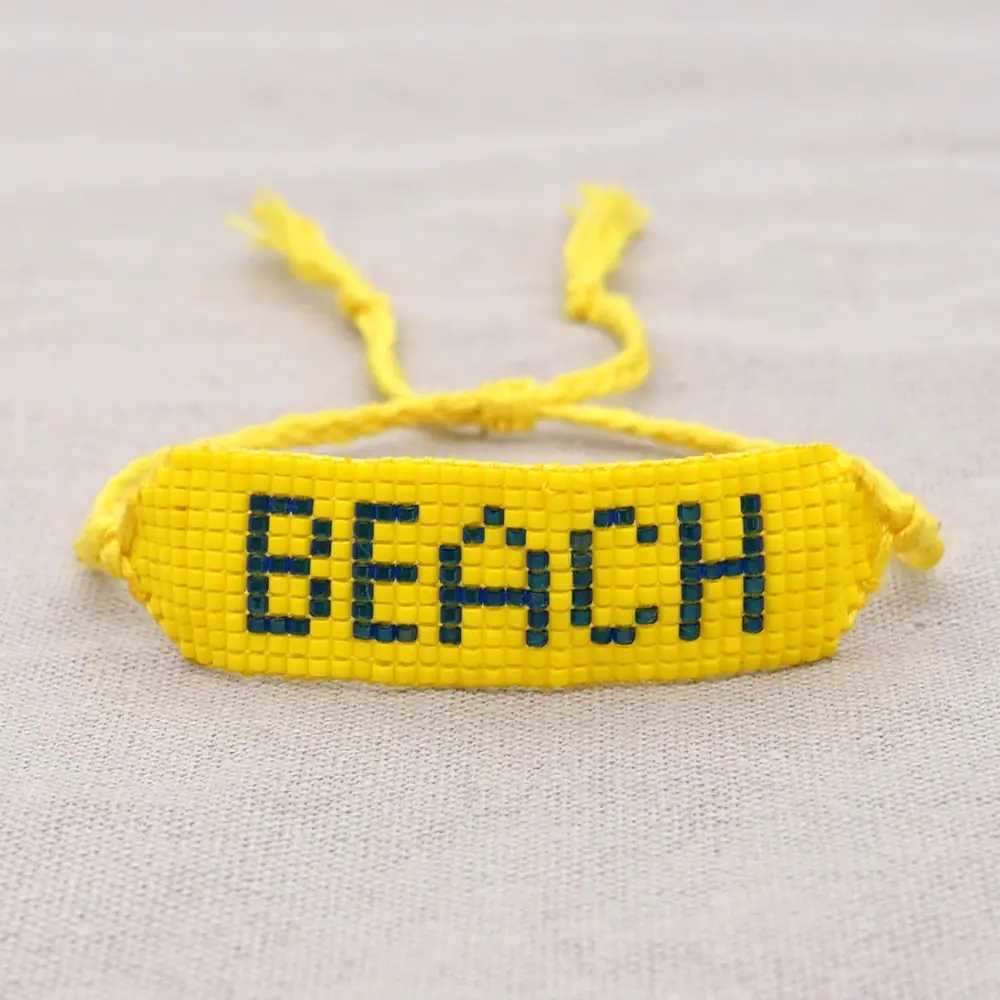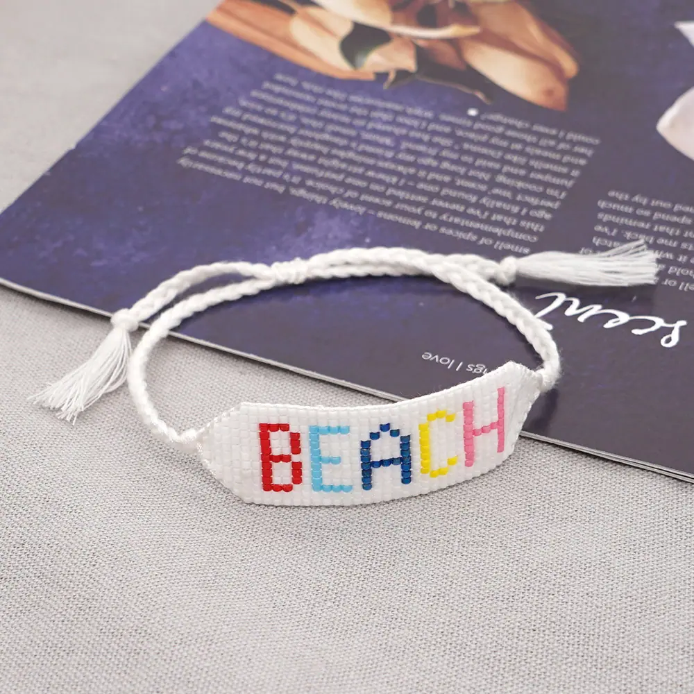 Dulce Pulsera Miyuki de Carta de Amor Colorida Moda Elegante Corazón Tejida a Mano Pulsera de Cuentas de Arroz de Vidrio para Mujer