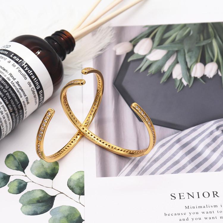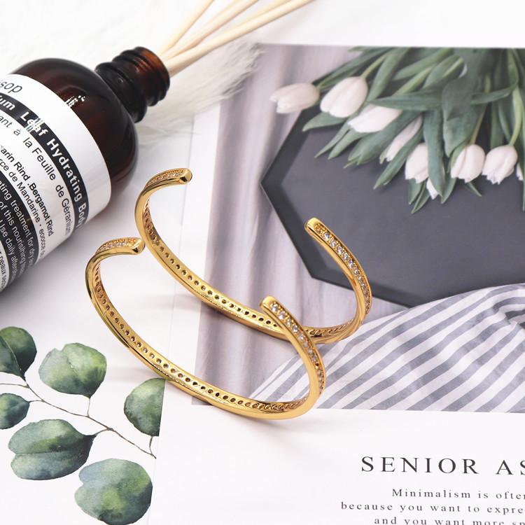 Pulsera Minimalista de Lujo Ins-Style Abierta en Forma de C con Diamantes Completos, Cobre Chapado en Oro de 18K Circonia Joyería de Moda, Mismo Estilo que en Xiaohongshu