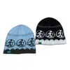 Otoño e Invierno Nicho Vórtice Patineta Hombrecito Letra Gorro Tejido Hombres y Mujeres Cálido Color Block Gorro Tipo Beanie Gorro Pulóver Venta al por Mayor