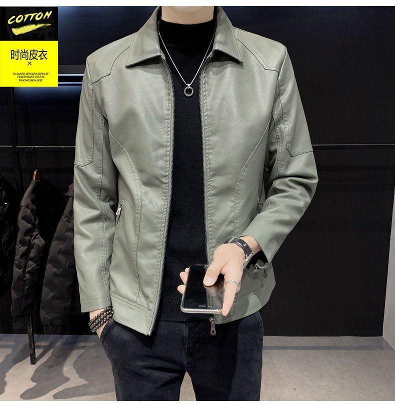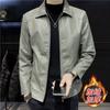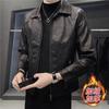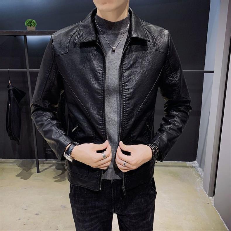 Nueva chaqueta de cuero solapa engrosada motocicleta estilo coreano para hombre corte ajustado chaqueta abrigo más terciopelo casual cuero genuino hombres guapos