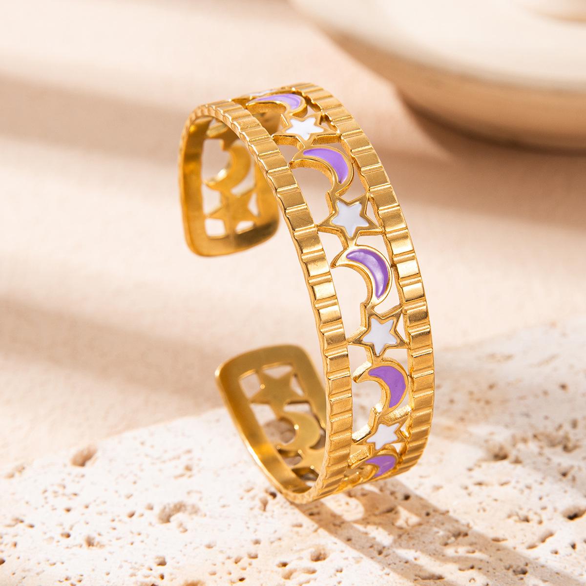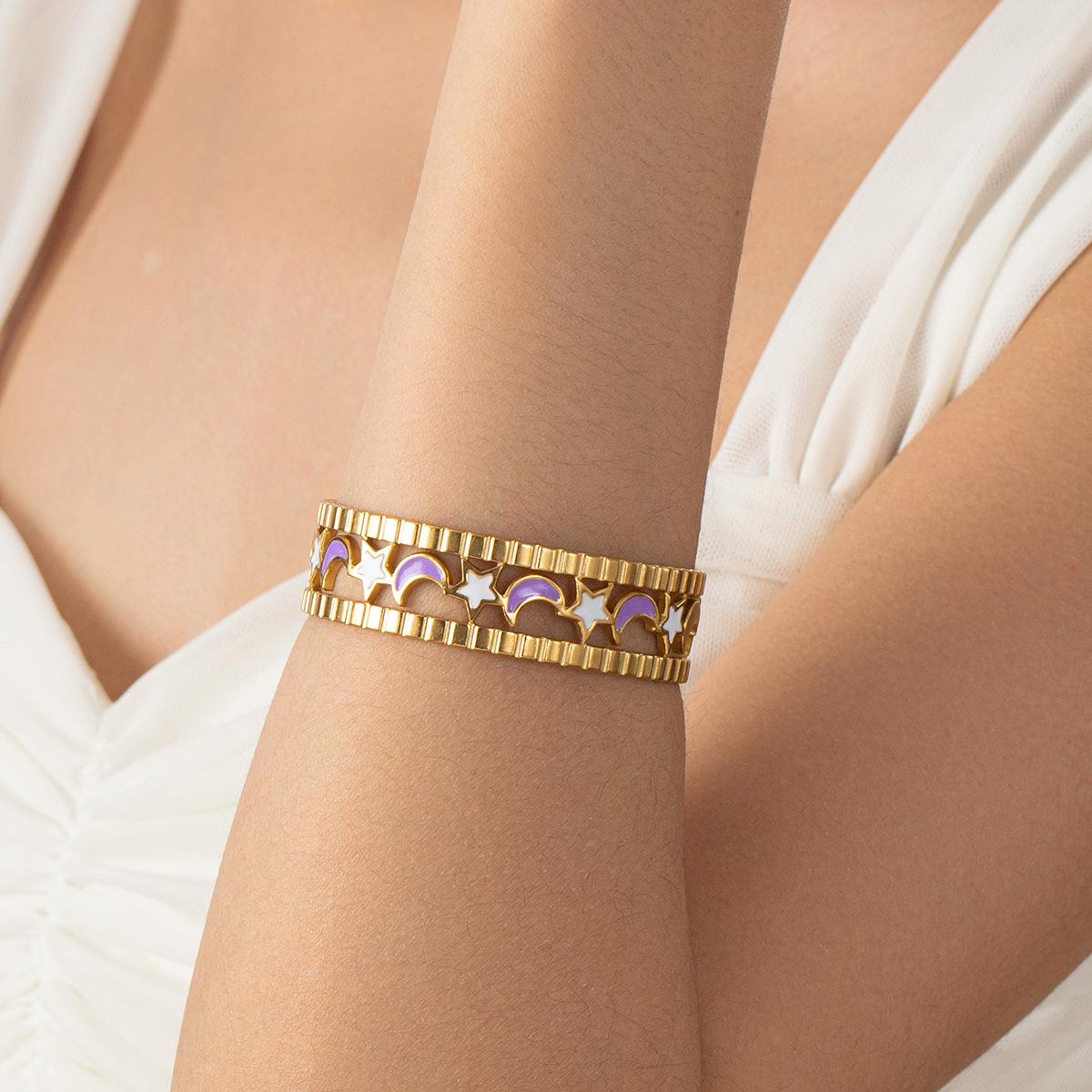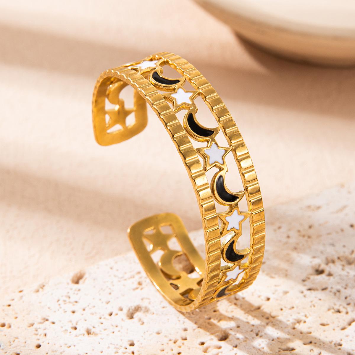 Nueva Pulsera de Acero Inoxidable Acero Titanio 18K Venus y Luna Moda Pulsera para Mujer Transfronteriza Europea y Americana Impermeable Calada Joyería de Mano