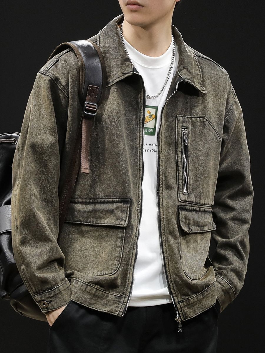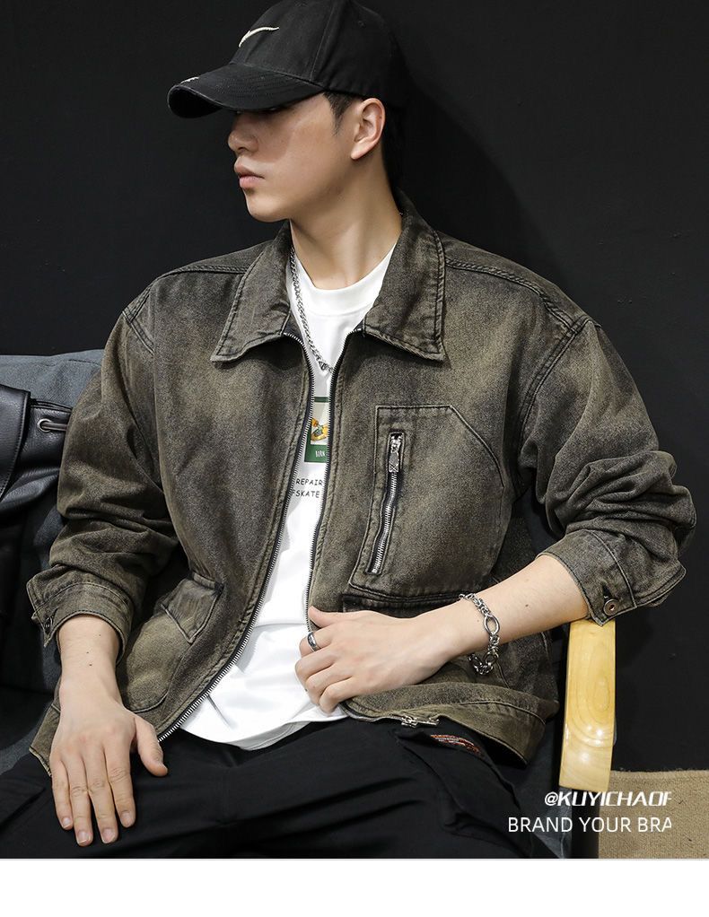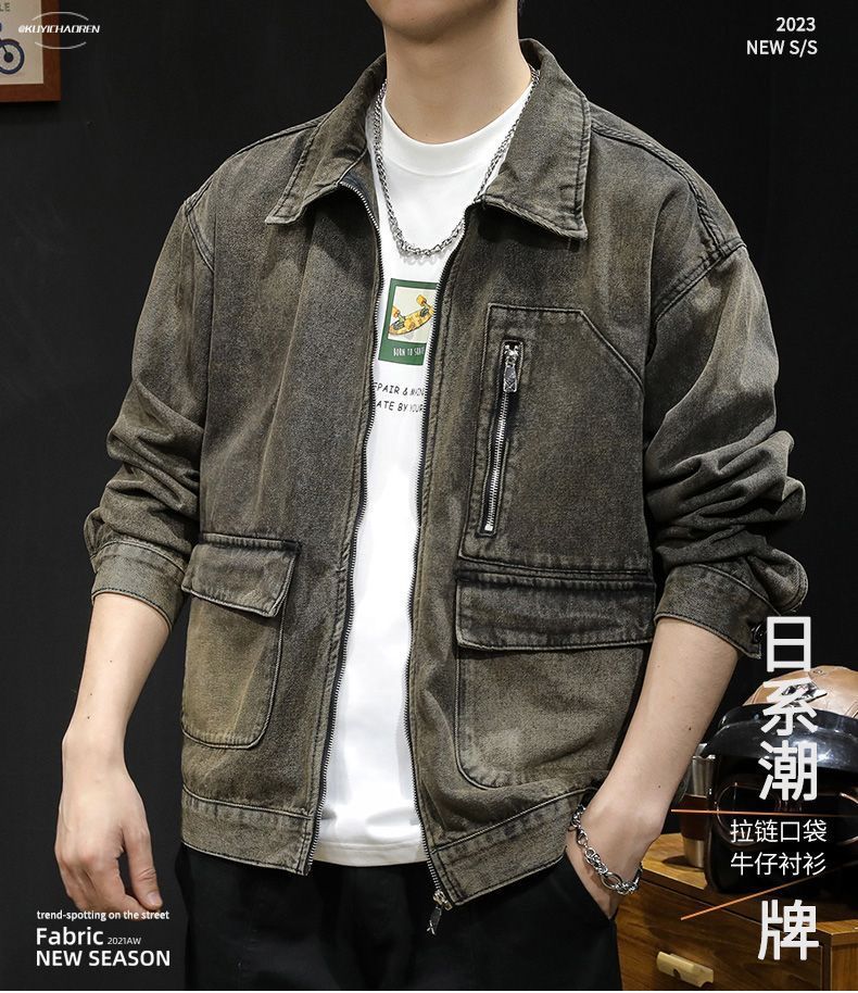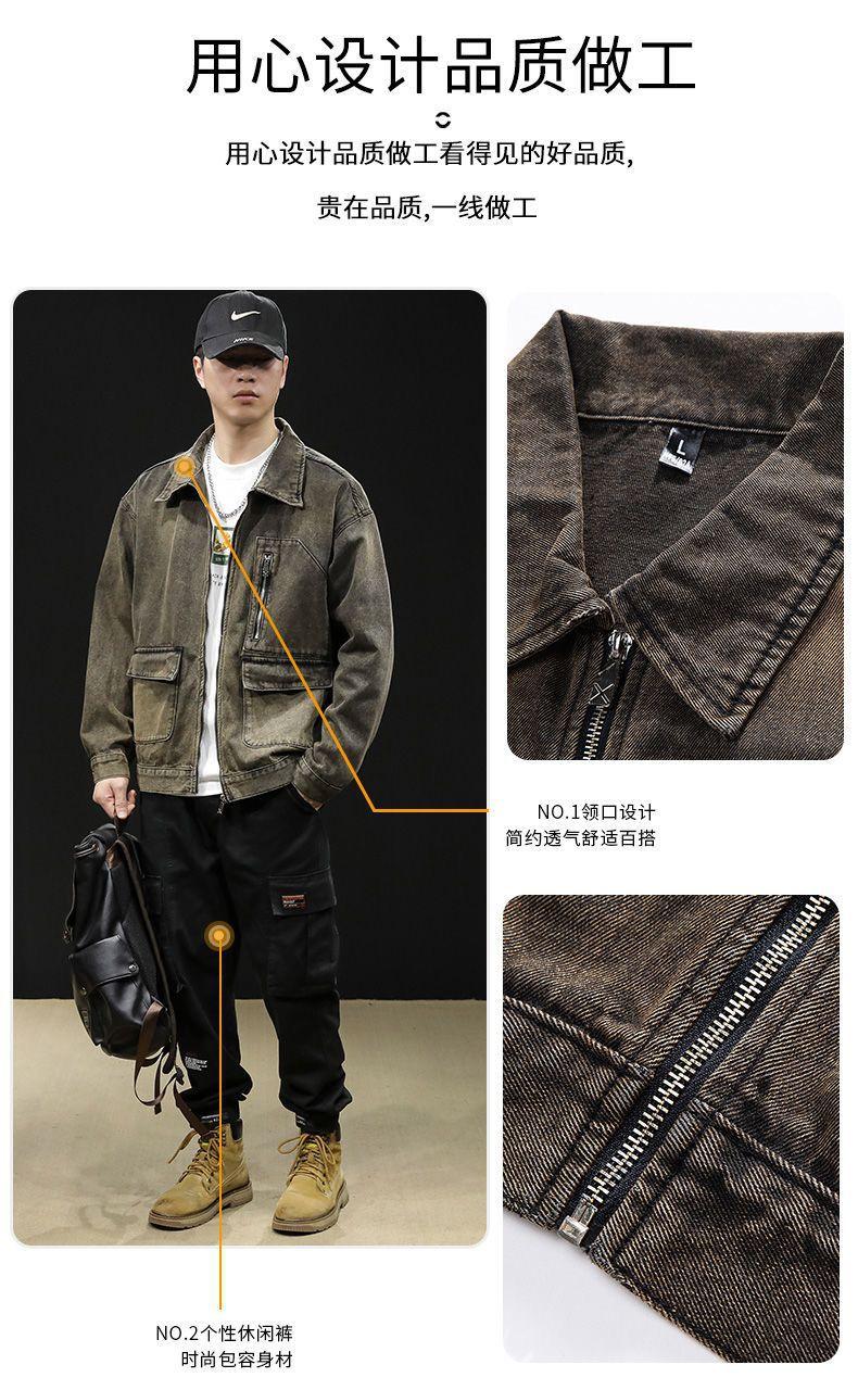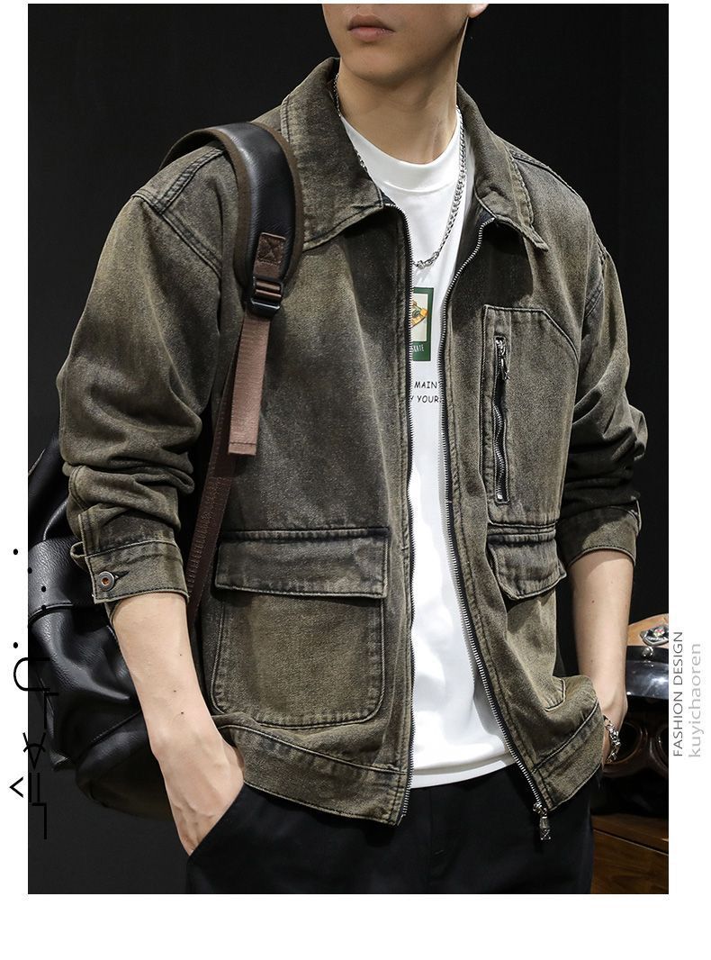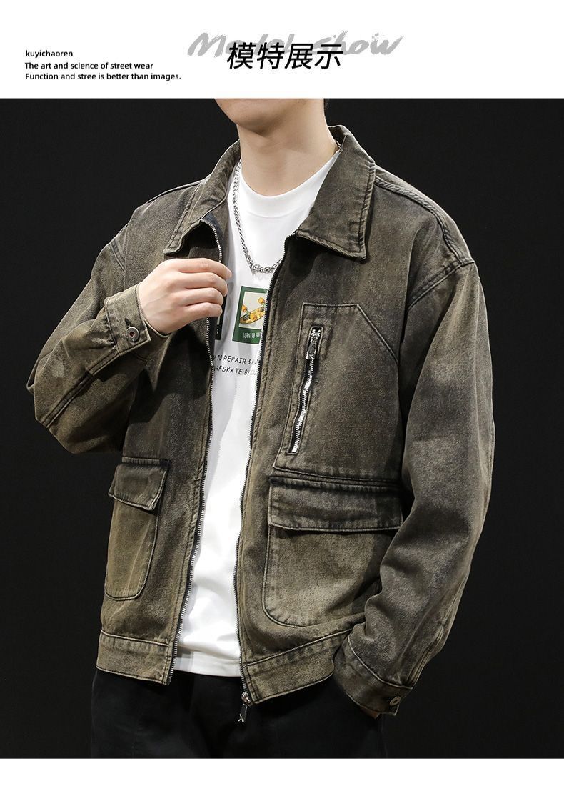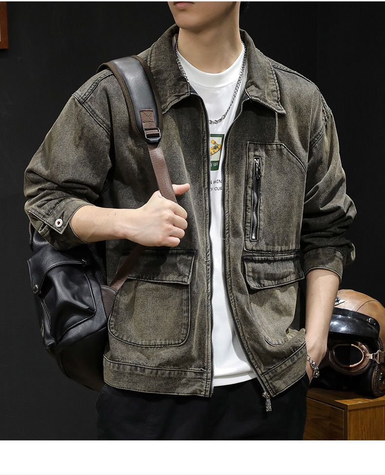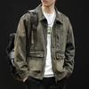 Chamarra de mezclilla retro británica para hombre, primavera y otoño, nueva tendencia, holgada, con múltiples bolsillos, ropa de calle, ropa de trabajo