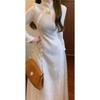 Vestido Retro Estilo Chino Nuevo Otoño e Invierno Nuevo Estilo Base Sensación Temperamento Cintura Adelgazante Cheongsam Mejorado Vestido Mujer