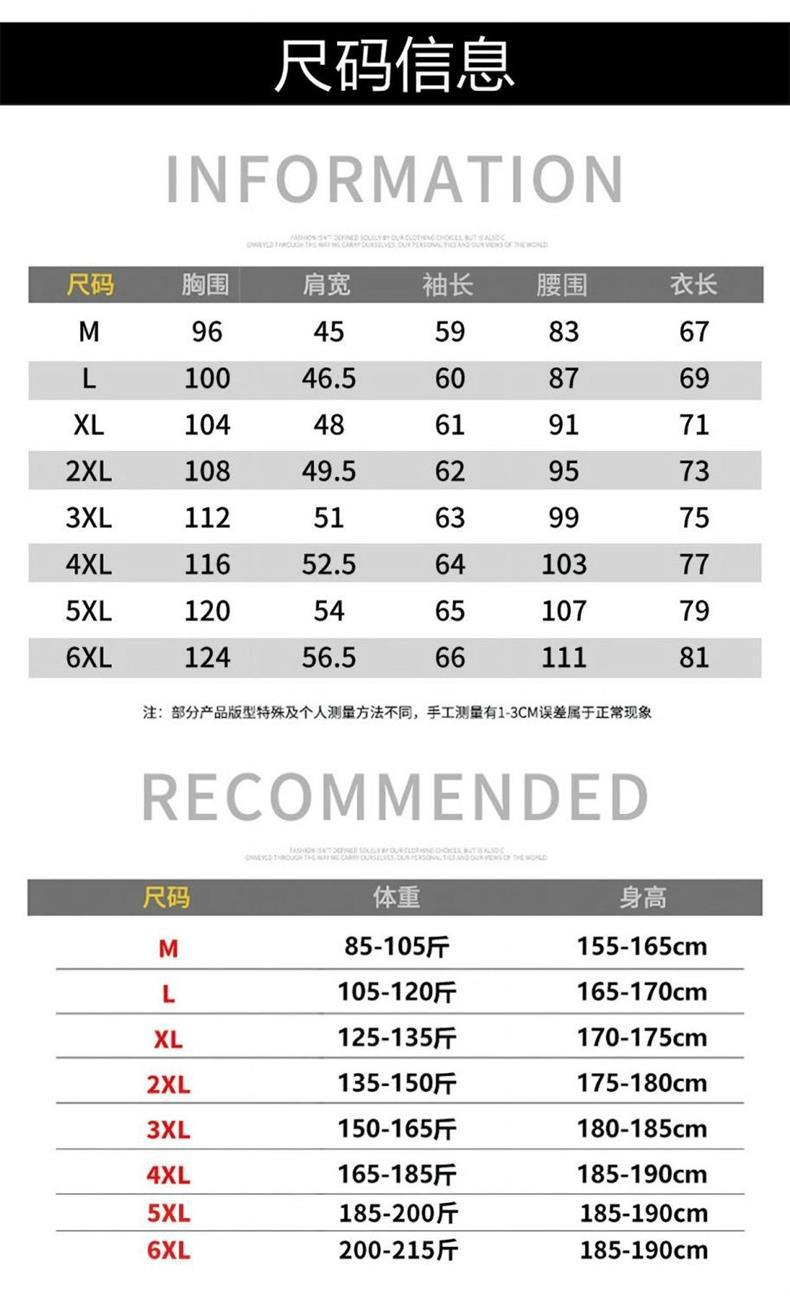 M recommended 155-165cm, L suggests 165-170cm, XL recommended 170-175cm, 2XL recommended for 175-180cm, 3XL re...
