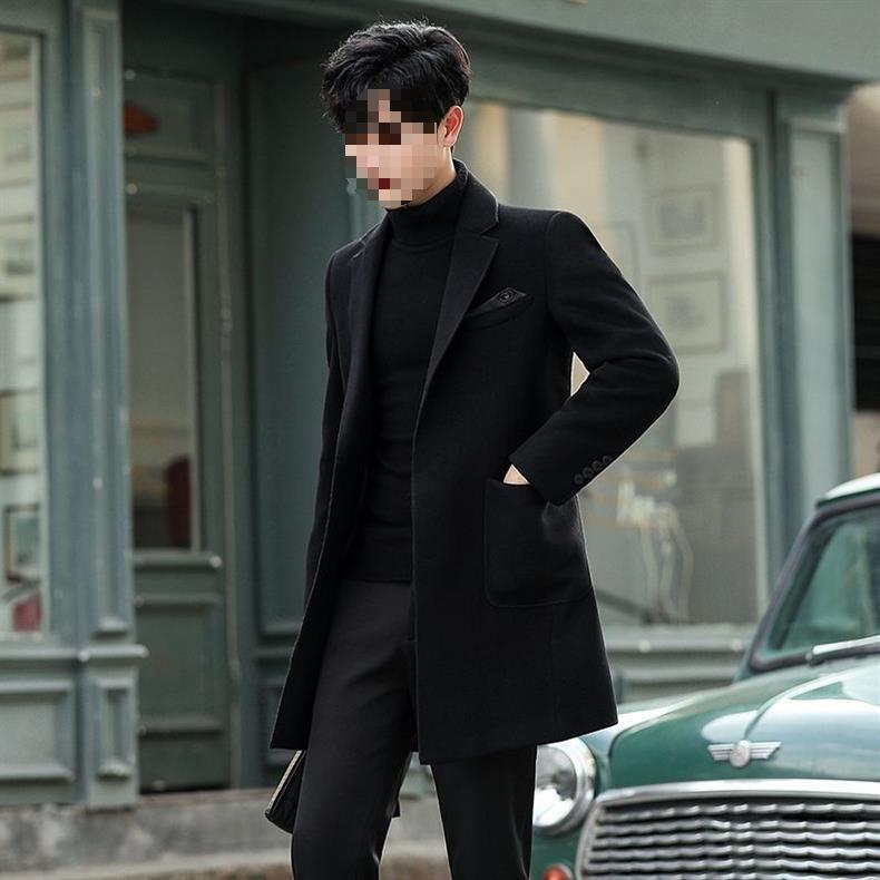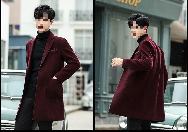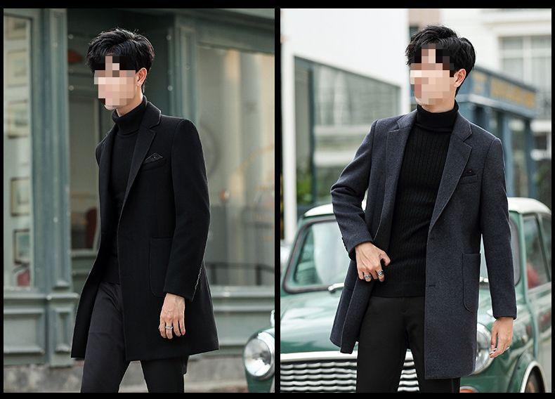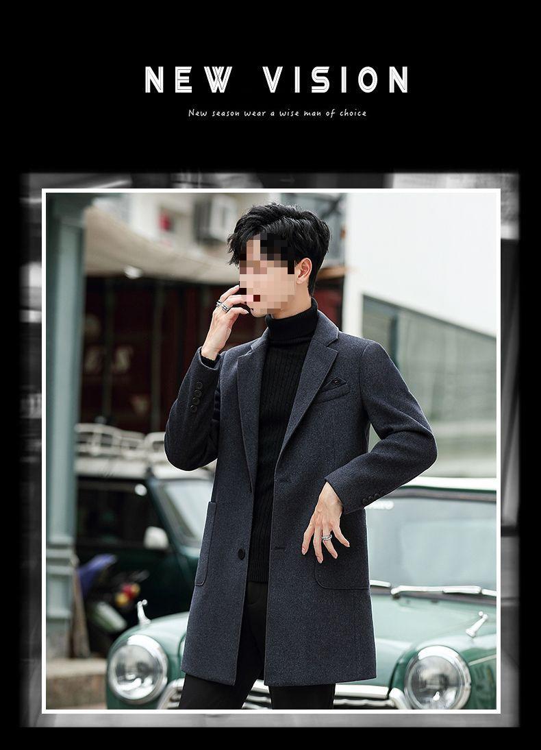 Abrigo de Lana Otoño Invierno para Hombre Tendencia Engrosado Nuevo Ajustado Sobretodo Lana Abrigo Trench de Largo Medio Lana Estilo Coreano