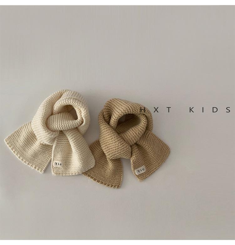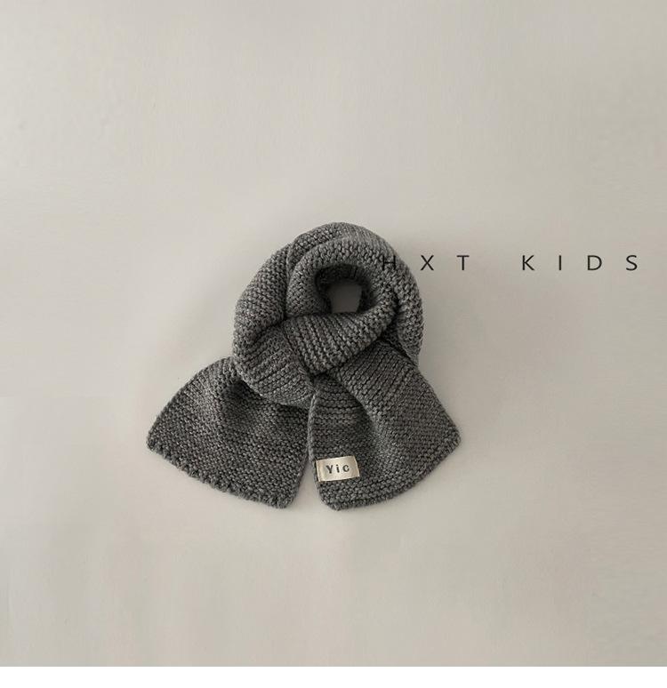 Bufanda para niños Otoño e Invierno Moda Color Sólido Etiqueta Pequeña Moda Tejido Calentador de Cuello Niño Genial Bebé Salida Cálido Polaina de Cuello Invierno
