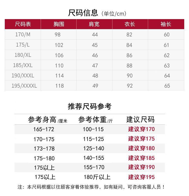 M 170, L 175, XL 180, 2XL 185, 3XL 190, 4XL 195