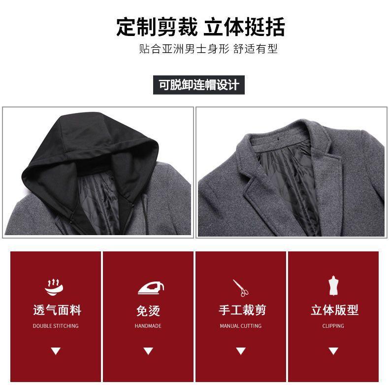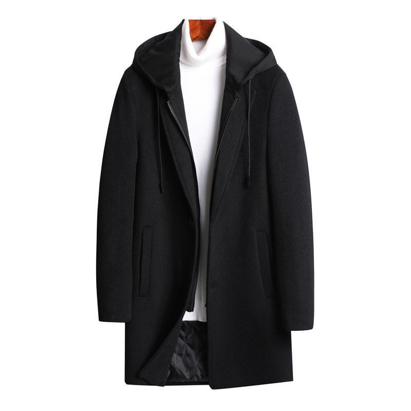 Abrigo de Lana con Capucha para Hombre Joven Nuevo Invierno 2025 Estilo Coreano Corte Slim Gabardina para Hombre