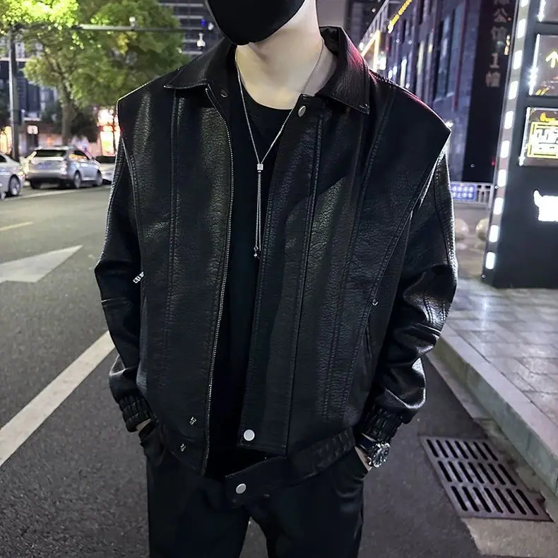 Chaqueta estilo rebelde diseño de chaqueta de cuero de moda ropa exterior estilo coreano chaqueta de alta gama tacto cuero pu casual para hombre temporada primavera y otoño motocicleta
