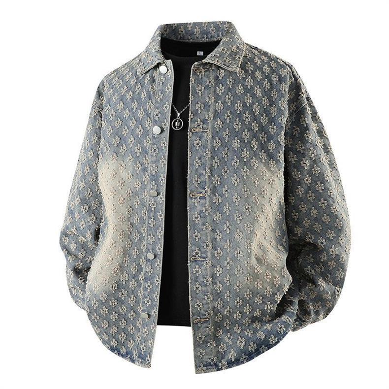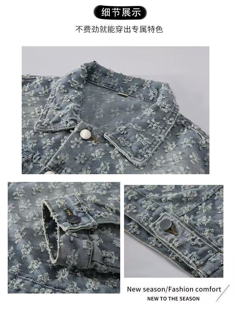Ropa exterior de calle alta Primavera y Otoño Chaqueta holgada dopamina Jacquard Pareja Americana Retro Casual Chulo Guapo Denim Hombres y Mujeres
