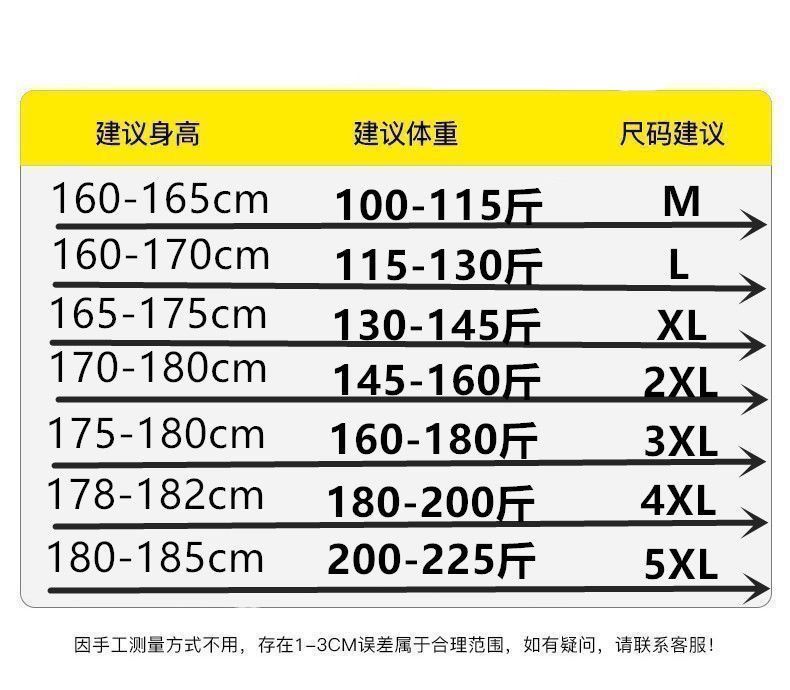 S80-99 jin, M99-119斤, L120-135 catties, XL135-150 catties, 2XL151-170斤, 3XL171-185 jin, 4XL186-200斤
