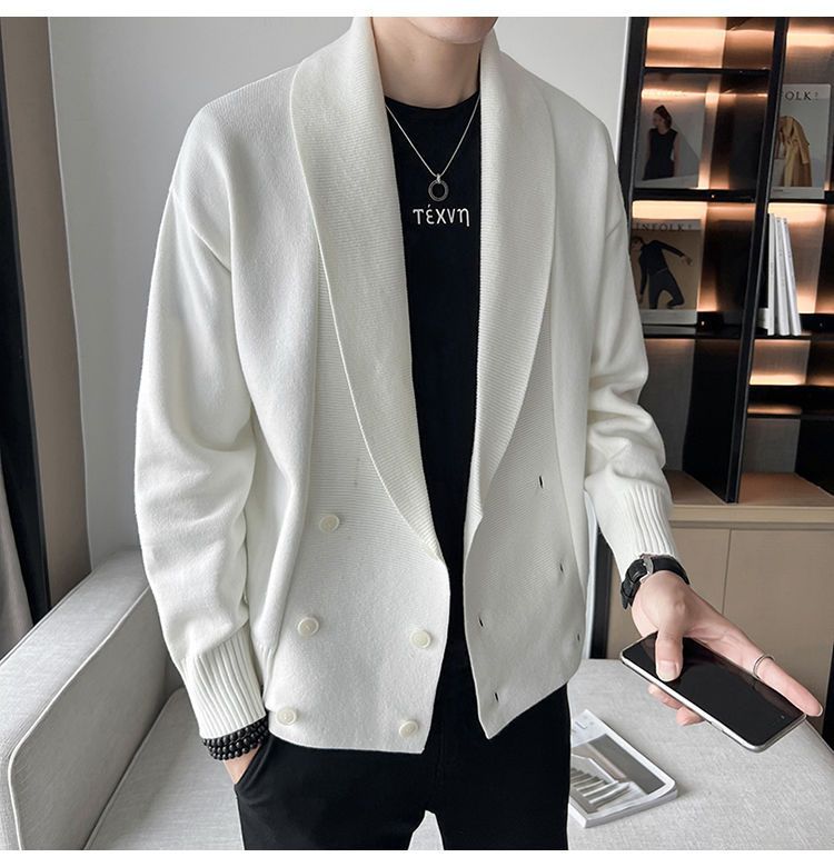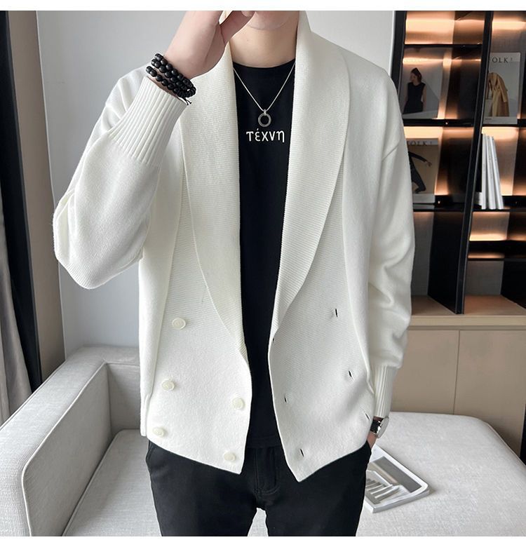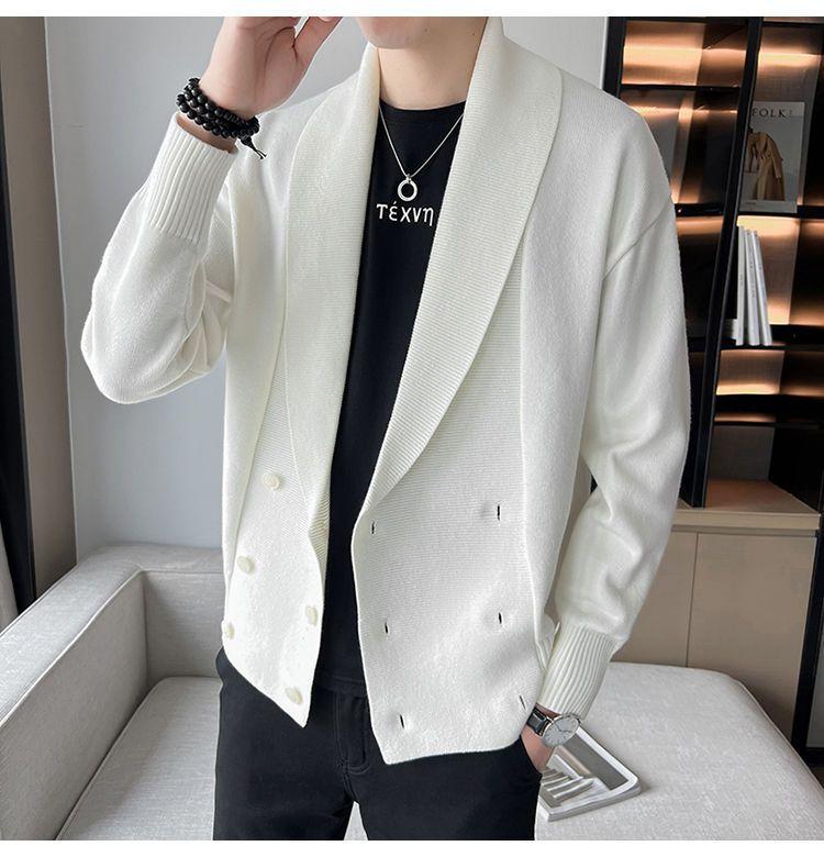 Cárdigan moderno 2022v estilo coreano de alta gama nueva chaqueta de primavera y otoño para hombre suéter cuello vuelto punto tendencia