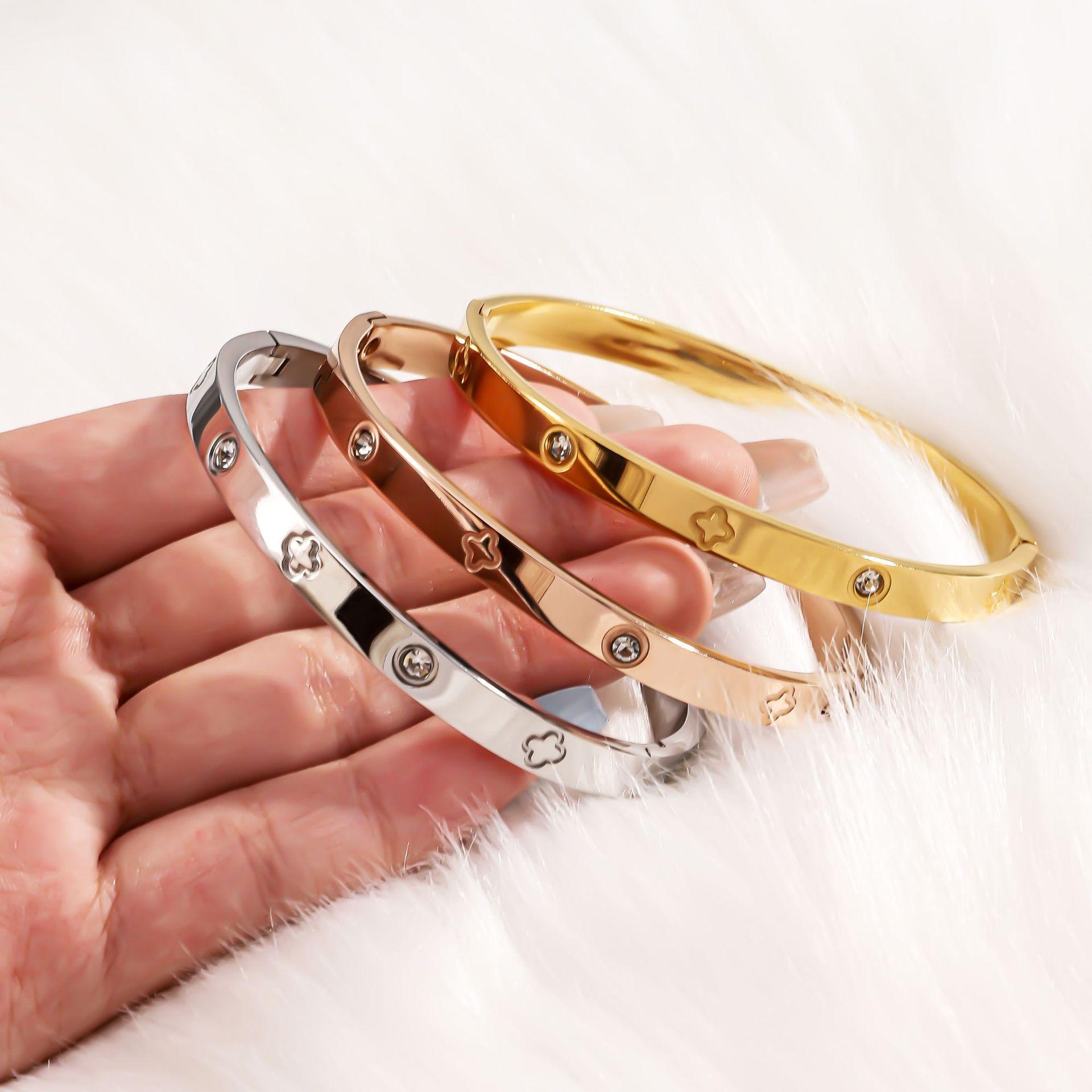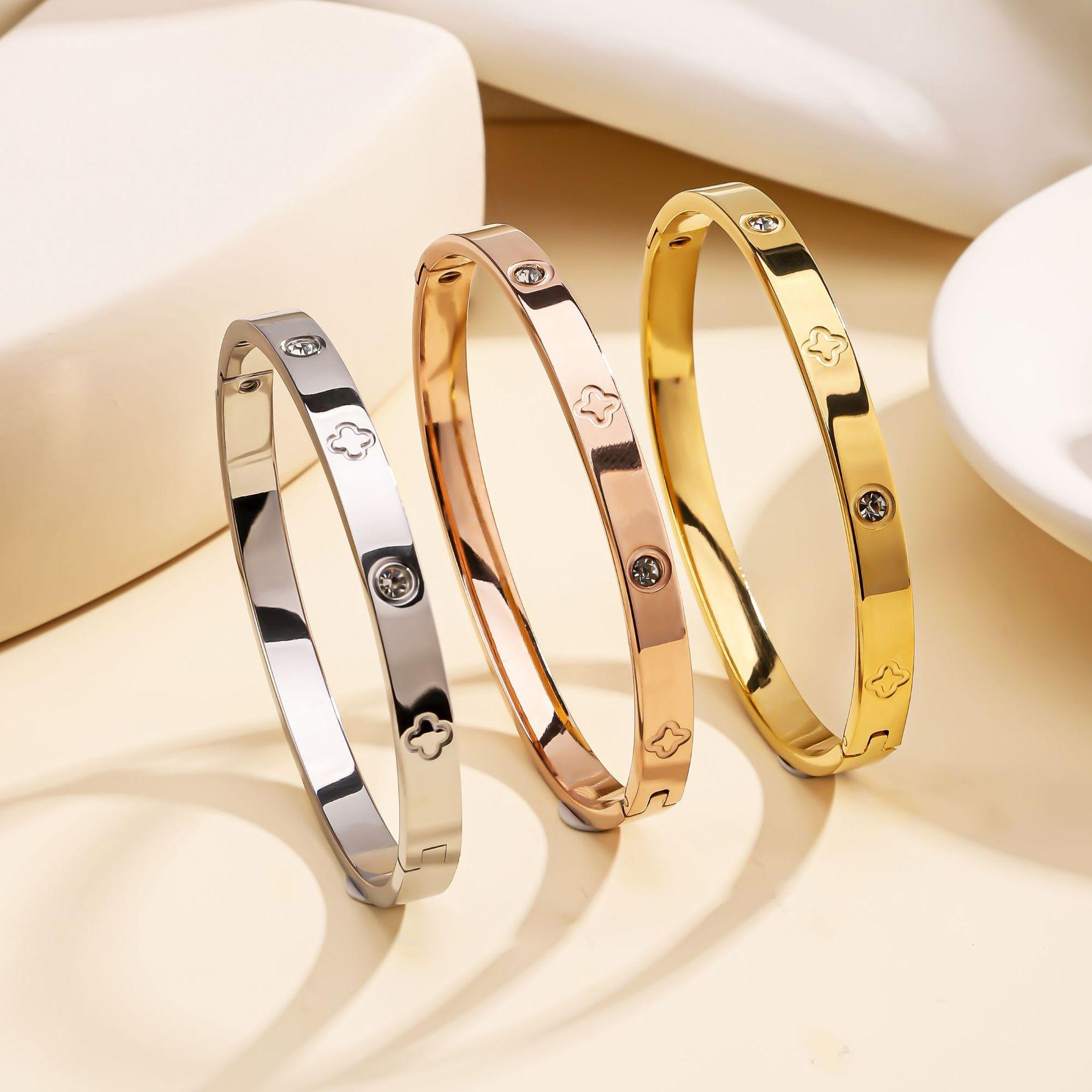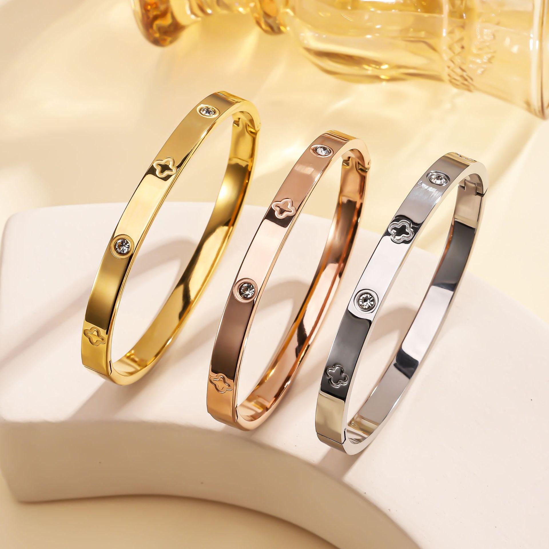 Compra Pulsera de Acero de Titanio Transfronteriza de Moda Trébol de Cuatro Hojas Sentido Avanzado Europeo y Americano Celebridad de Internet Lujo Ligero Broche Combinable Pulsera de Acero Inoxidable para Mujer al por mayor en Joom.pro