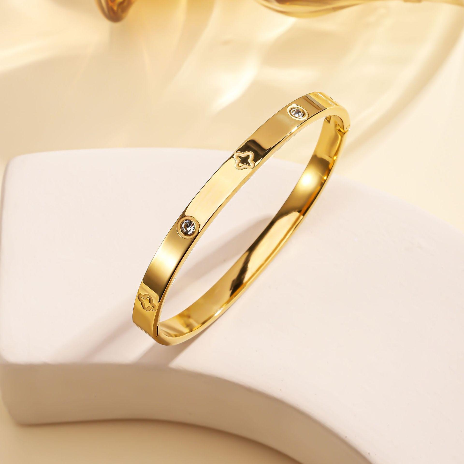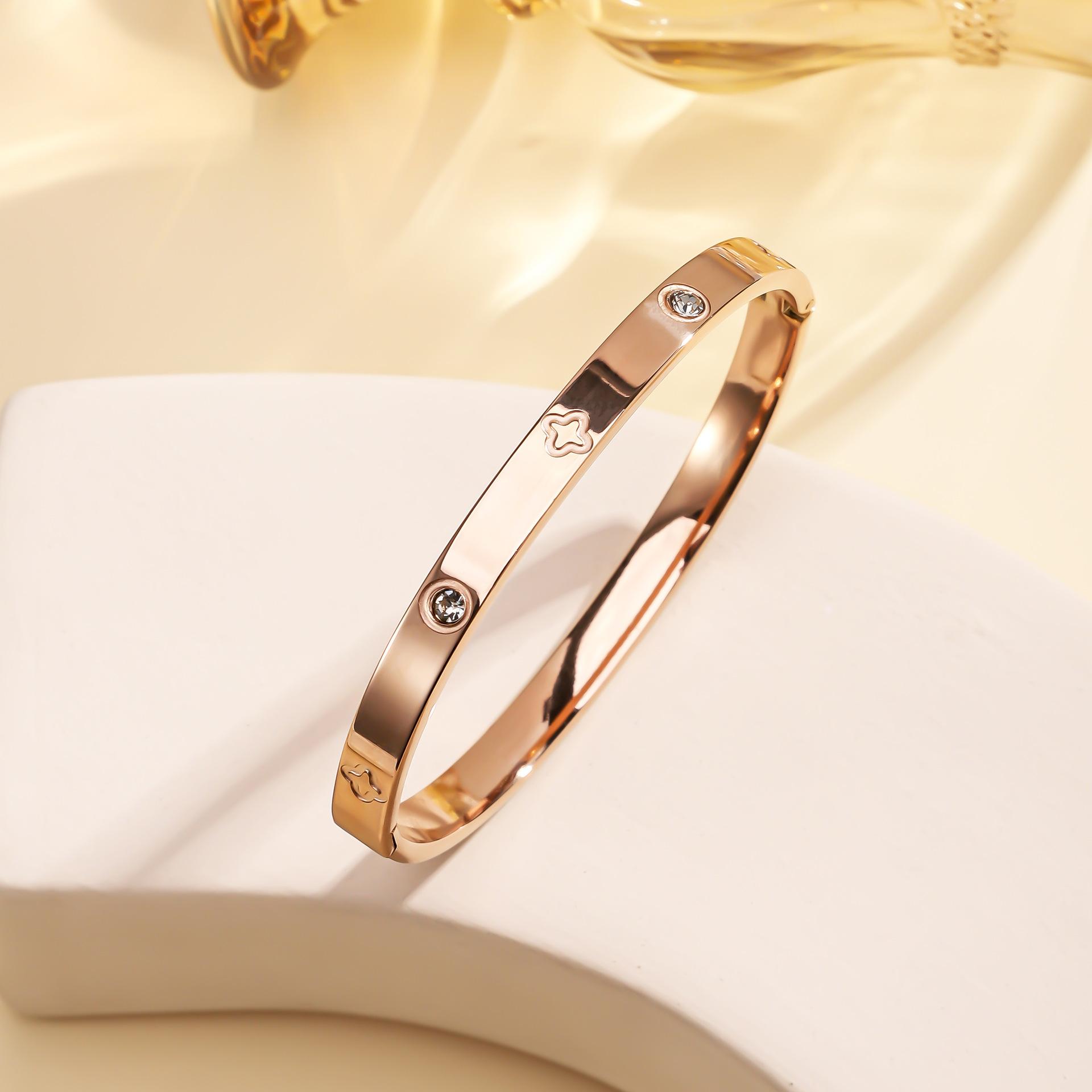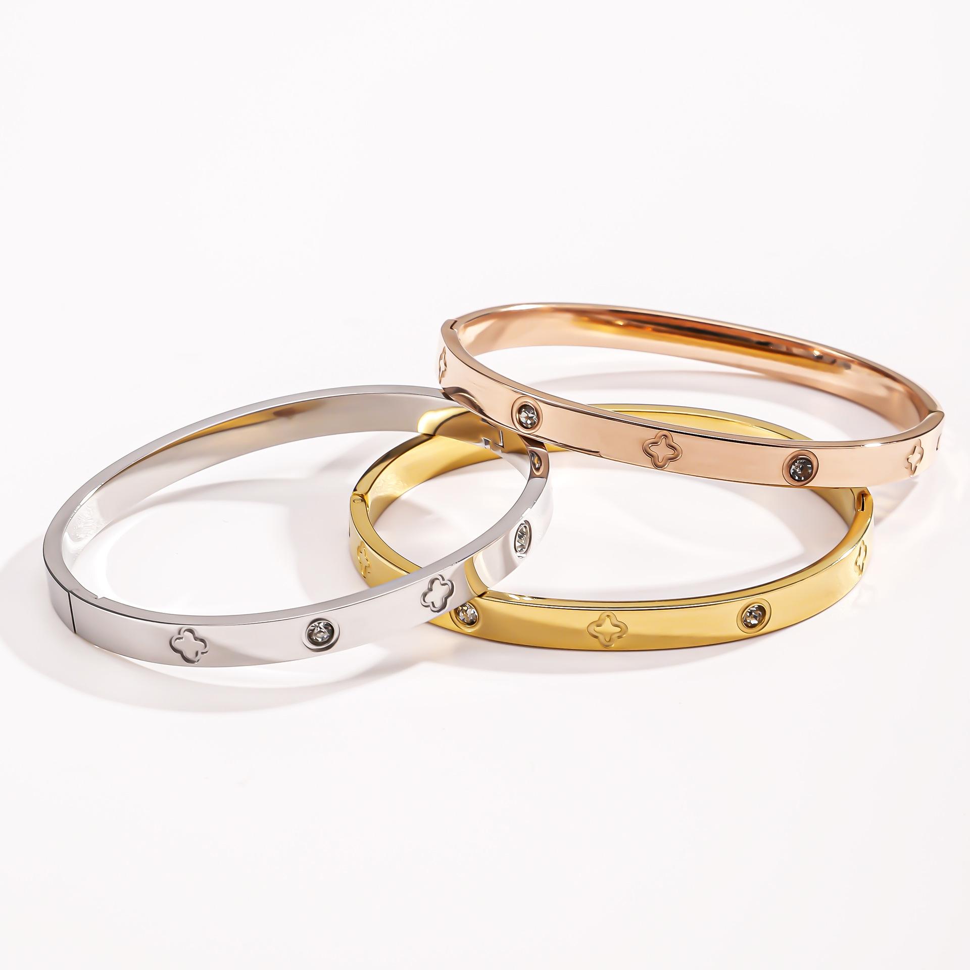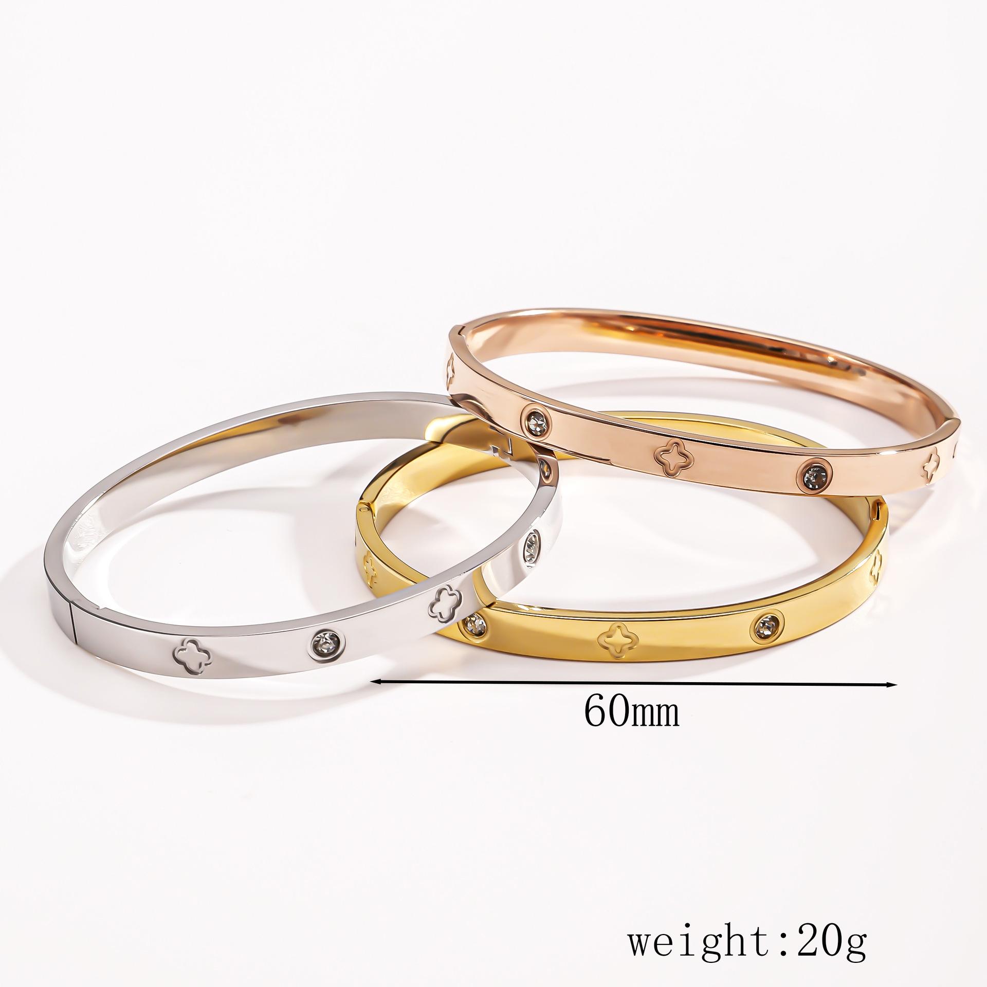 Compra Pulsera de Acero de Titanio Transfronteriza de Moda Trébol de Cuatro Hojas Sentido Avanzado Europeo y Americano Celebridad de Internet Lujo Ligero Broche Combinable Pulsera de Acero Inoxidable para Mujer al por mayor en Joom.pro