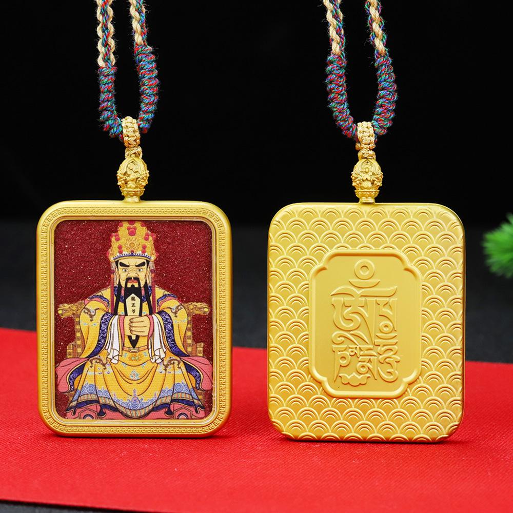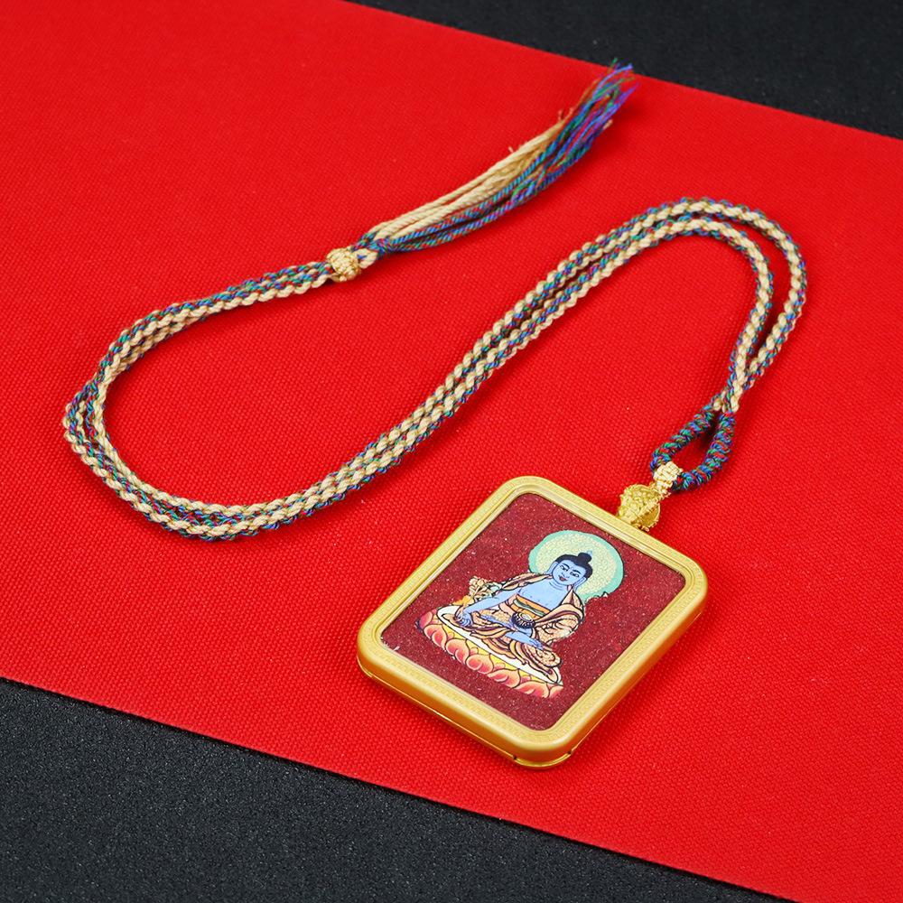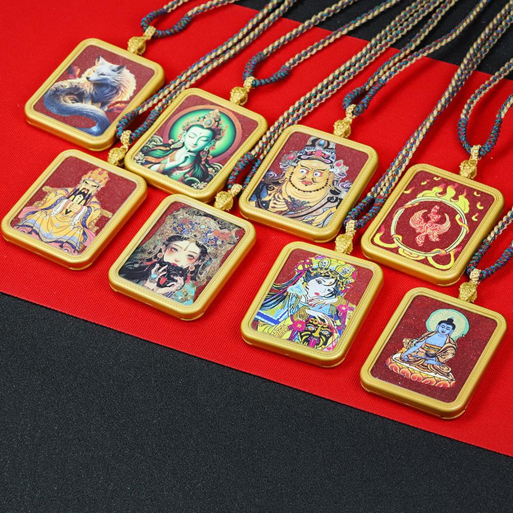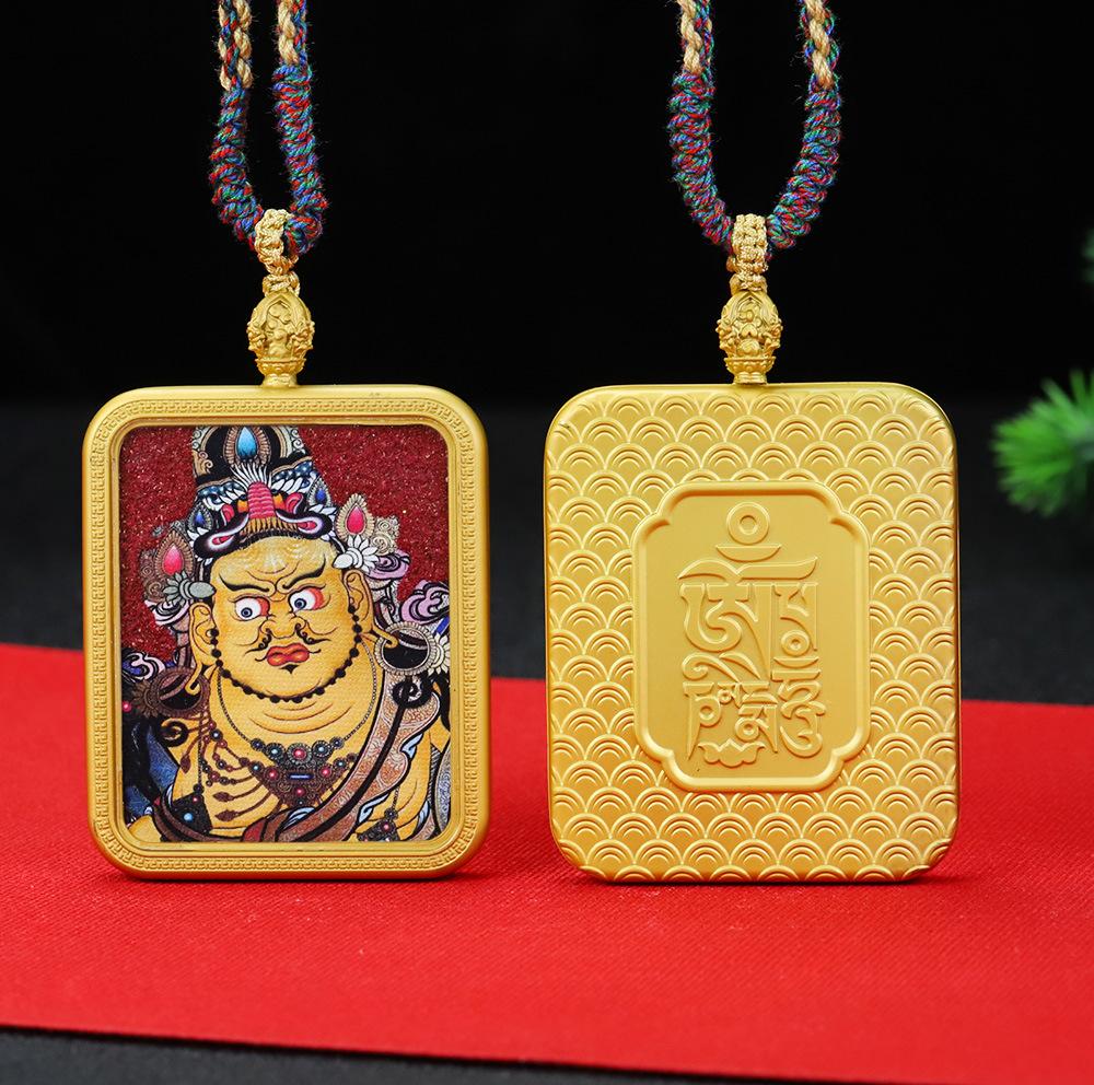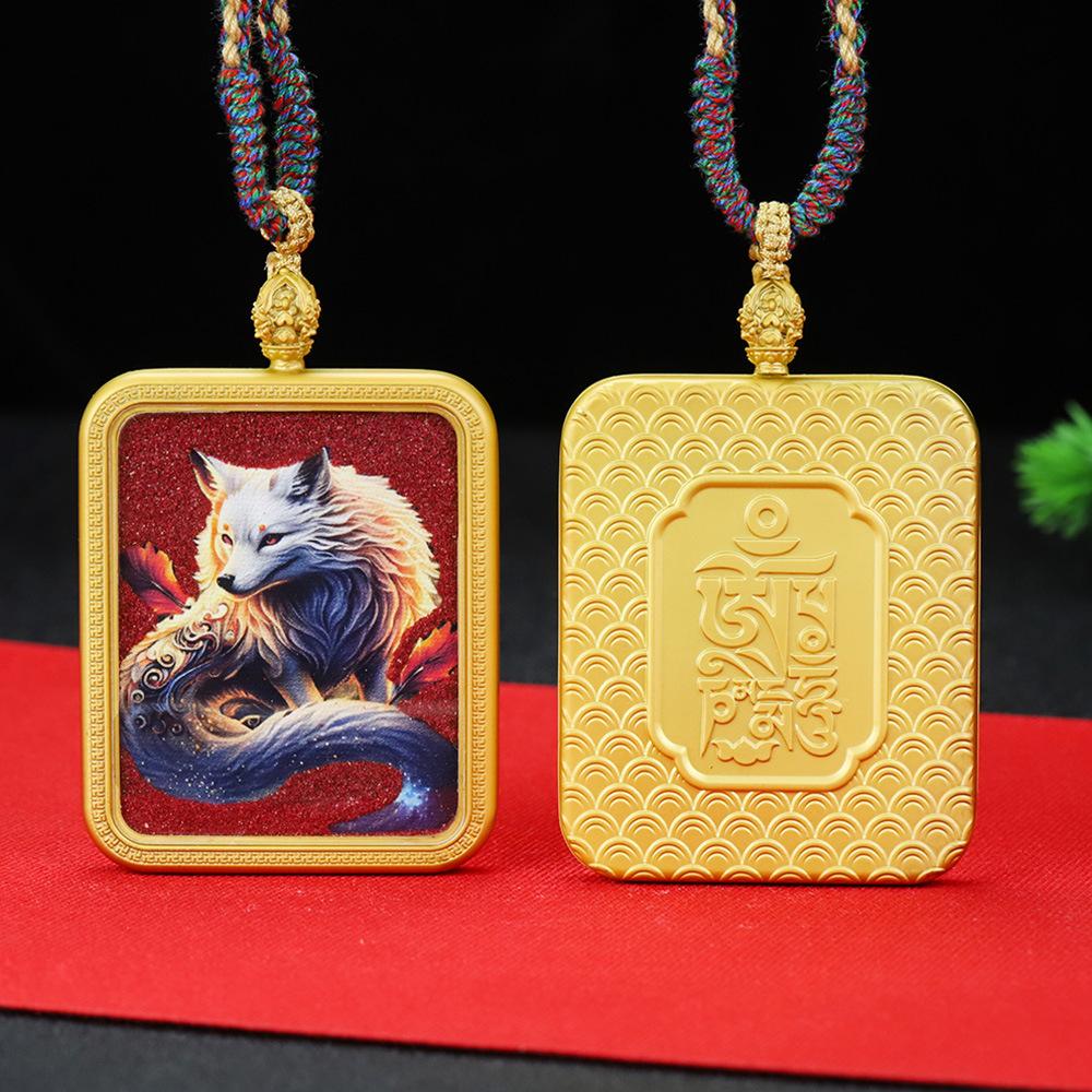 Thangka de un solo lado estilo cinabrio pintado a mano nuevo colgante zorro de nueve colas rectangular dragón cinco hermanos colgante dios amarillo de la riqueza