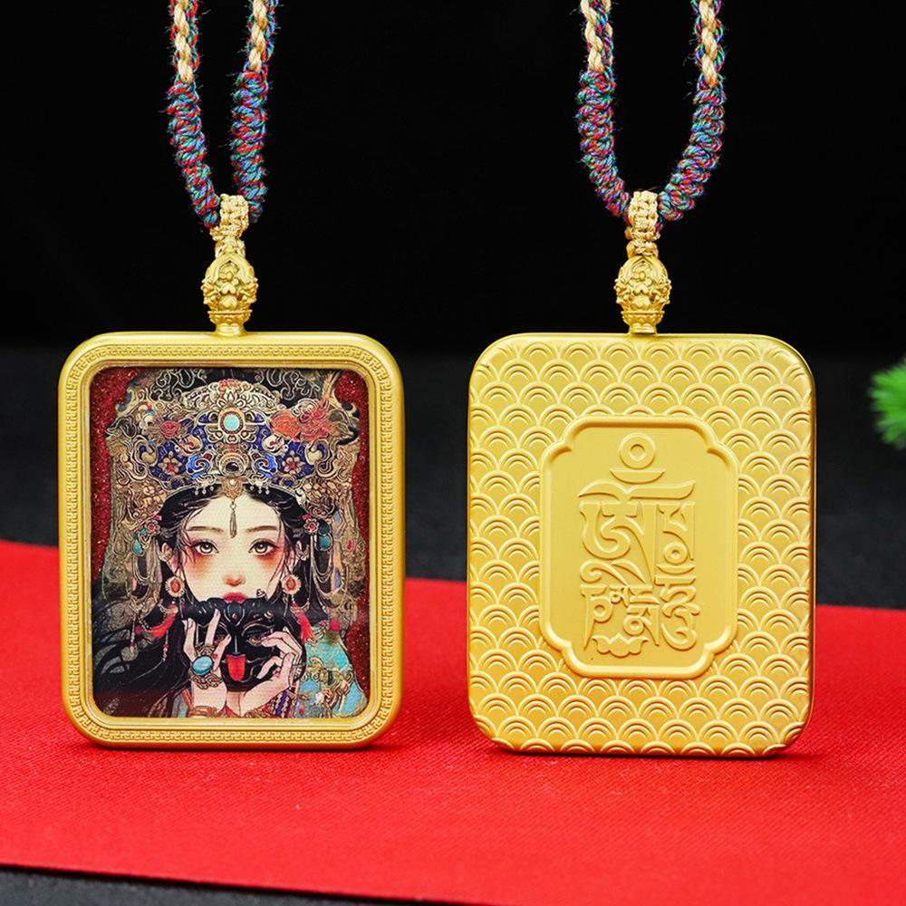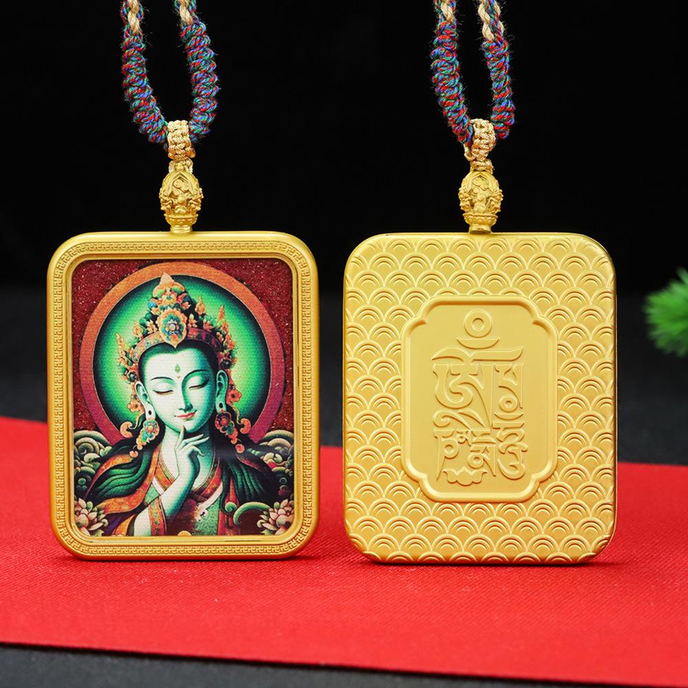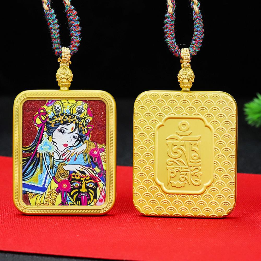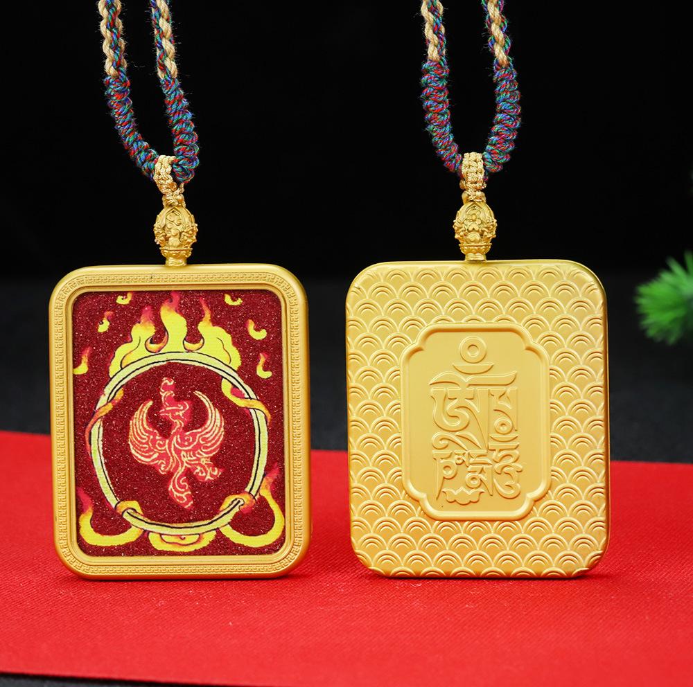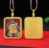 Thangka de un solo lado estilo cinabrio pintado a mano nuevo colgante zorro de nueve colas rectangular dragón cinco hermanos colgante dios amarillo de la riqueza