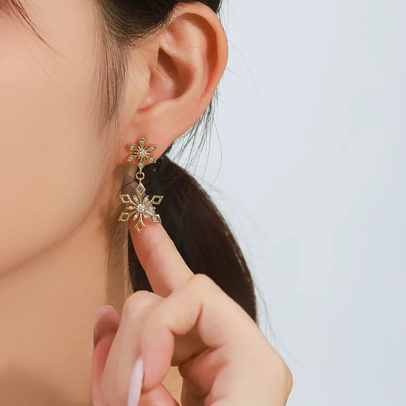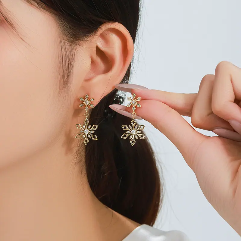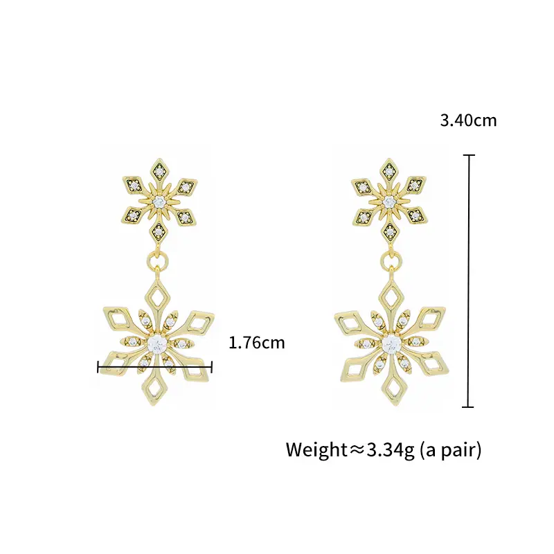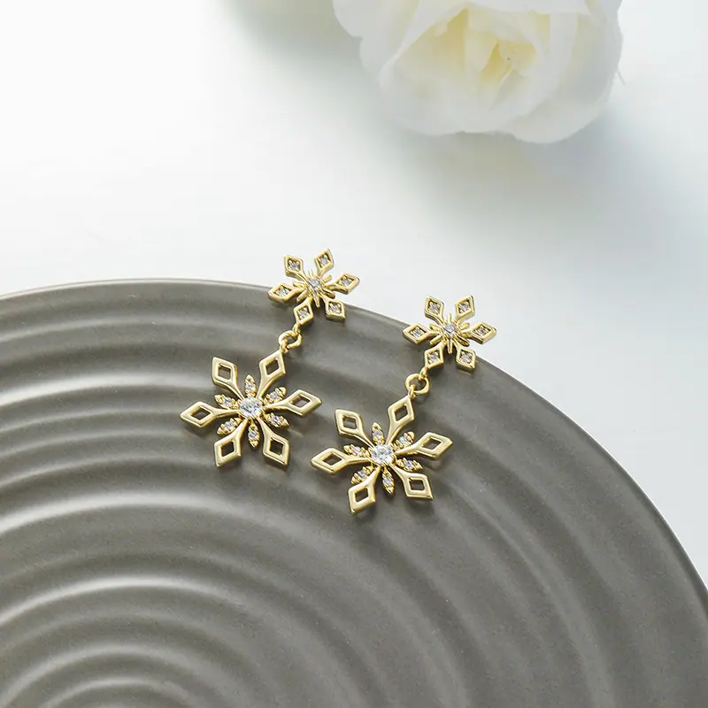 Xuping Nueva Moda Aleación Galvanizado Oro 14k Micro-engastado Zirconia Copo de Nieve Borla Exquisitos Pendientes Elegantes