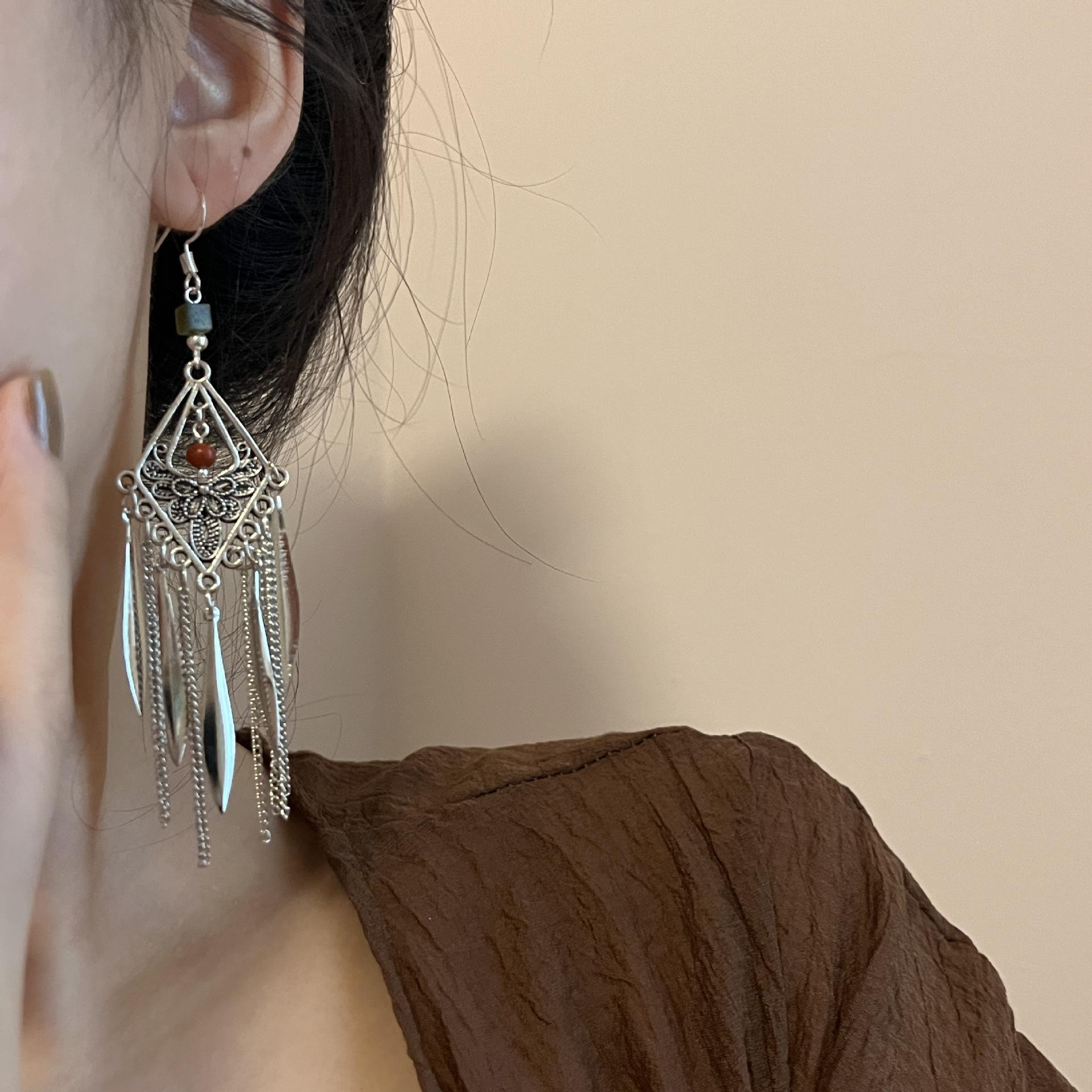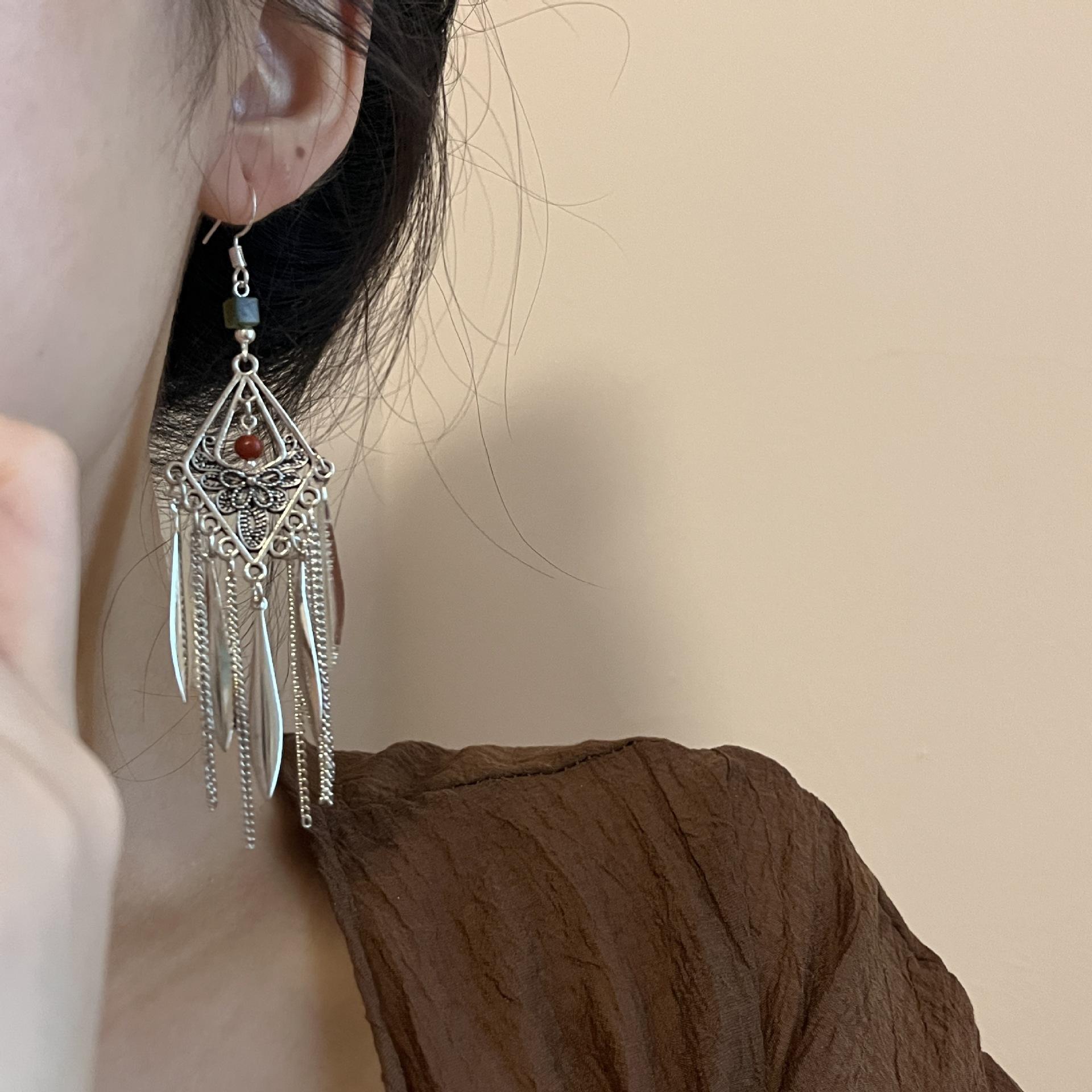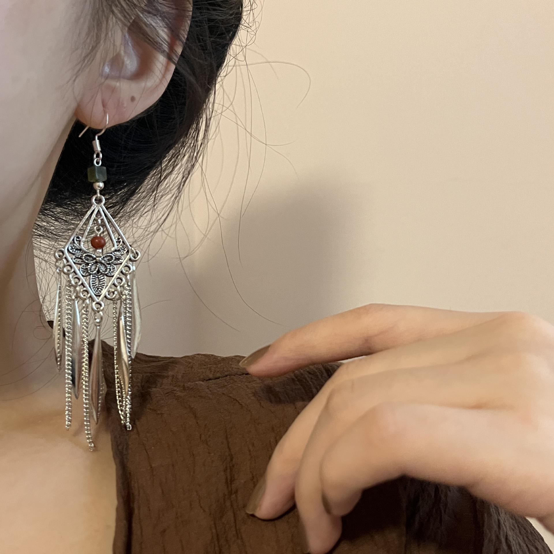 Aretes de Borla Hueca de Diamante Europeos y Americanos Exagerados Distintivos Gancho para la Oreja Lujo Ligero Combinación Total Elegantes Aretes Elegantes Venta al Mayoreo Mujeres